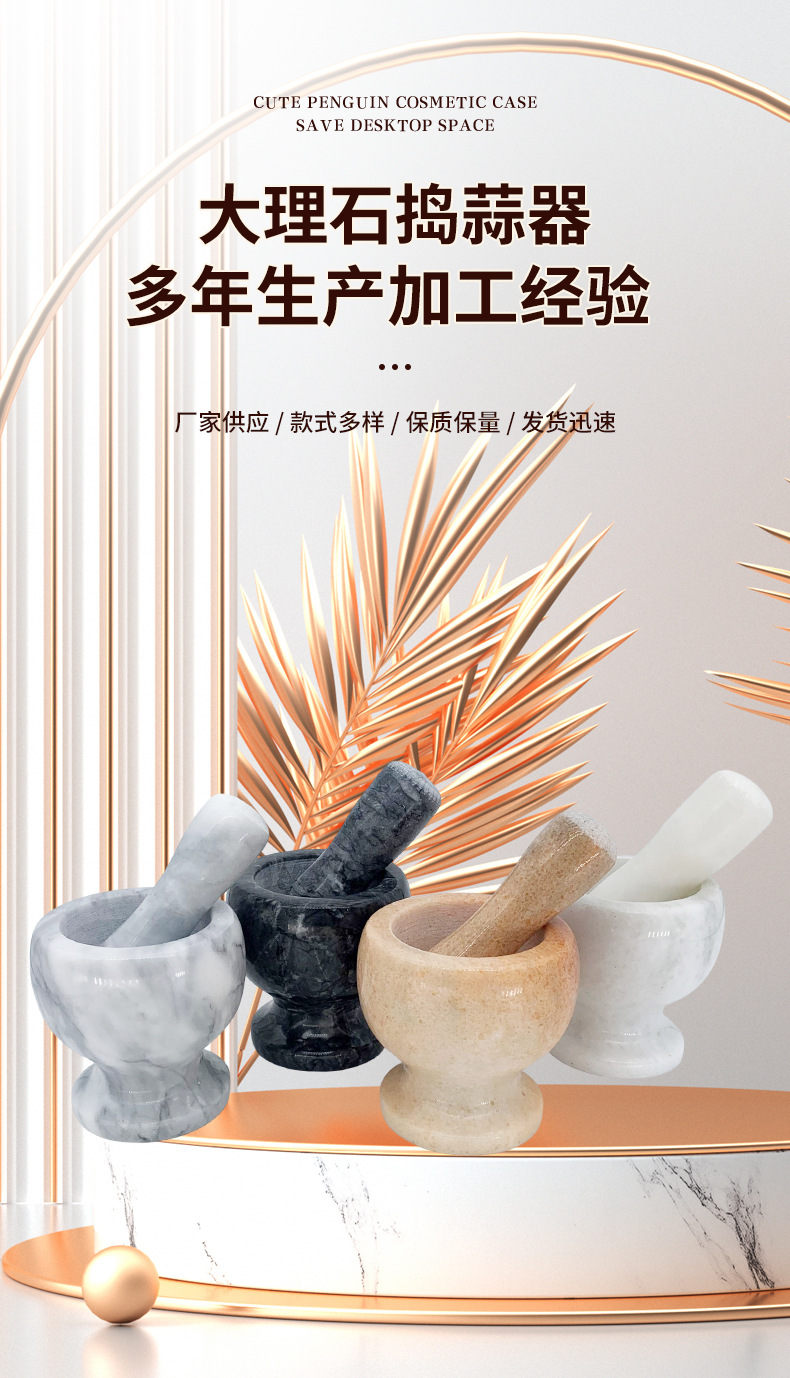 天然大理石蒜臼玉石蒜钵捣蒜器小蛮腰蒜蓉盅大理石捣蒜器