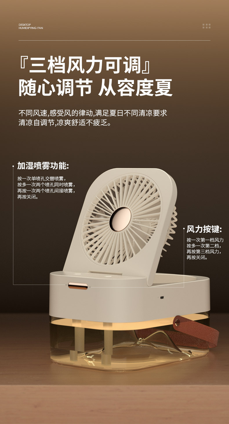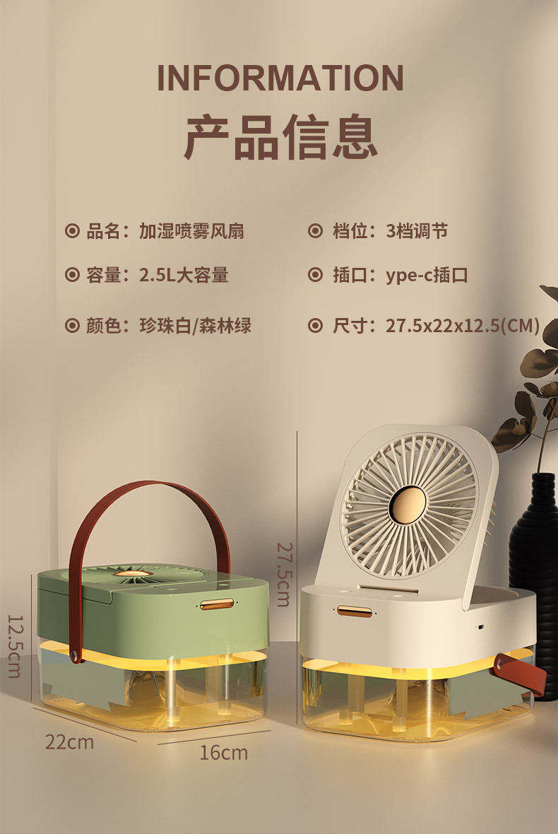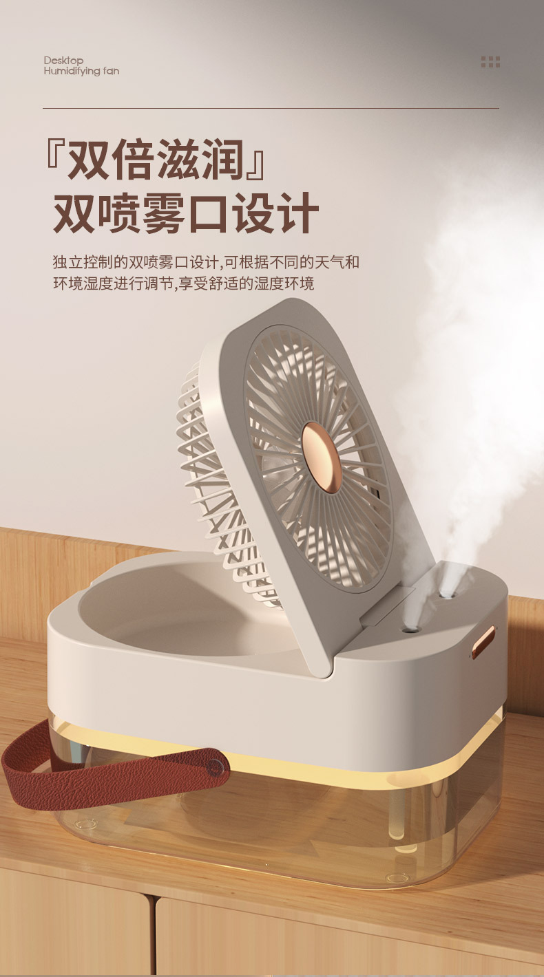 小风扇双喷雾加湿风扇大容量桌面补水带灯小空调跨境新款创意礼品