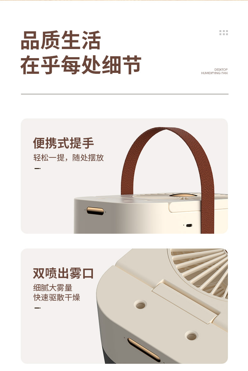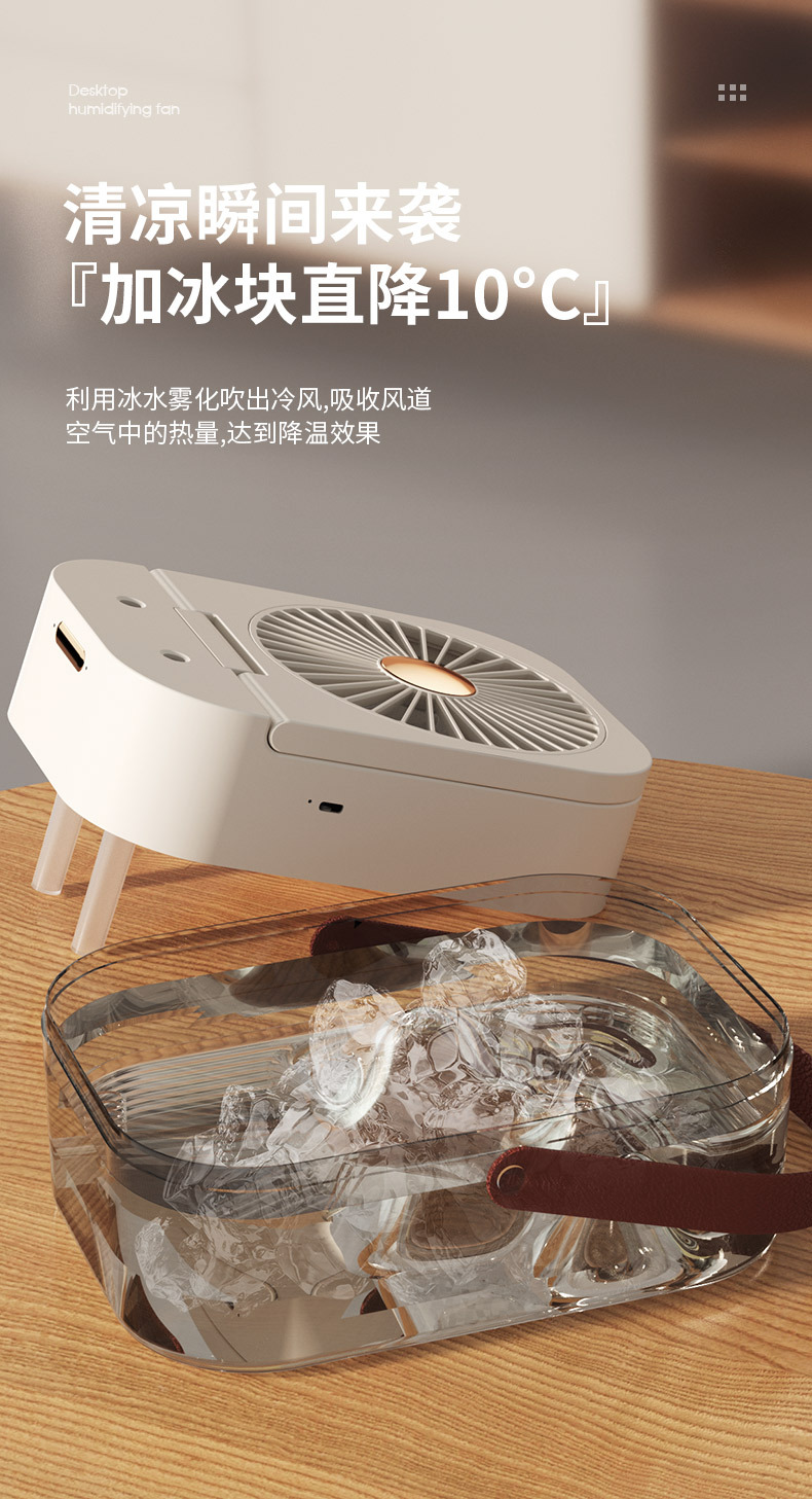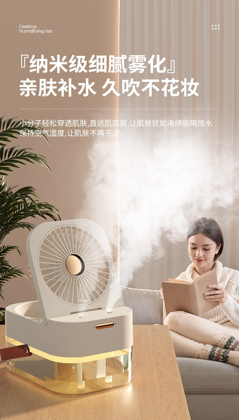 小风扇双喷雾加湿风扇大容量桌面补水带灯小空调跨境新款创意礼品