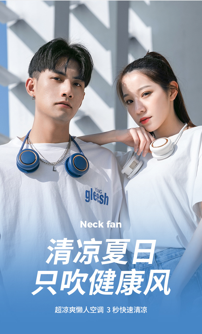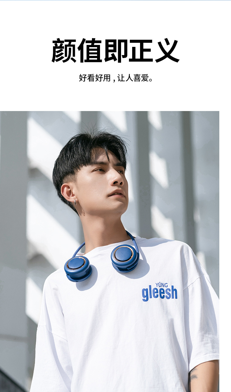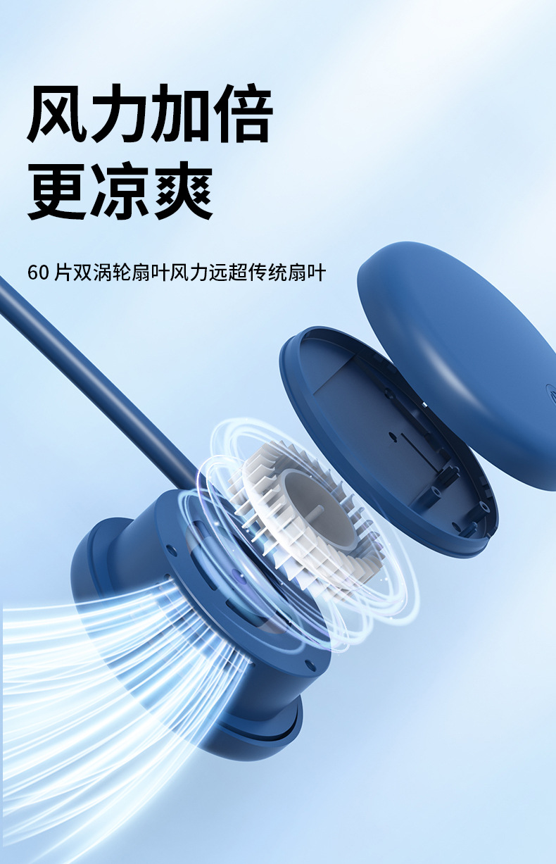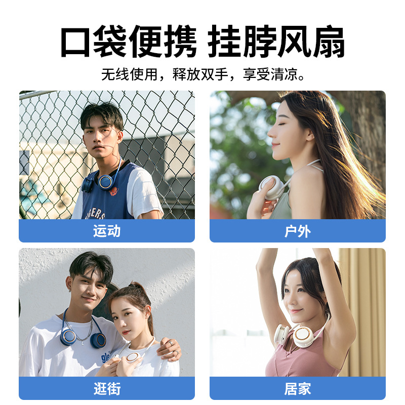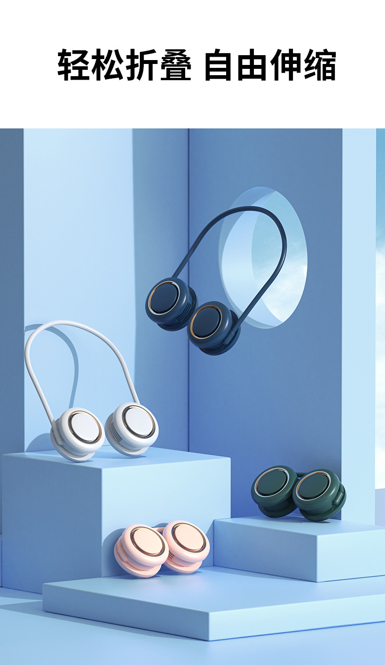 2023新款挂脖风扇厂家 可收纳usb迷你便携小风扇无叶风扇礼品logo