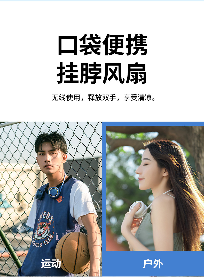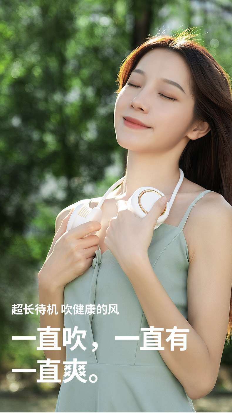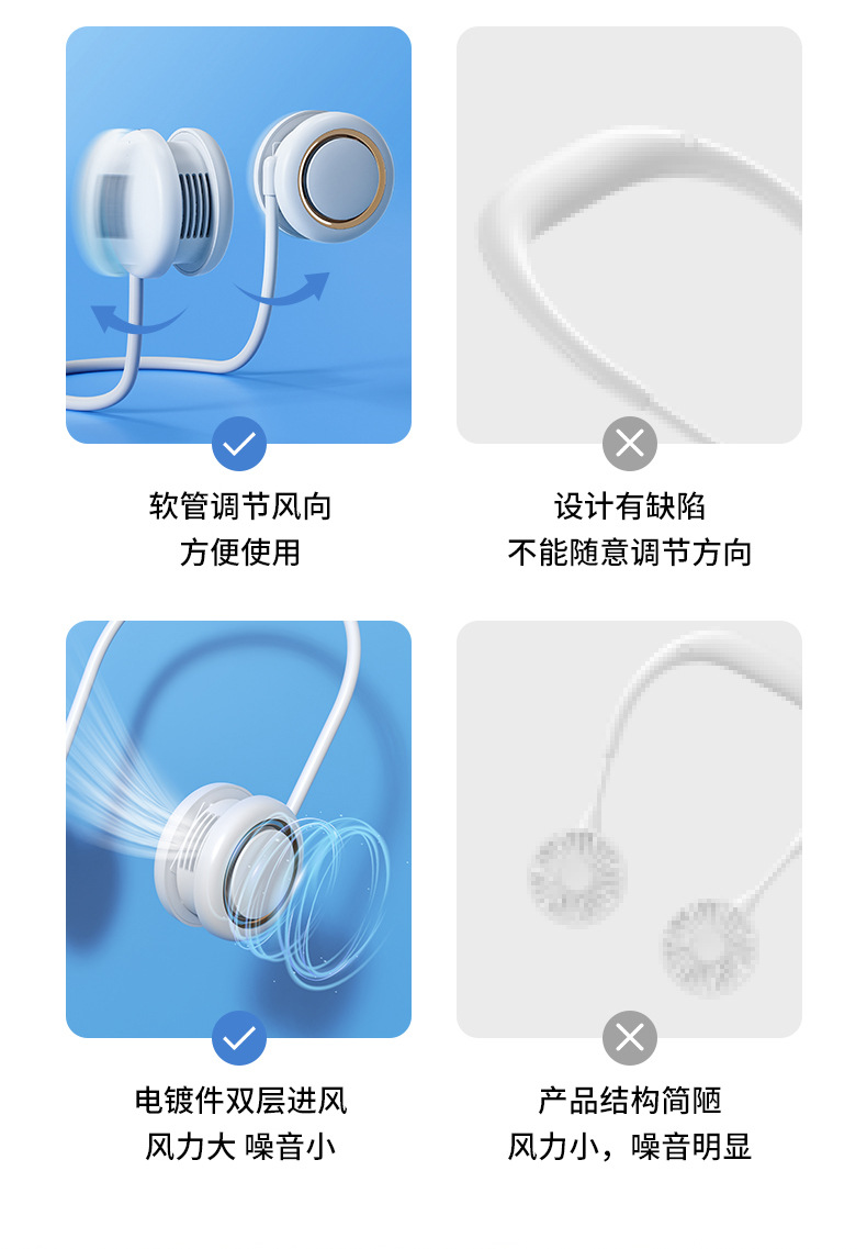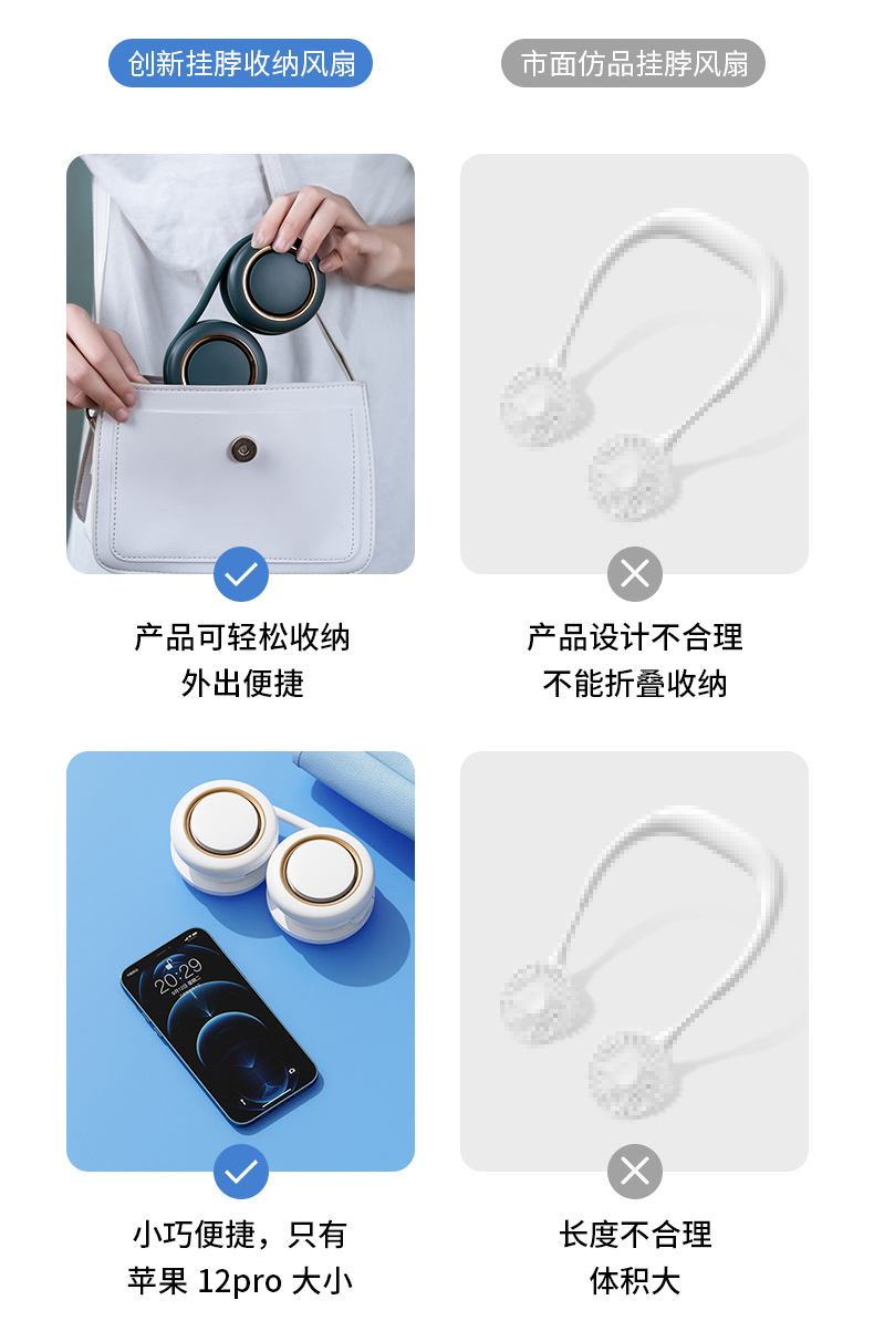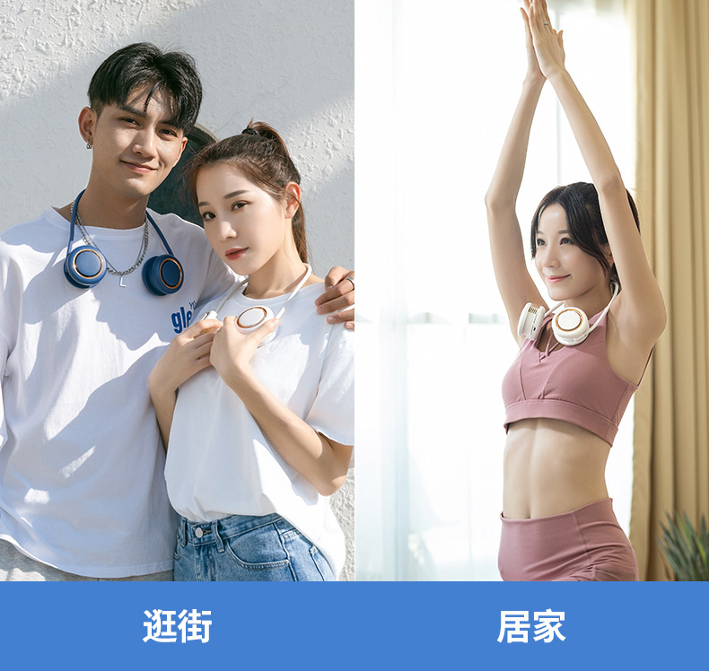 2023新款挂脖风扇厂家 可收纳usb迷你便携小风扇无叶风扇礼品logo