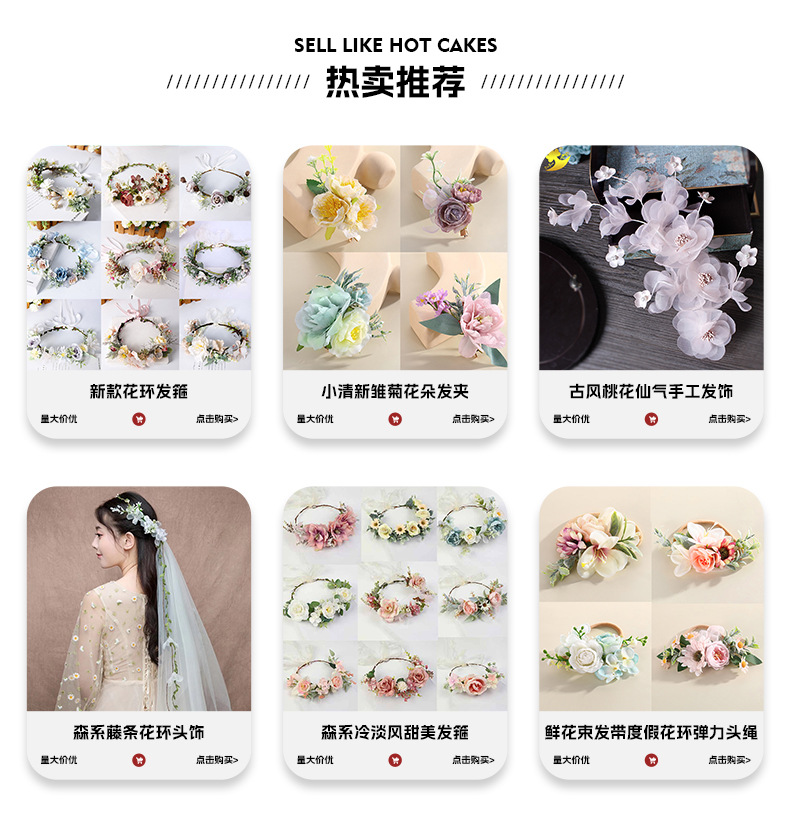 鲜花发夹小清新雏菊花朵发夹手工仿真花发夹舞台表演金属边夹发饰