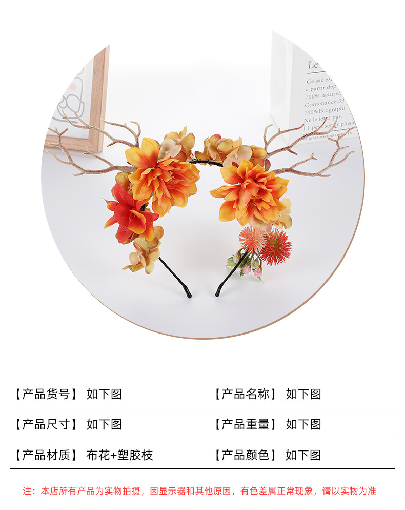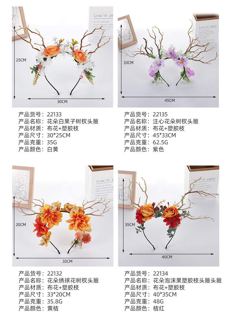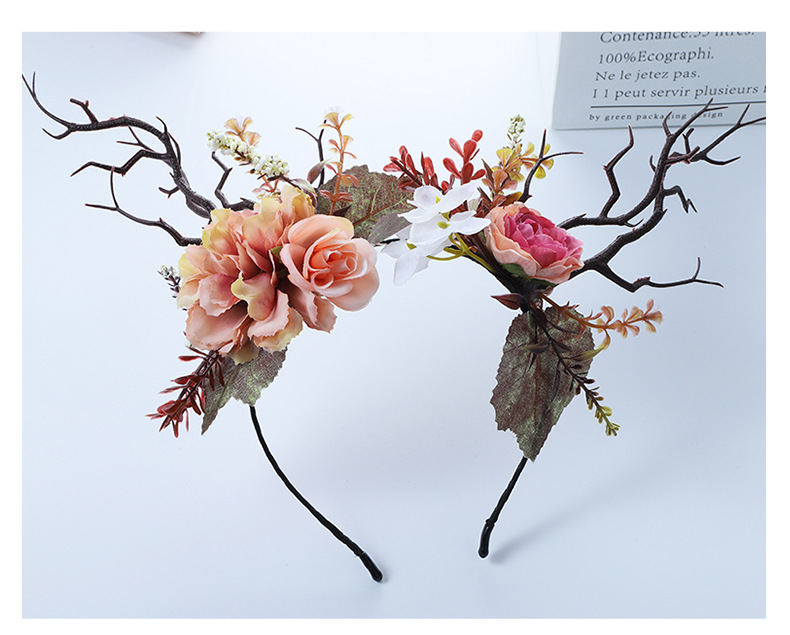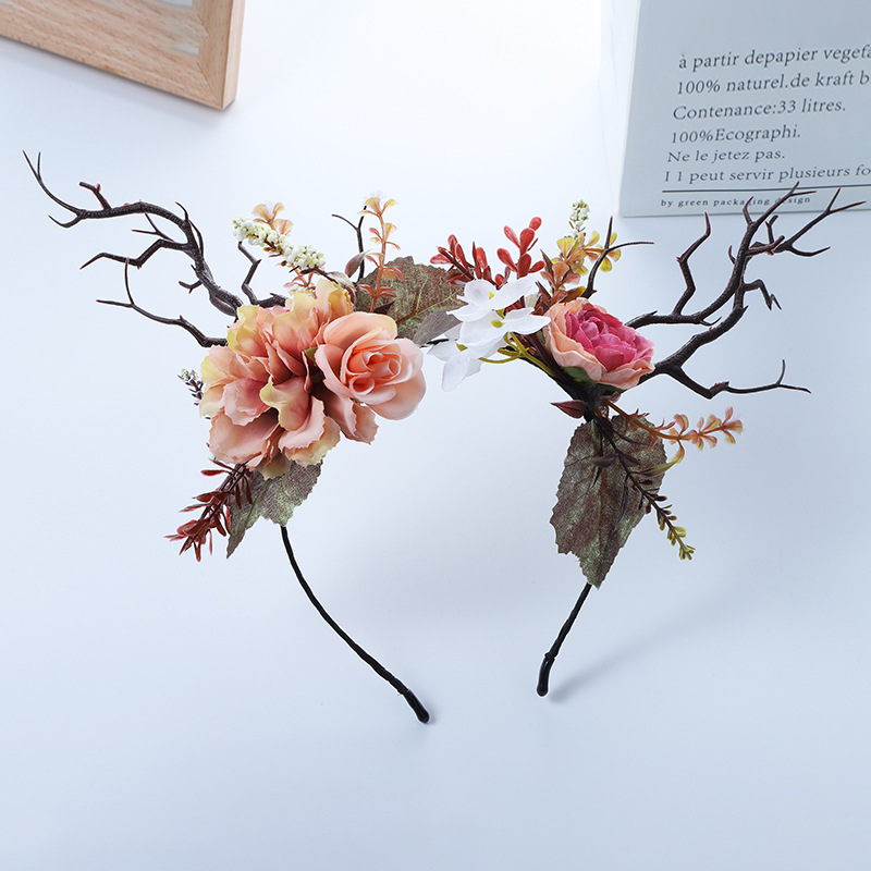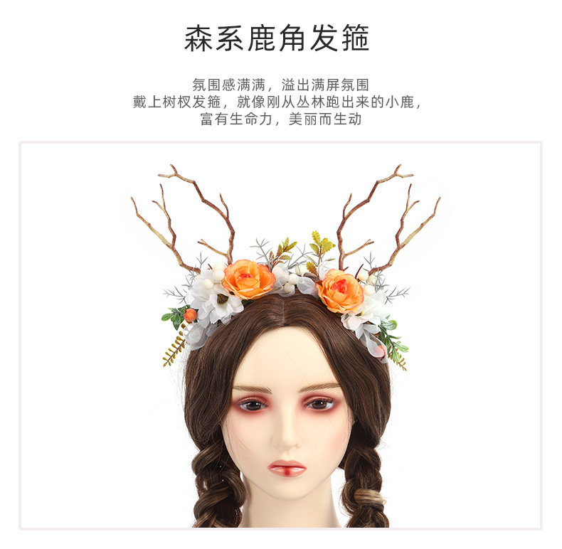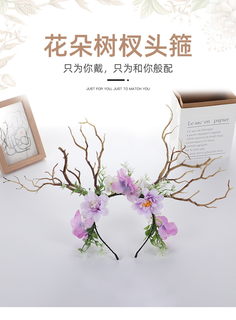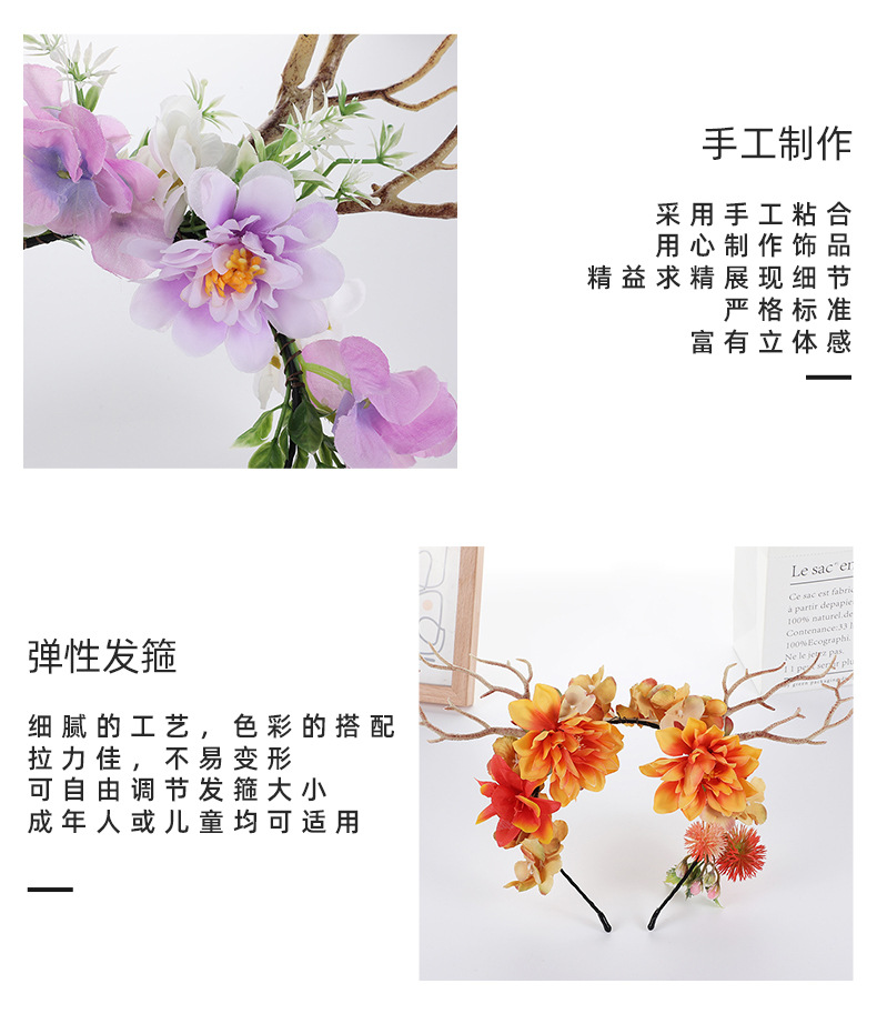 小清新森系鹿角发箍 头饰仿真假花树枝花环拍照装饰道具女生发饰