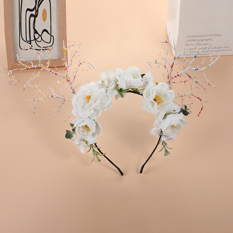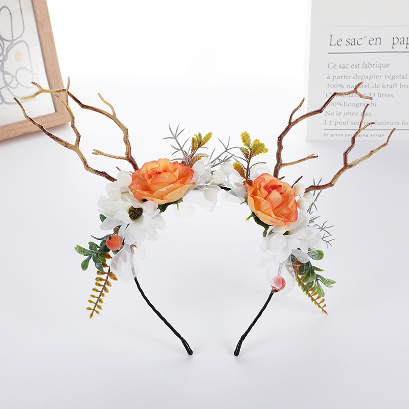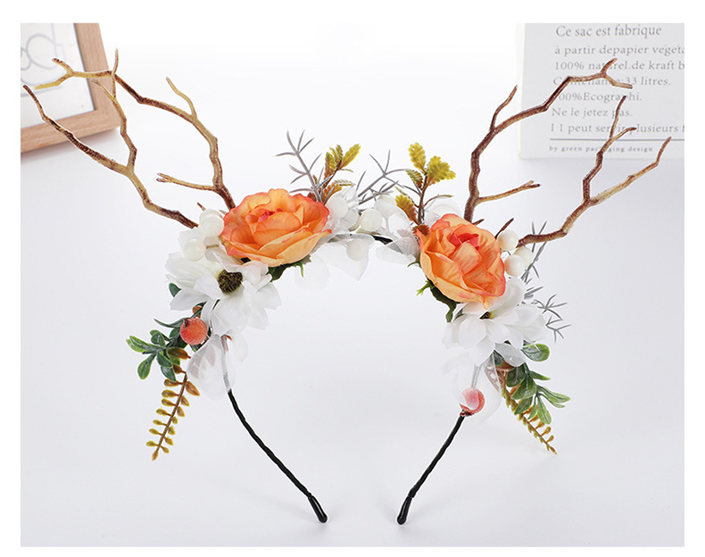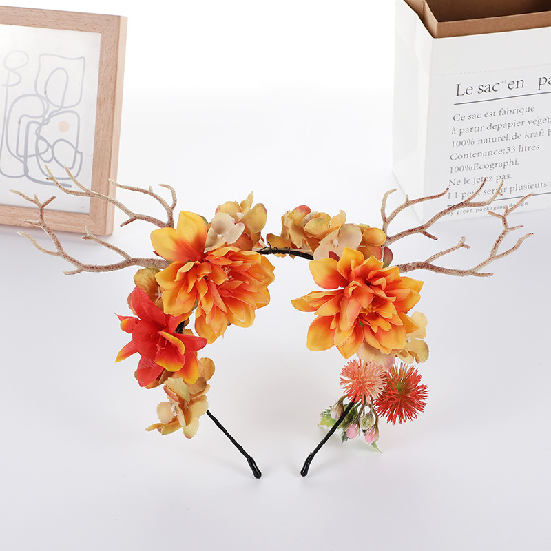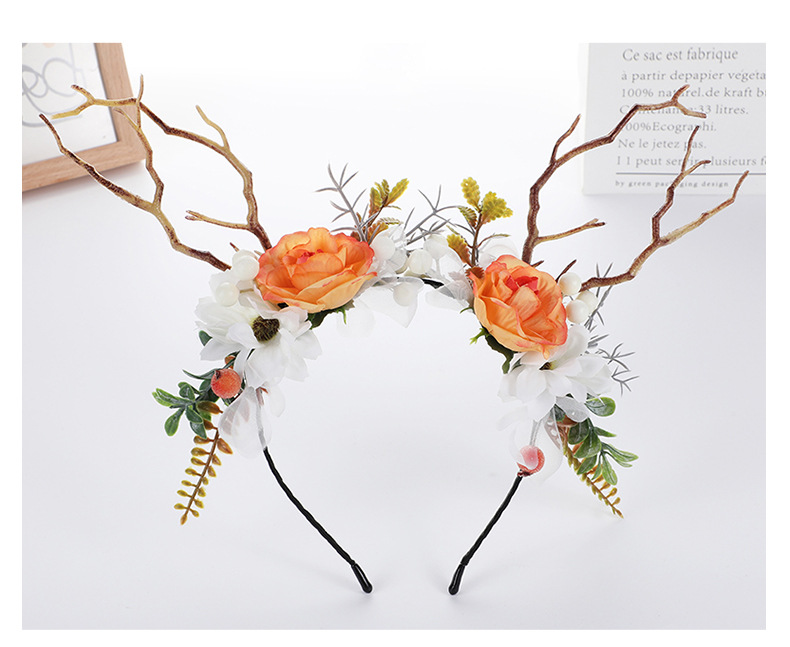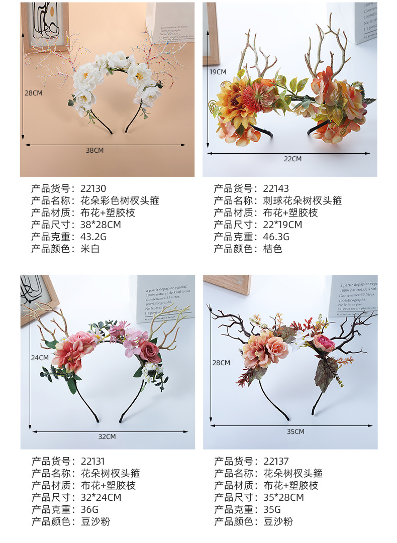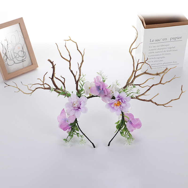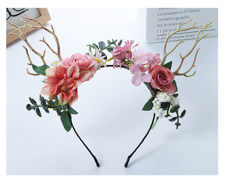 小清新森系鹿角发箍 头饰仿真假花树枝花环拍照装饰道具女生发饰