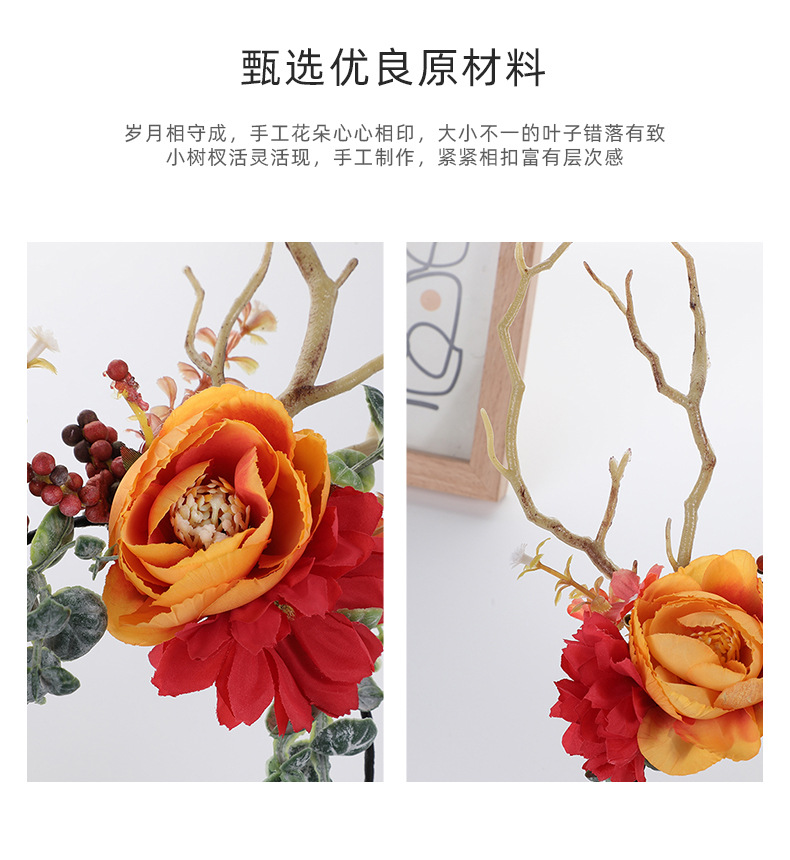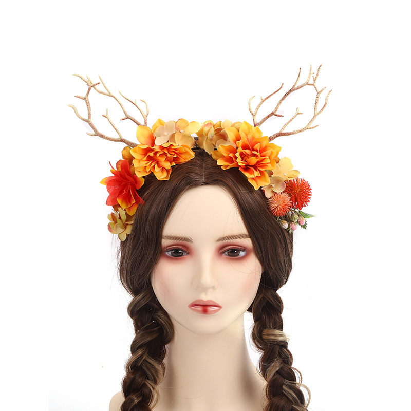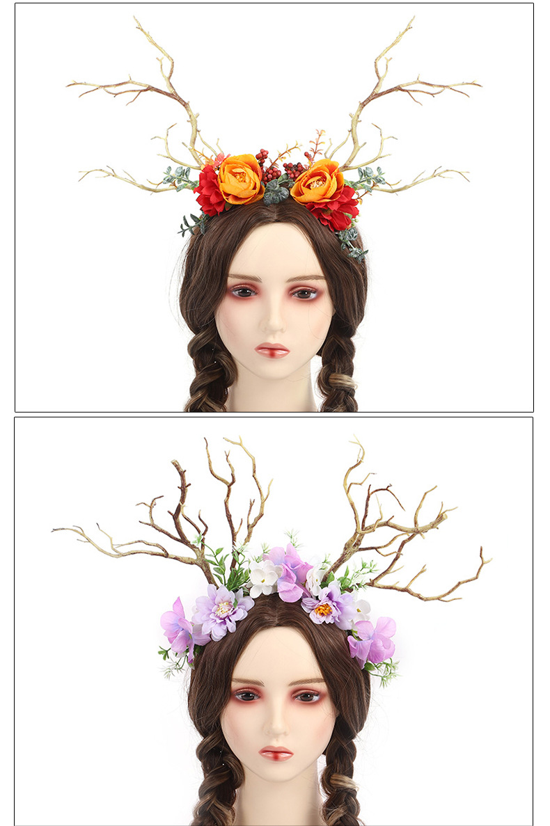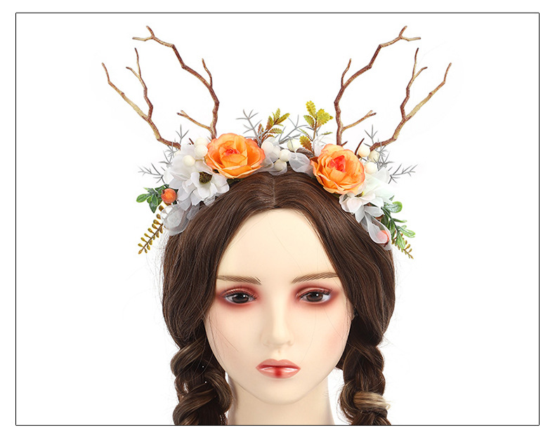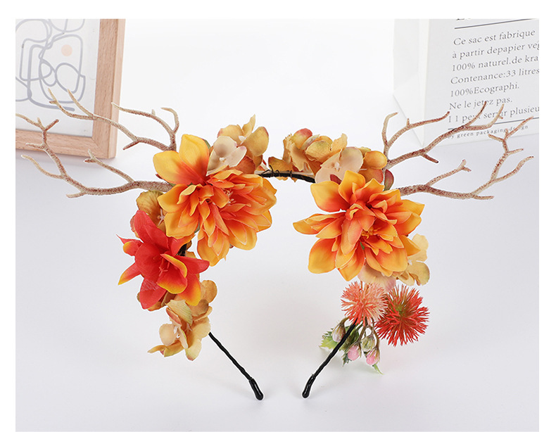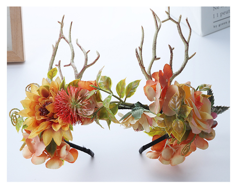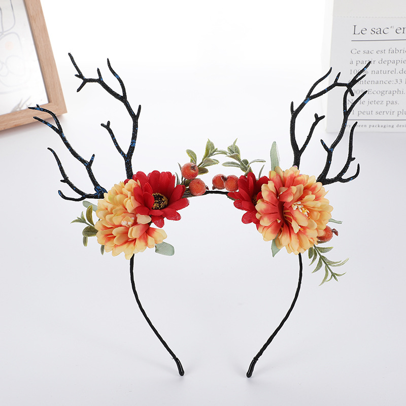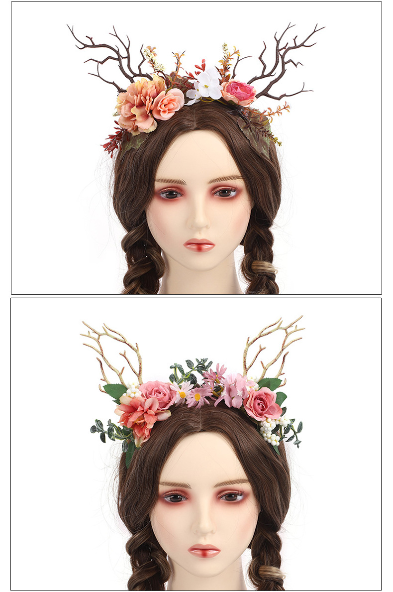 小清新森系鹿角发箍 头饰仿真假花树枝花环拍照装饰道具女生发饰
