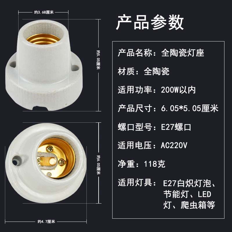 全陶瓷灯座家用取暖器加热箱芦丁鸡饲养箱耐高温灯头全铜芯灯口小