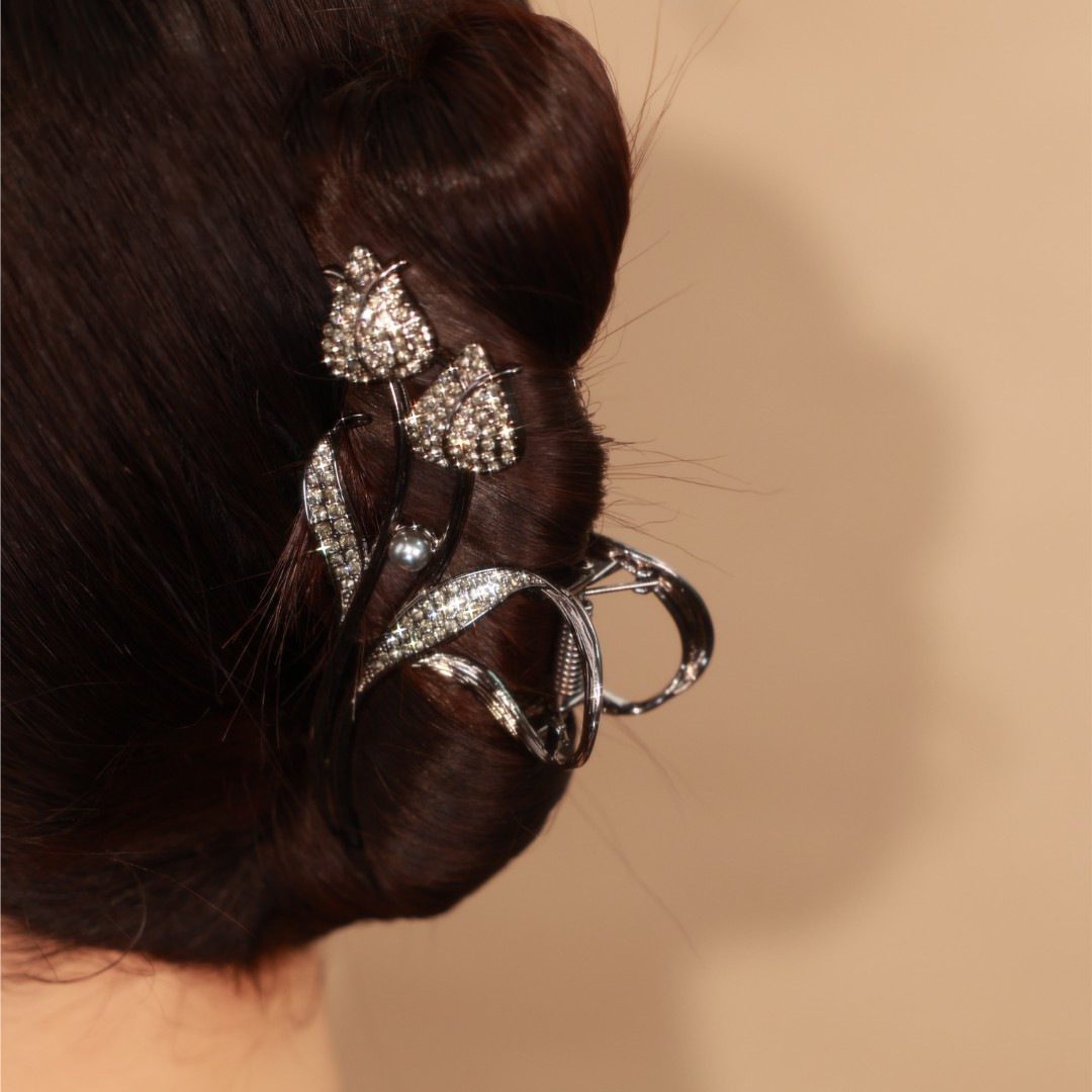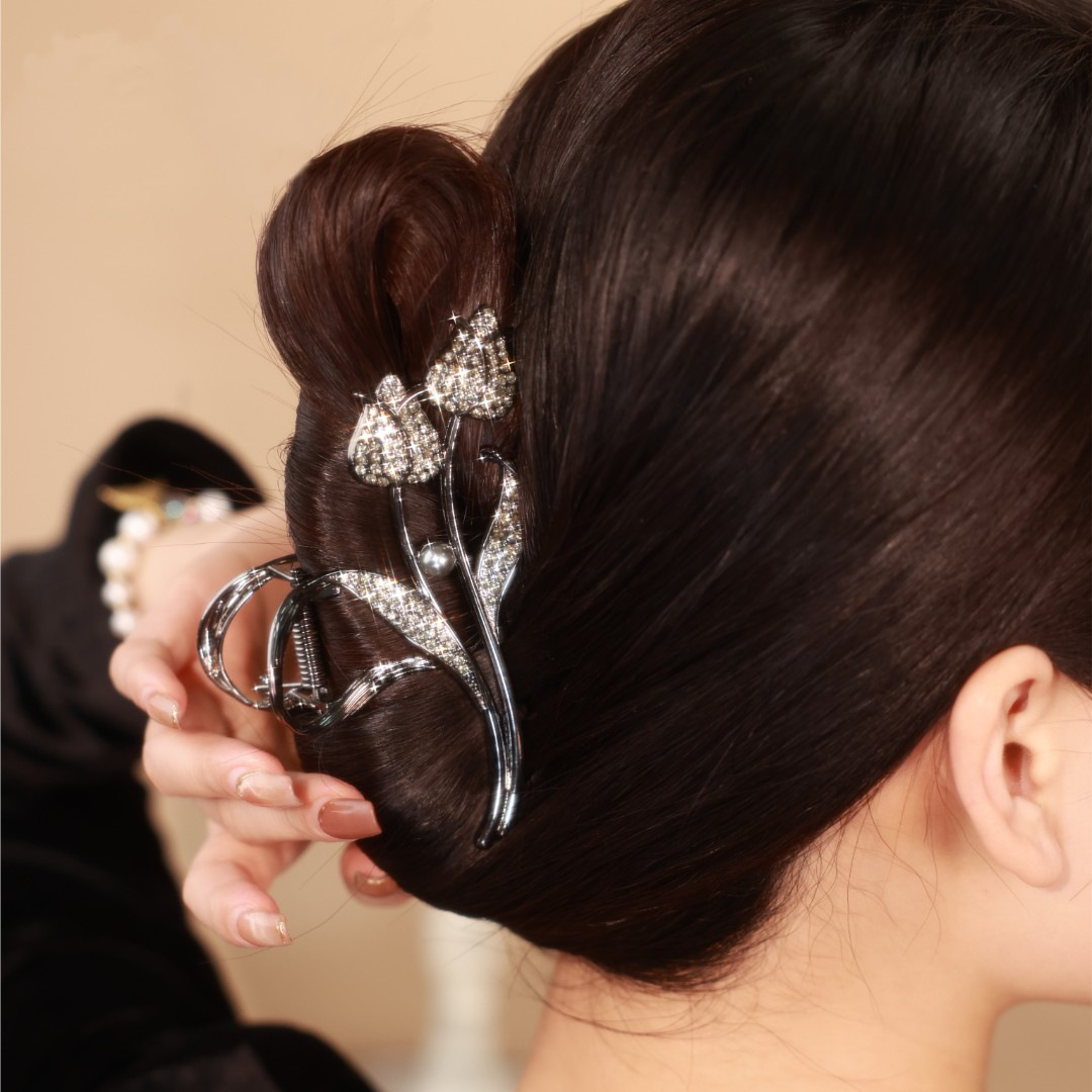 抖音网红同款郁金香设计感抓夹高端鲨鱼夹大号新款合金高级感发夹