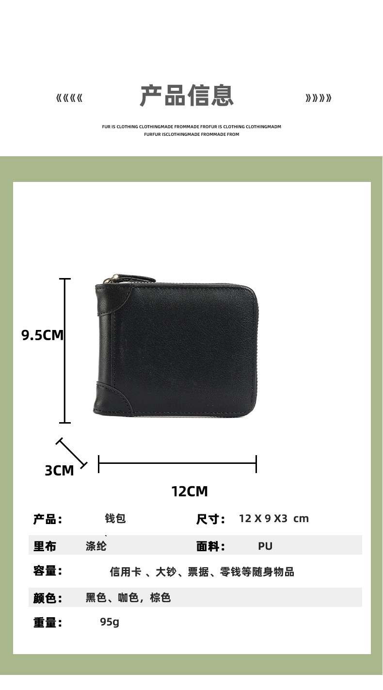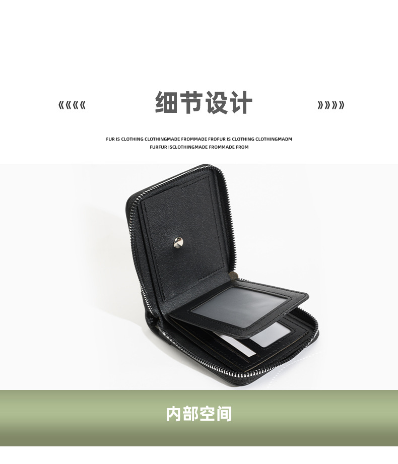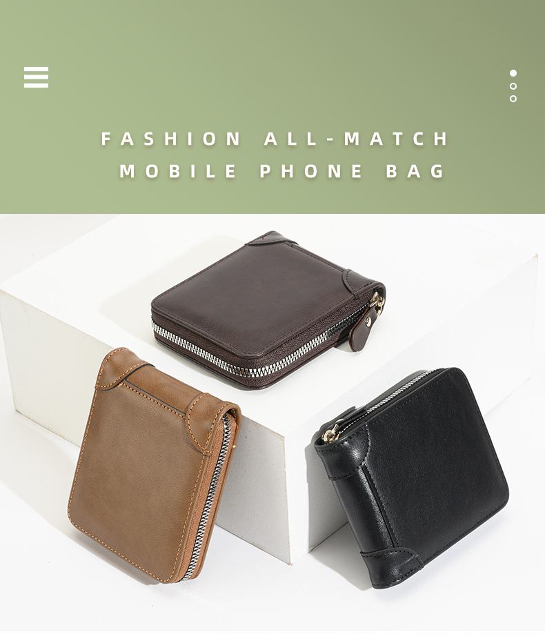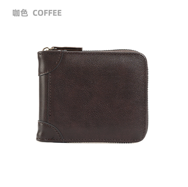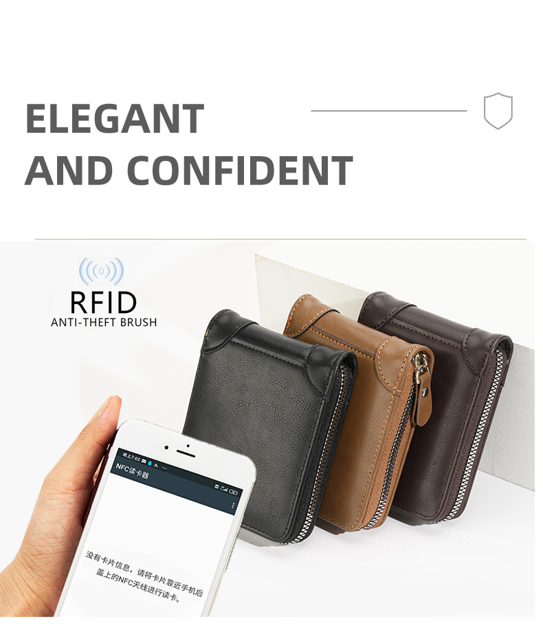 跨境RFID防盗刷男士钱包男头零钱袋拉链钱夹横款多功能外贸钱包