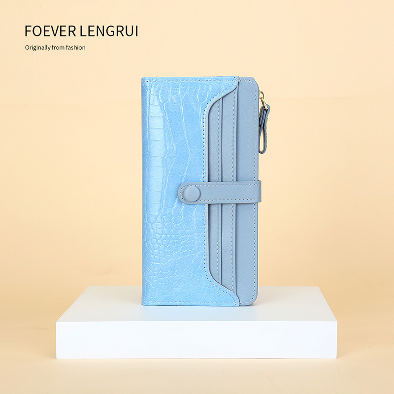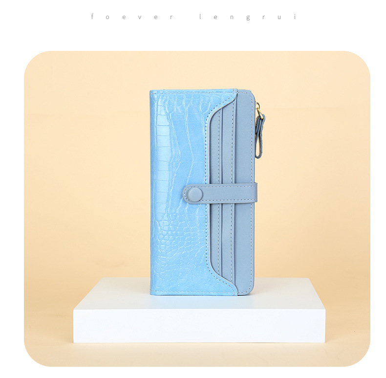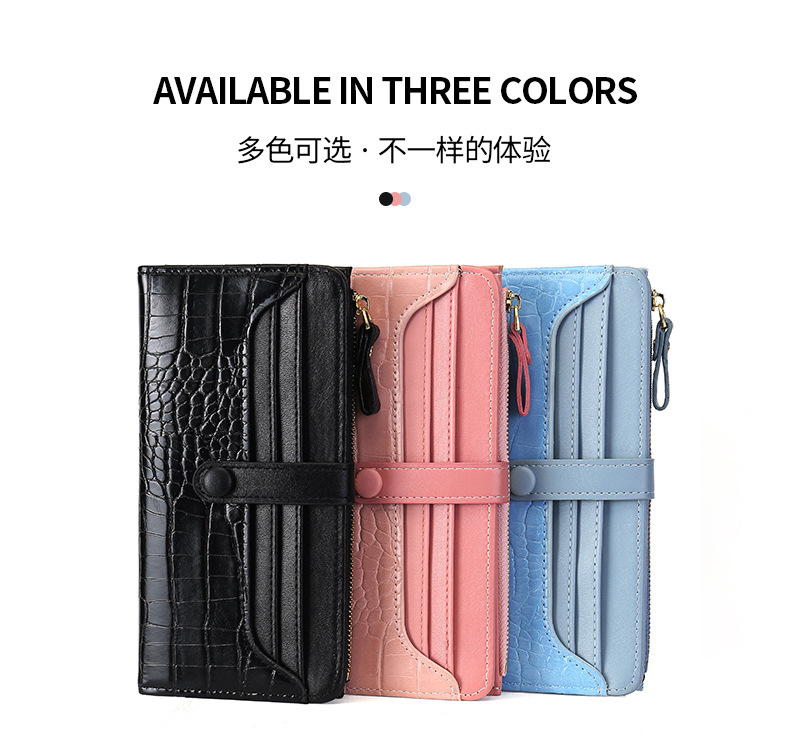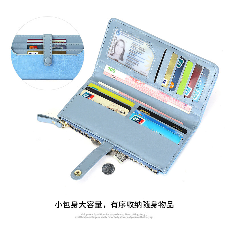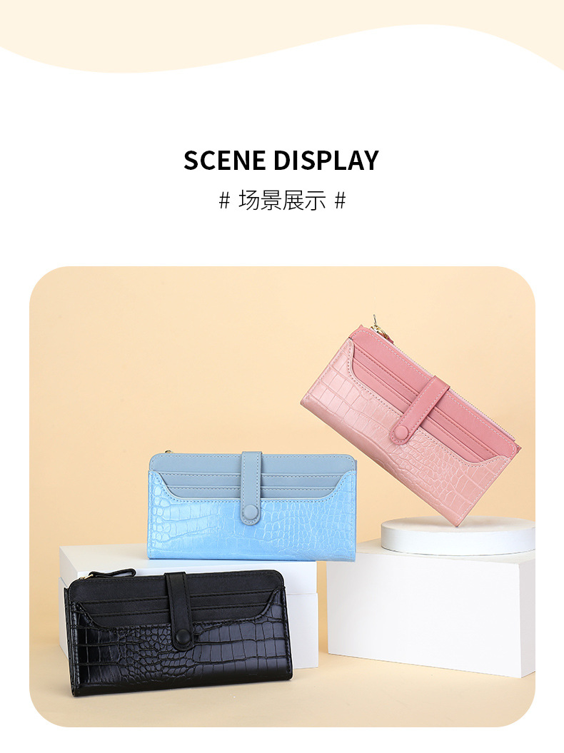 钱包女长款2023新款网红鳄鱼纹小众设计女士折叠钱包卡包手拿包女