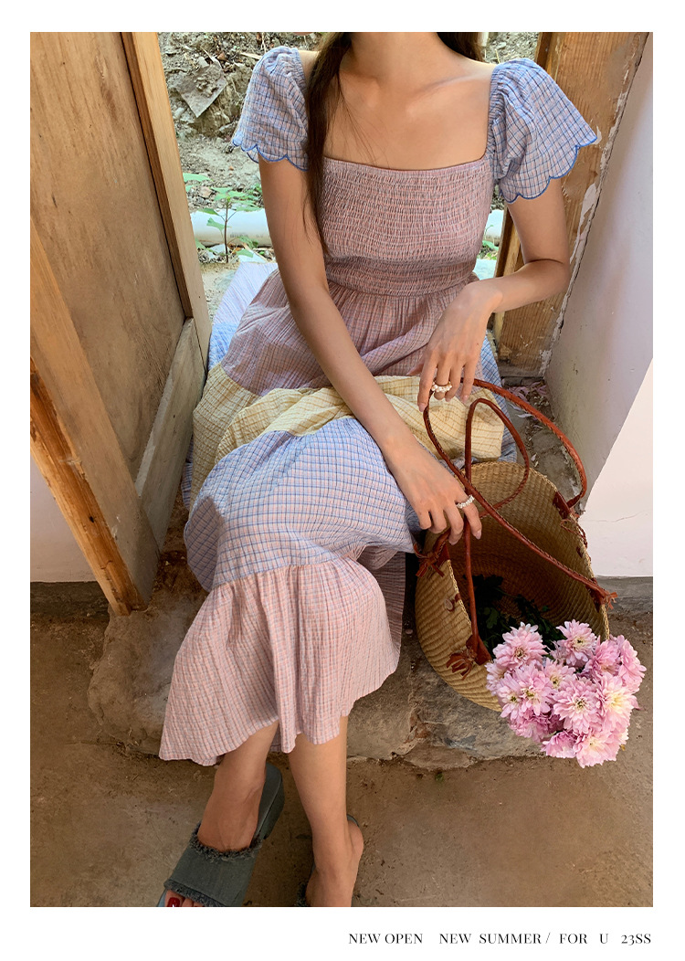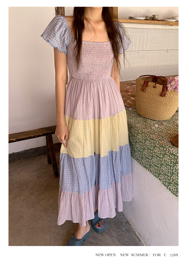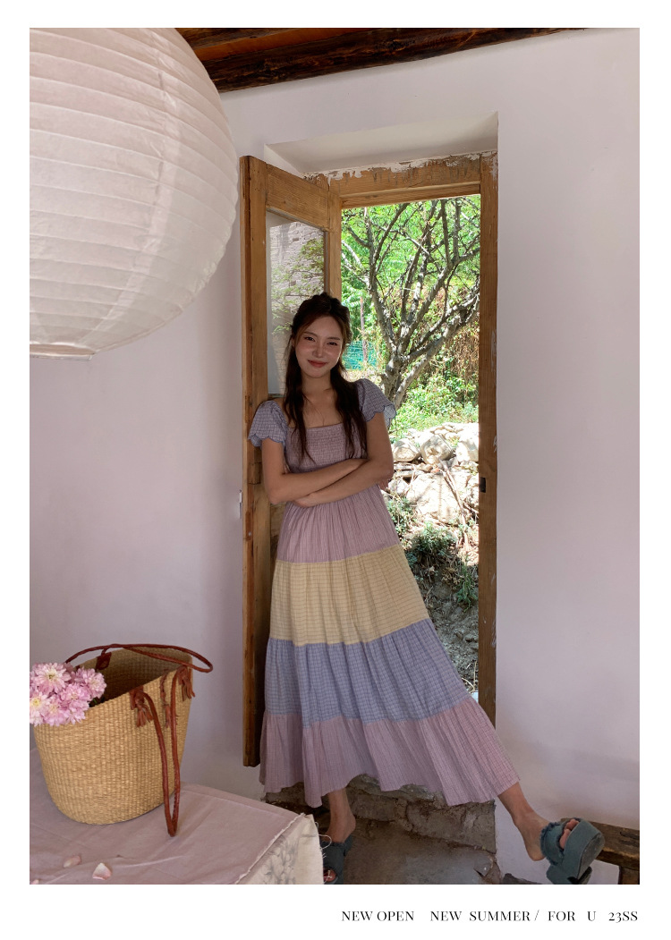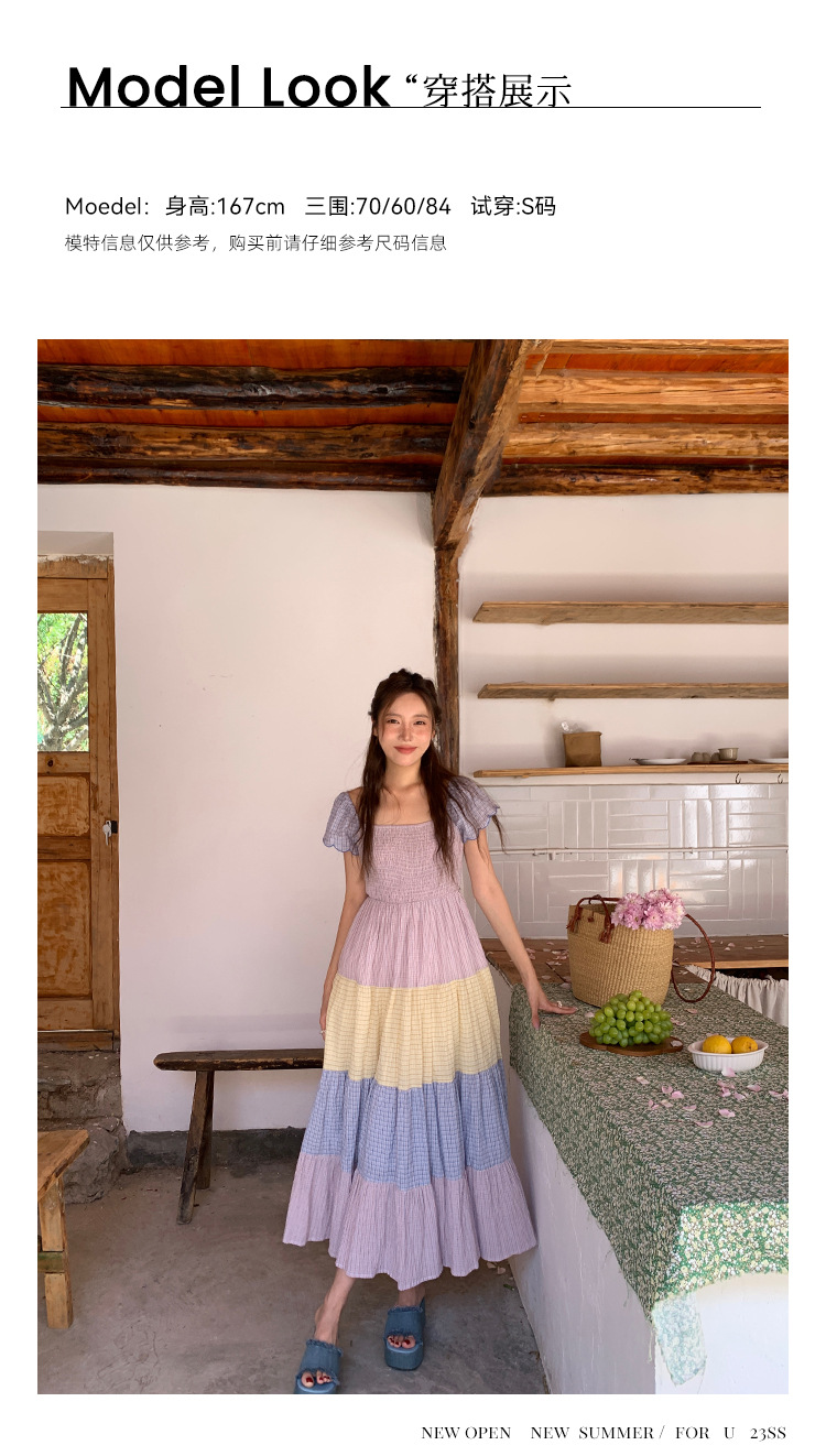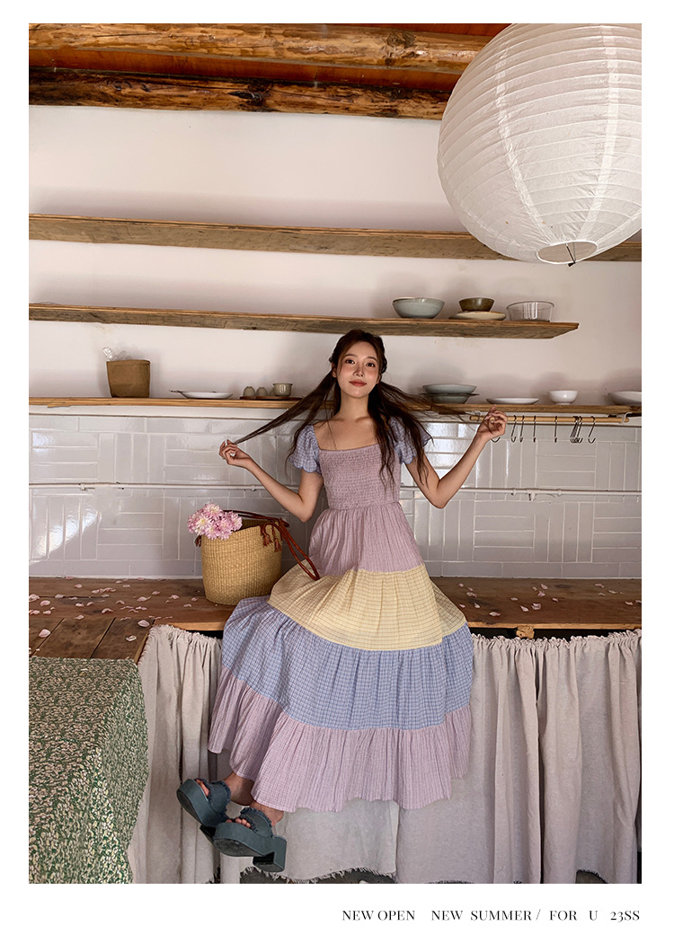 [05.23新品开售]2023夏甜美减龄连衣裙女韩系拼色显瘦蛋糕裙82661