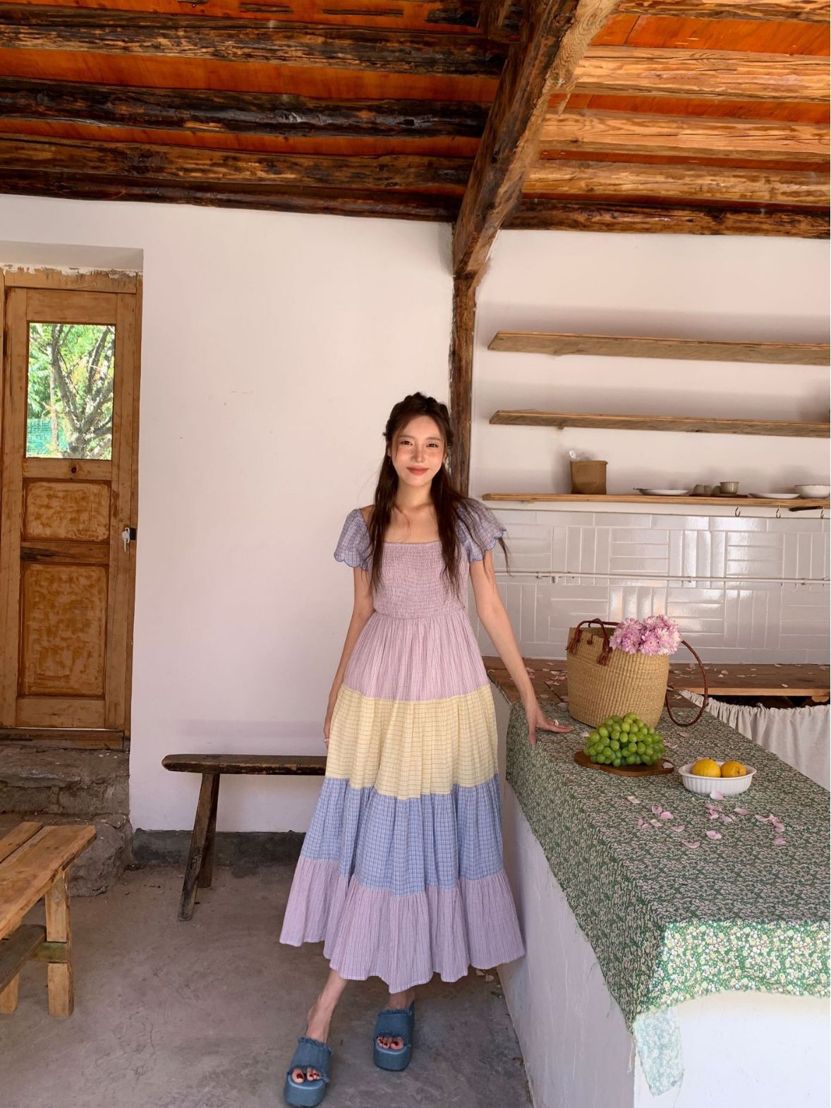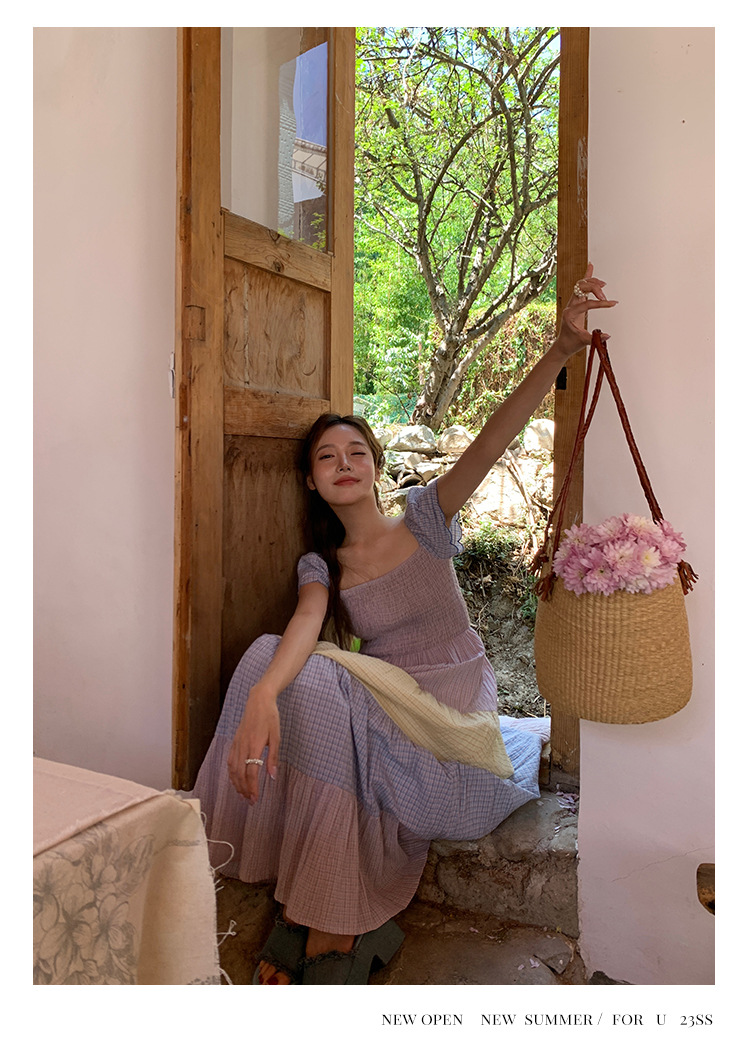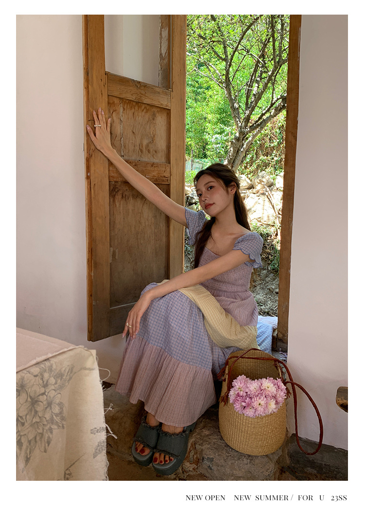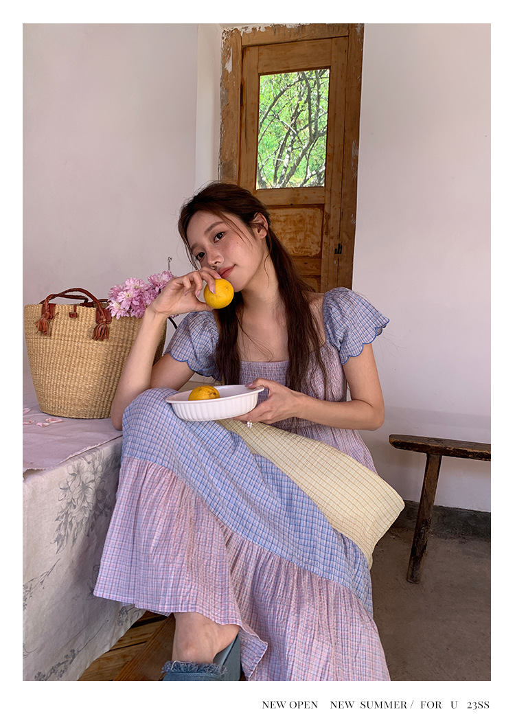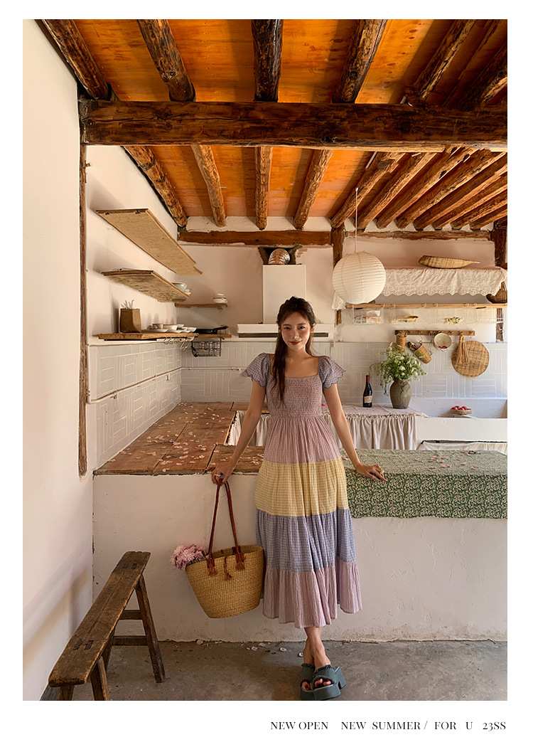 [05.23新品开售]2023夏甜美减龄连衣裙女韩系拼色显瘦蛋糕裙82661