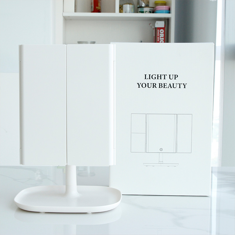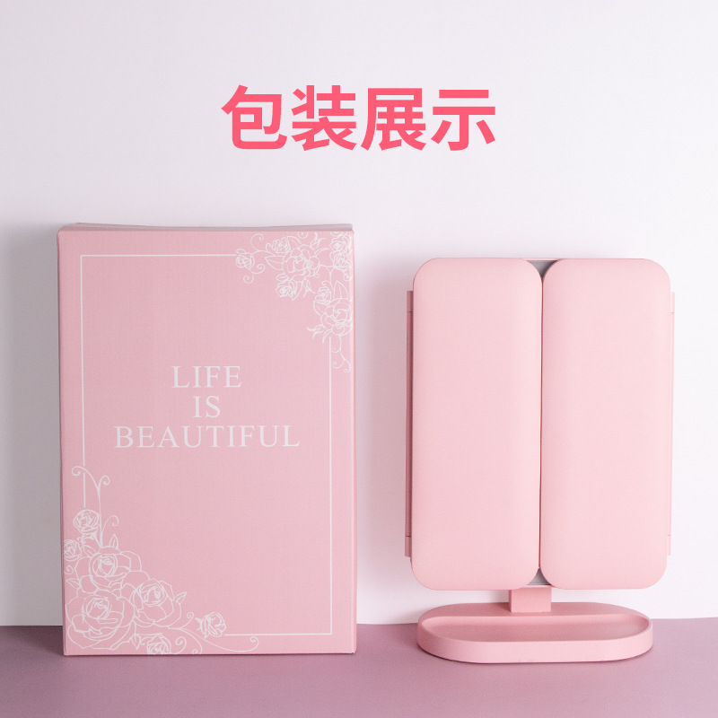 跨境新品化妆镜台式led灯 三面折叠智能补光贝壳镜子带灯logo批发