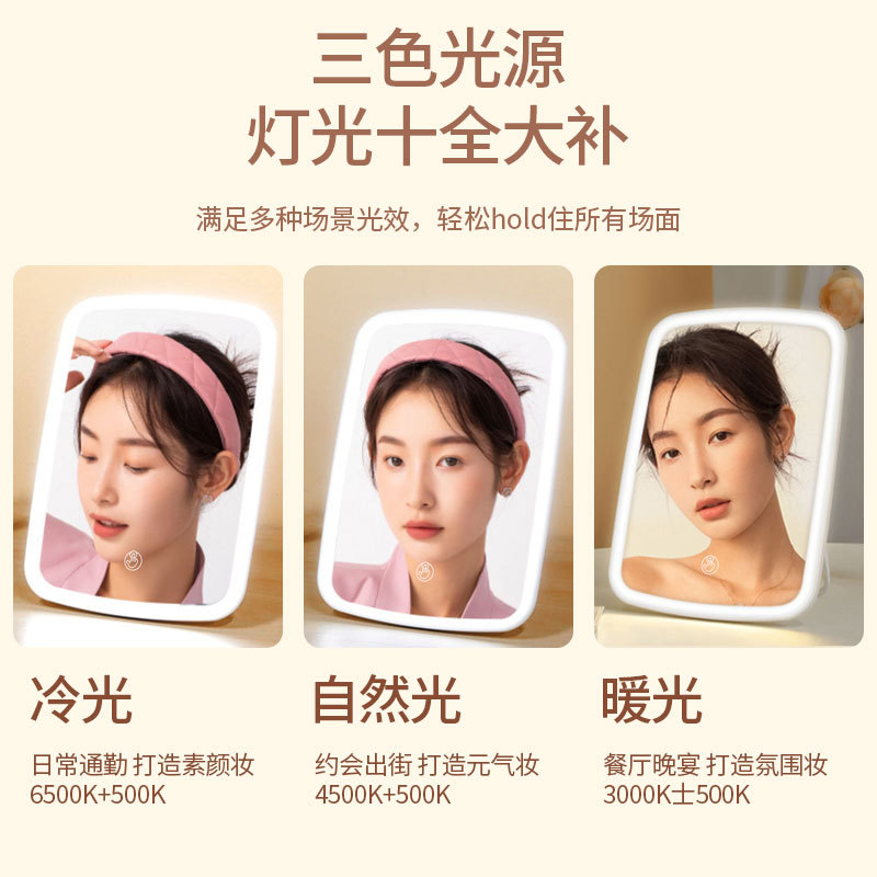 led化妆镜带灯台式网红女补光小镜子方形桌面便携小型梳妆镜