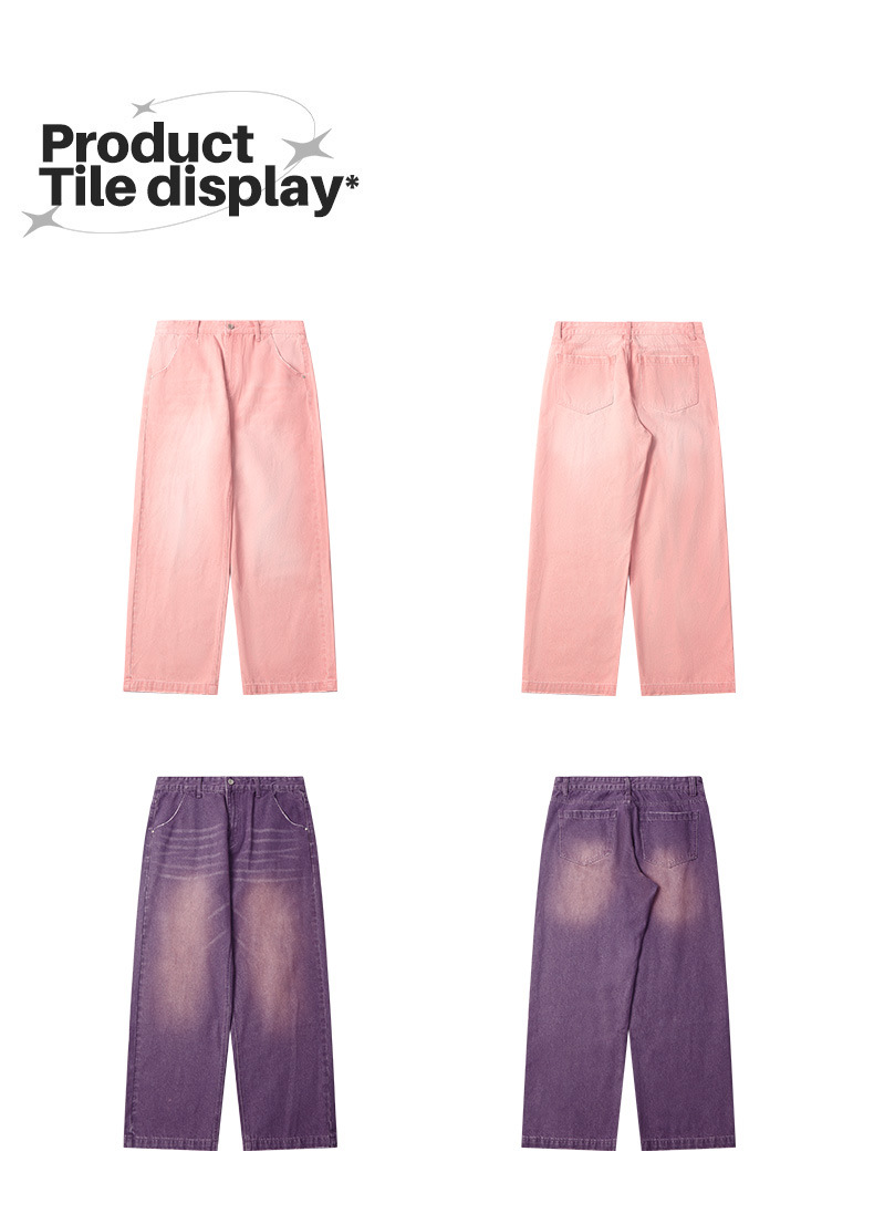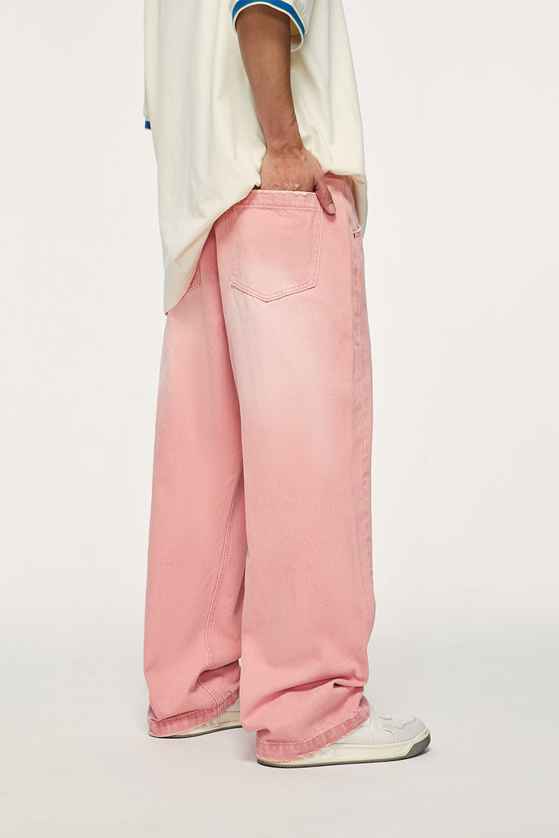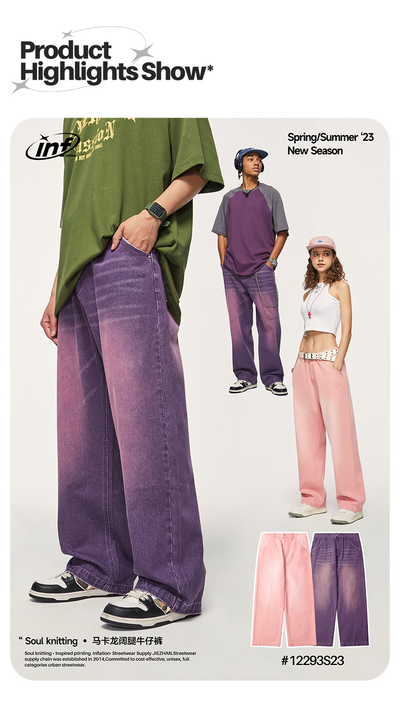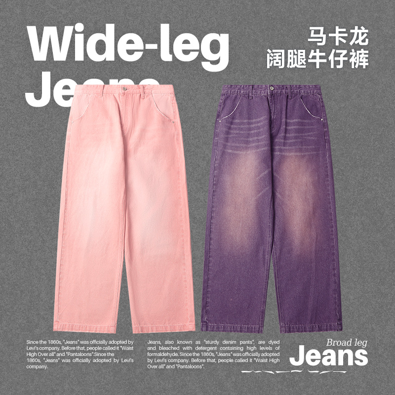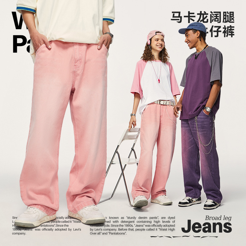 INF男装|彩色马卡龙街头洗水阔腿牛仔裤2023春夏新品潮牌宽松长裤