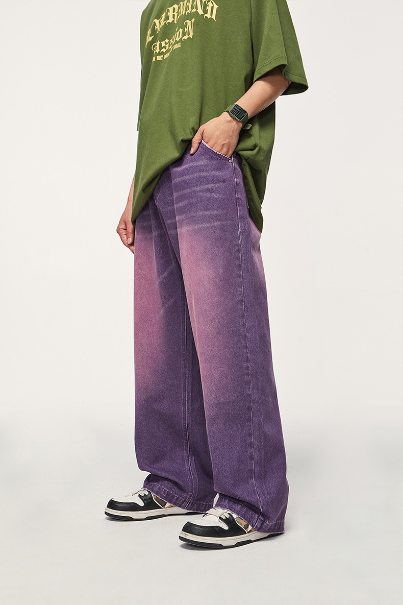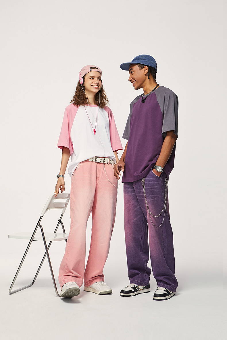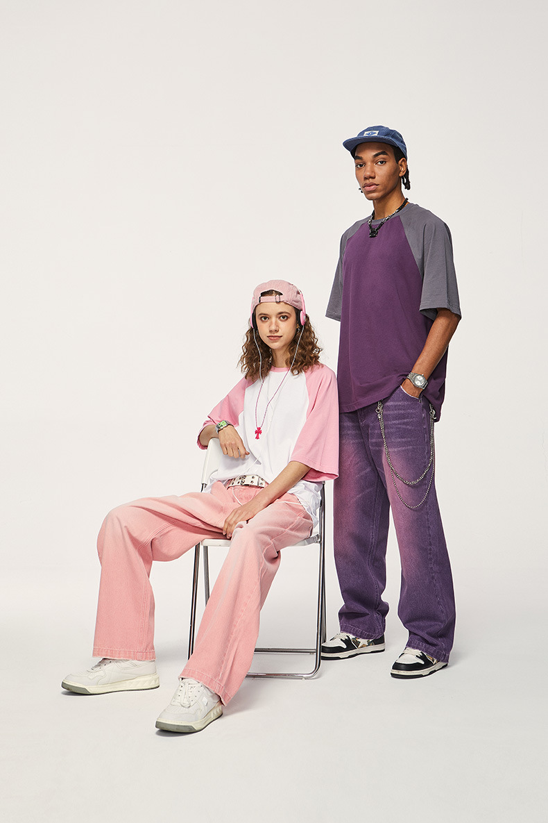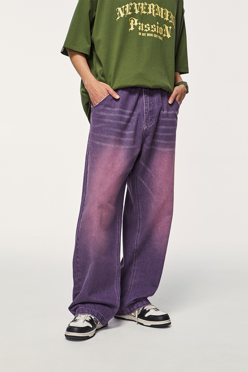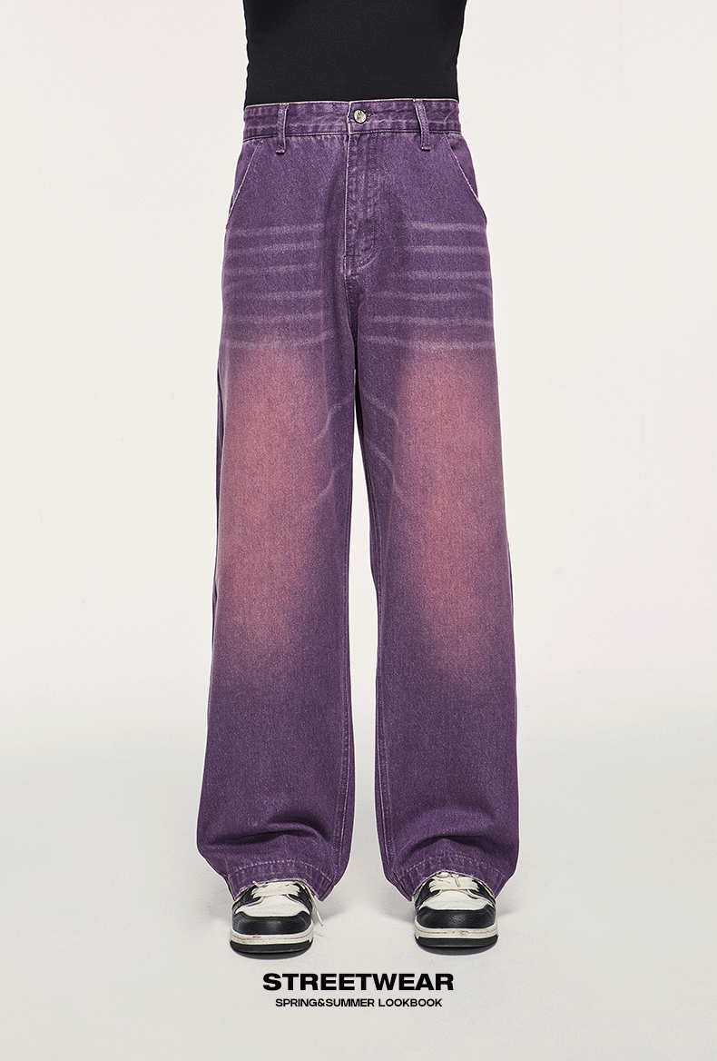 INF男装|彩色马卡龙街头洗水阔腿牛仔裤2023春夏新品潮牌宽松长裤