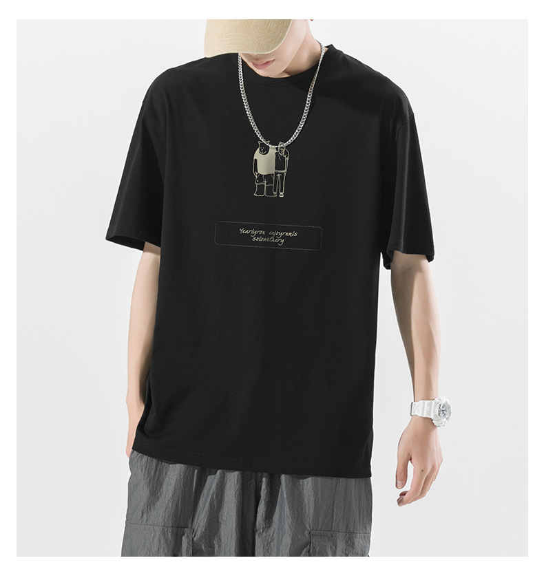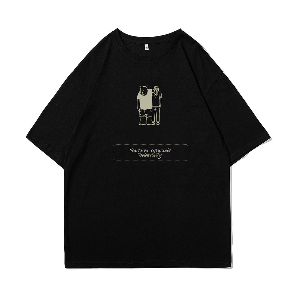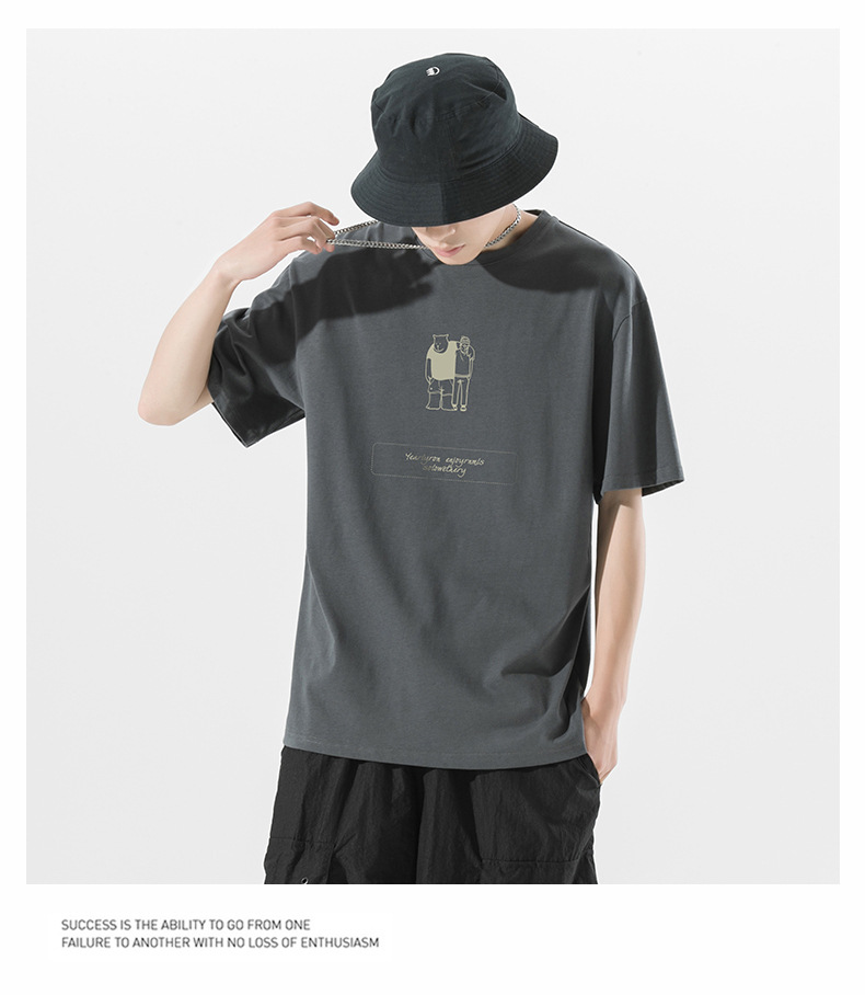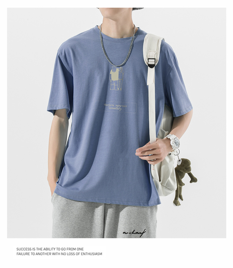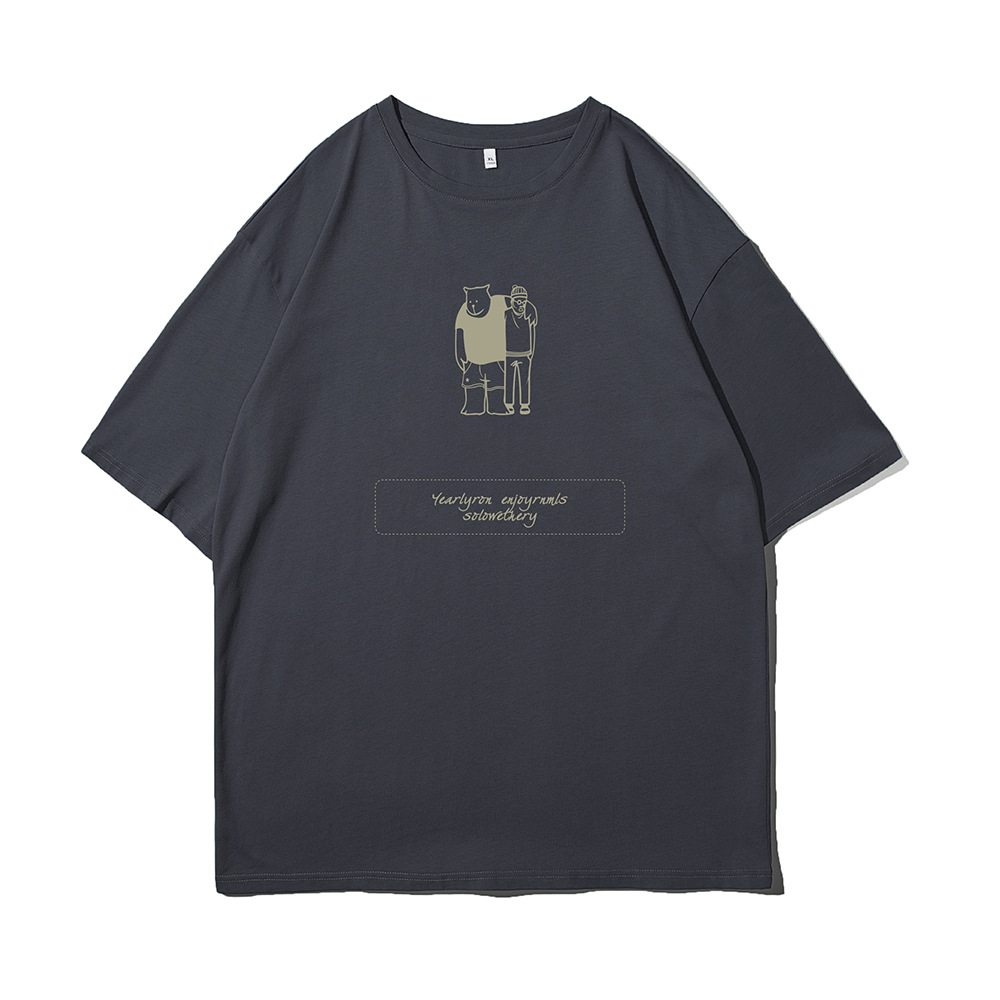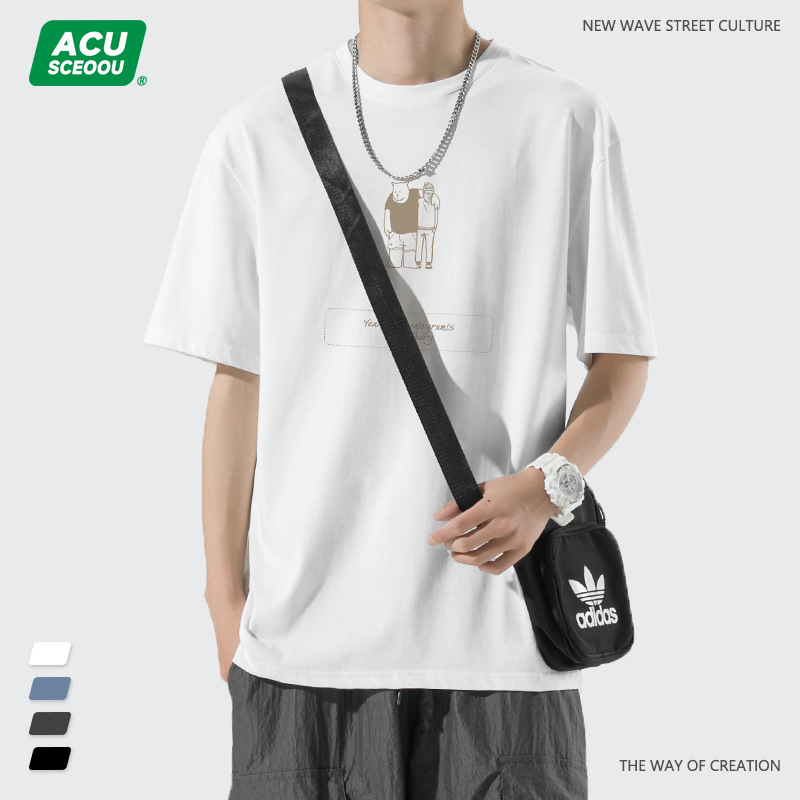 ACU男装|2023夏季新品百搭简约熊潮流宽松落肩袖纯棉短