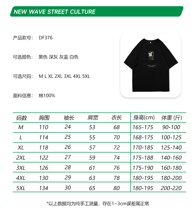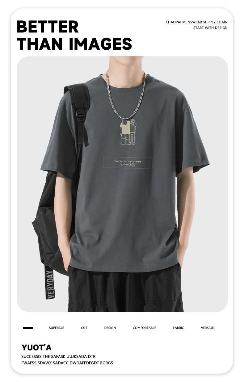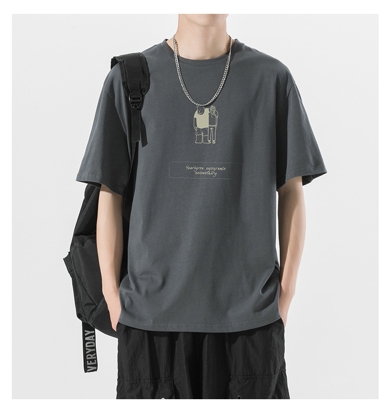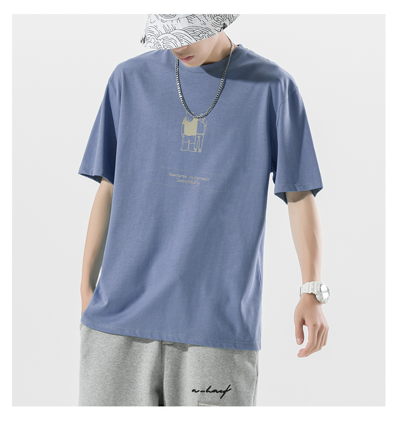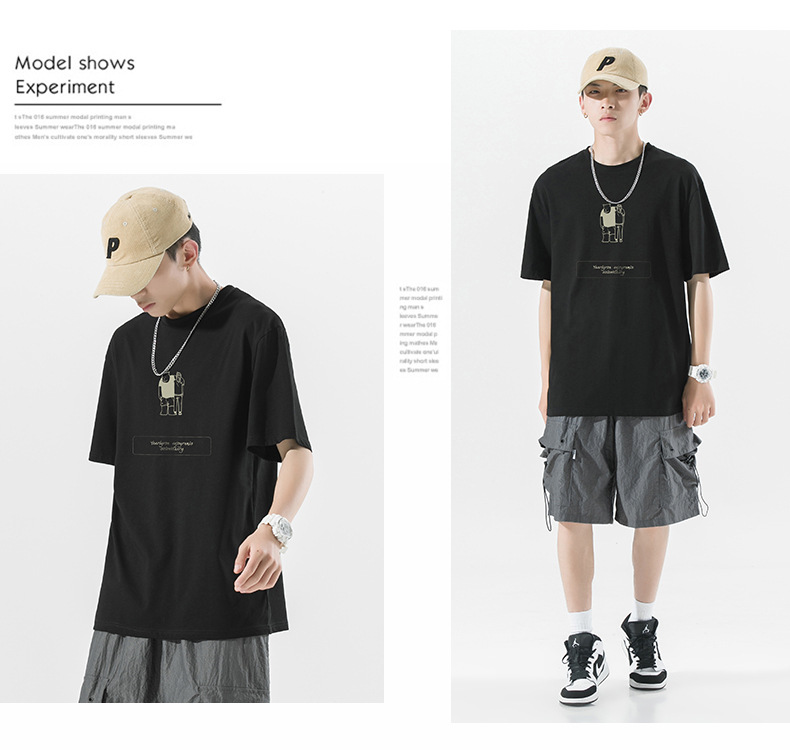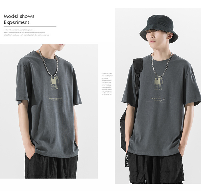 ACU男装|2023夏季新品百搭简约熊潮流宽松落肩袖纯棉短