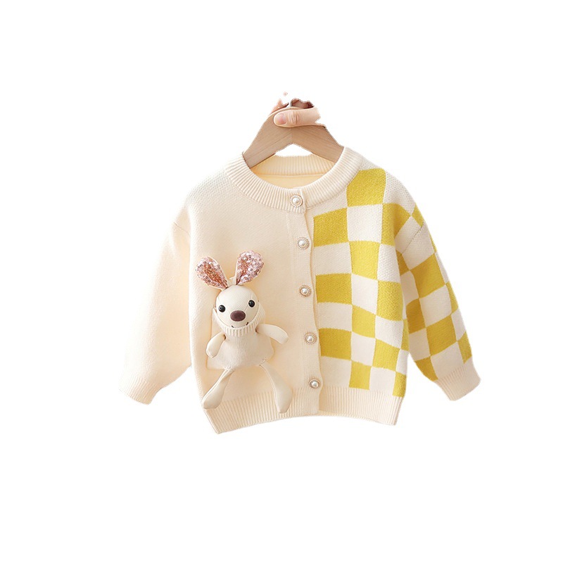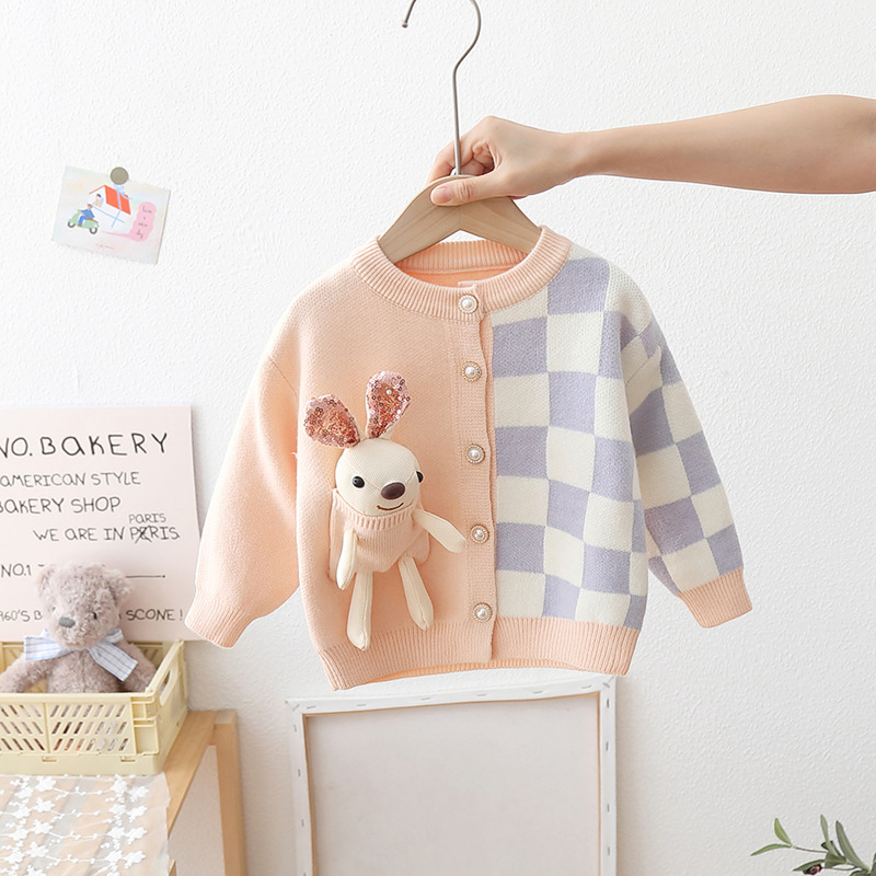 芭柔家kids 儿童毛衣韩版新款2022秋冬 女童卡通兔子开衫一件代发