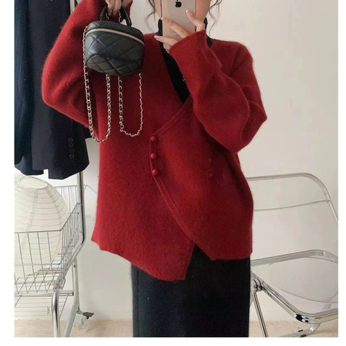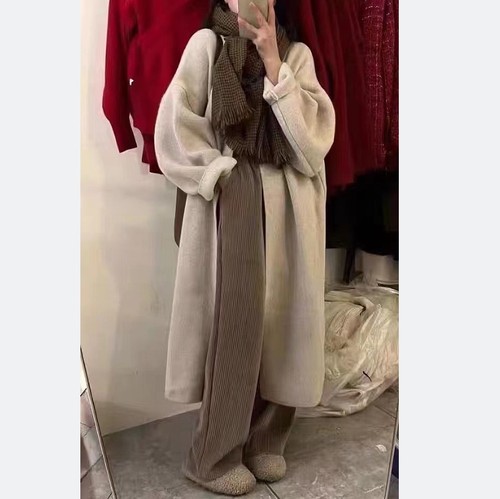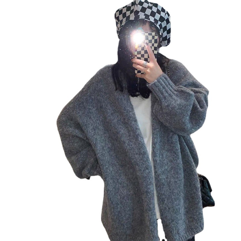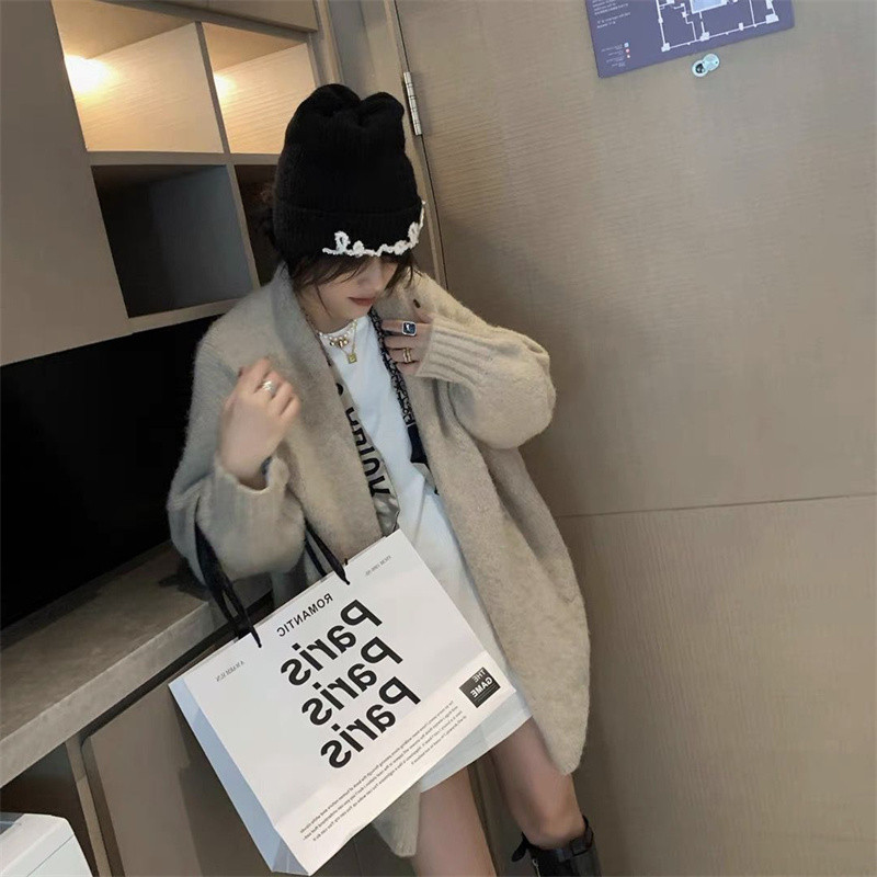 秋冬季中长款浣熊毛长袖针织开衫外套慵懒加厚毛衣女外搭韩系温柔