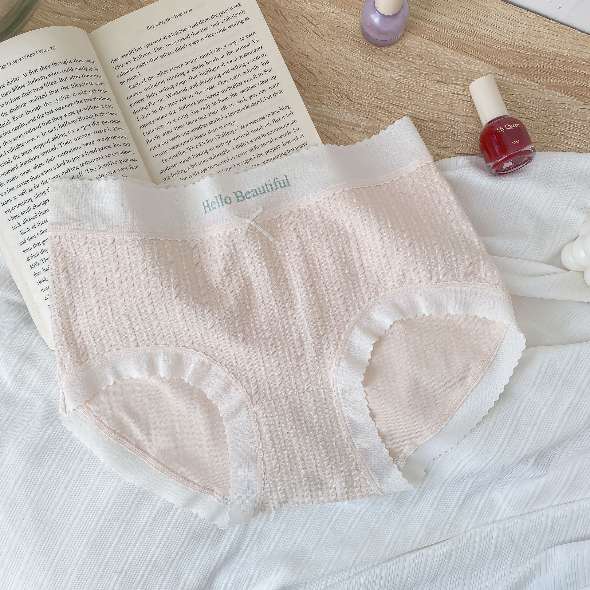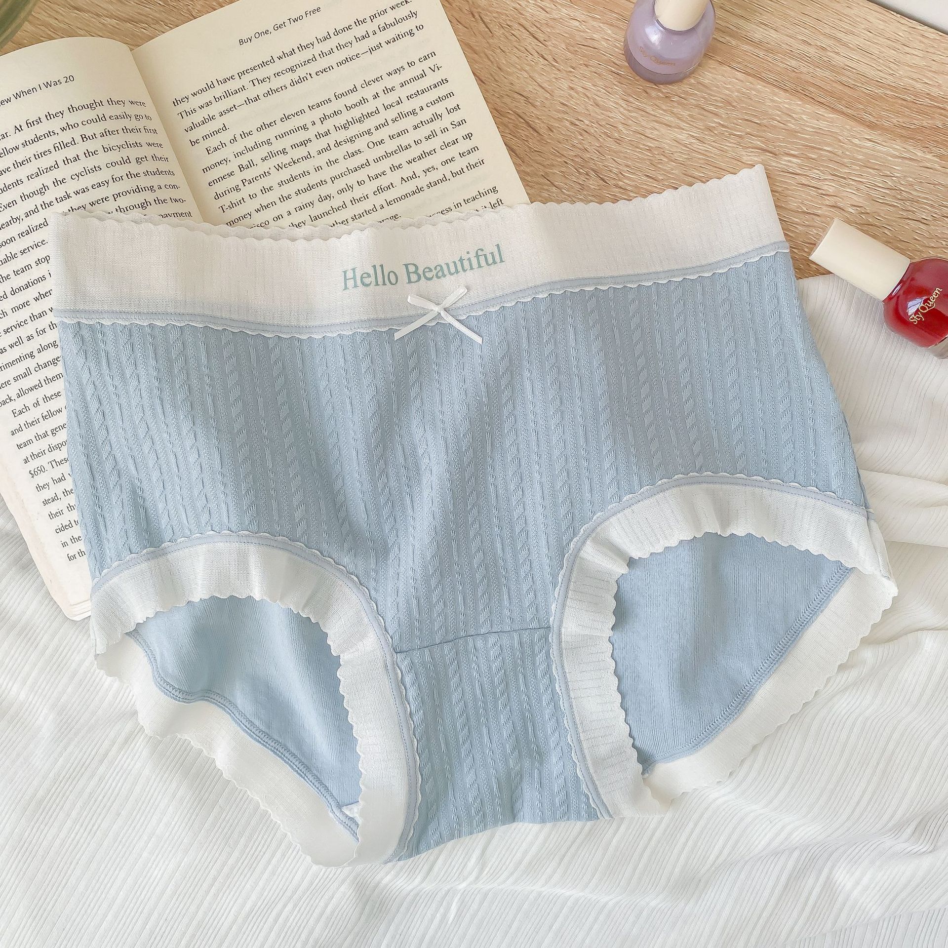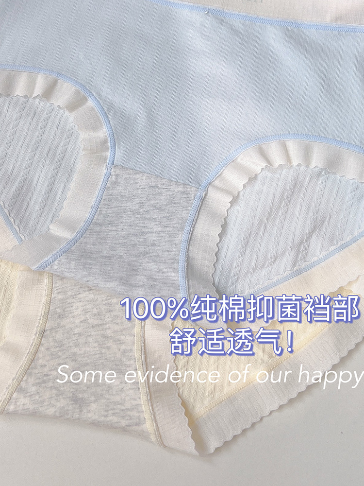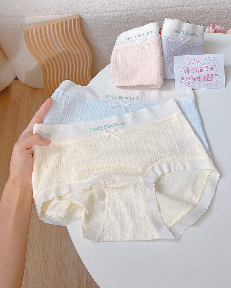 新款简约学生甜蜜少女内裤女双层底裆纯欲包臀日系中腰内裤5020