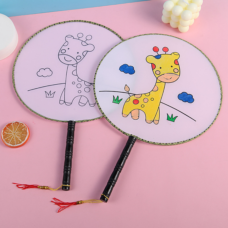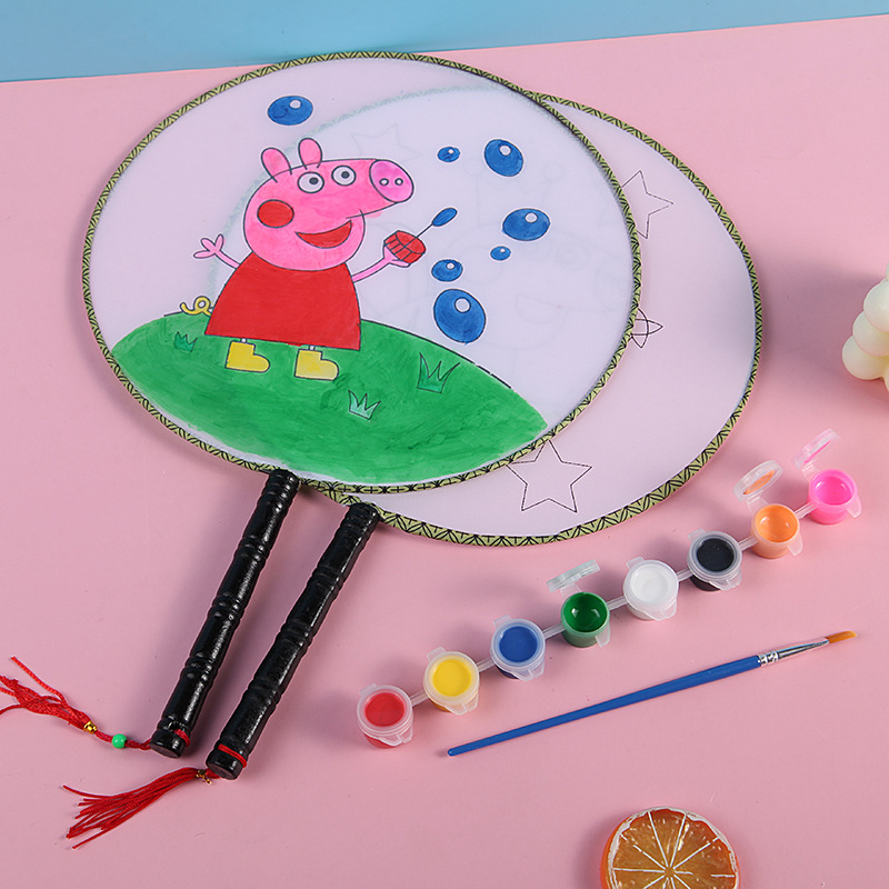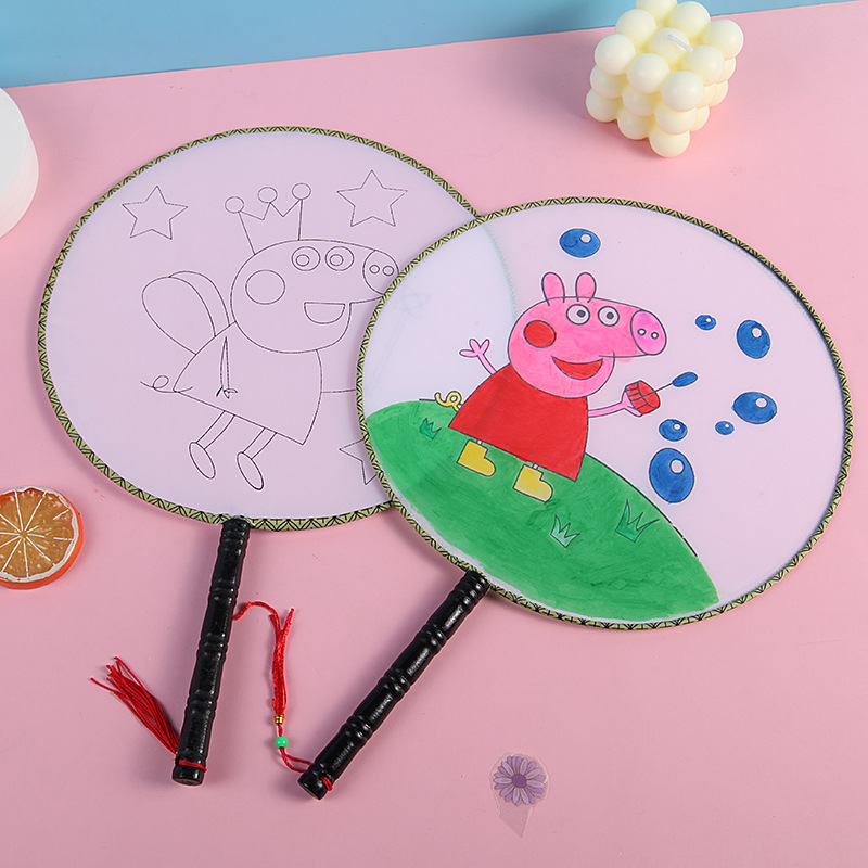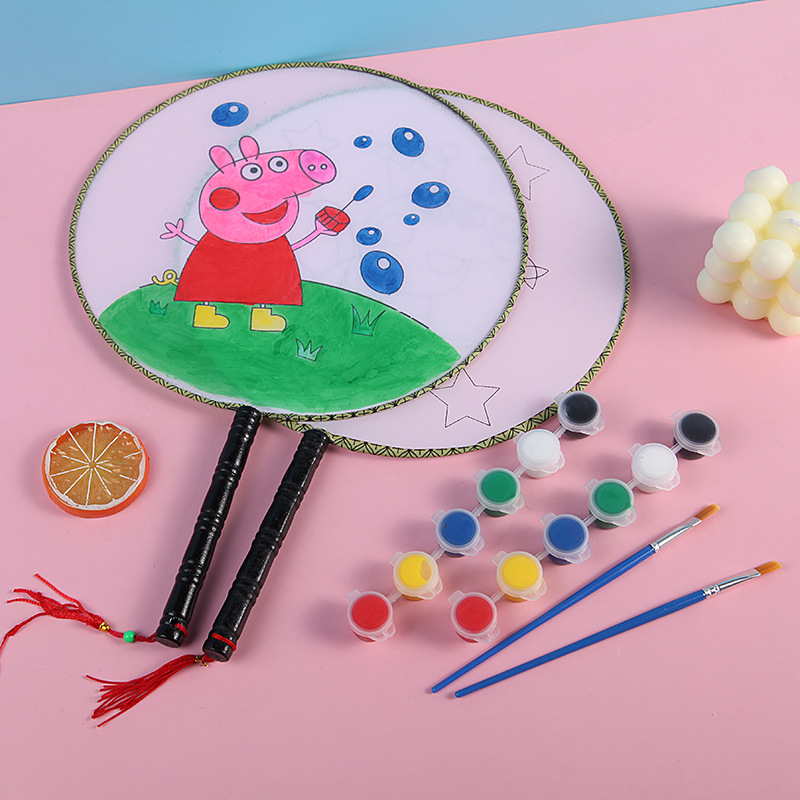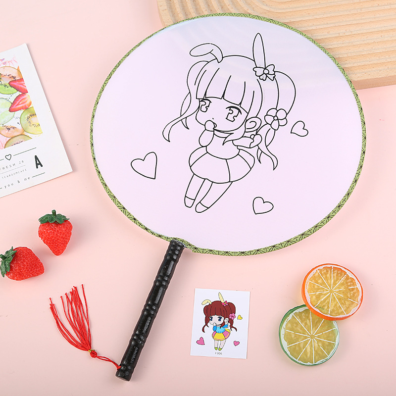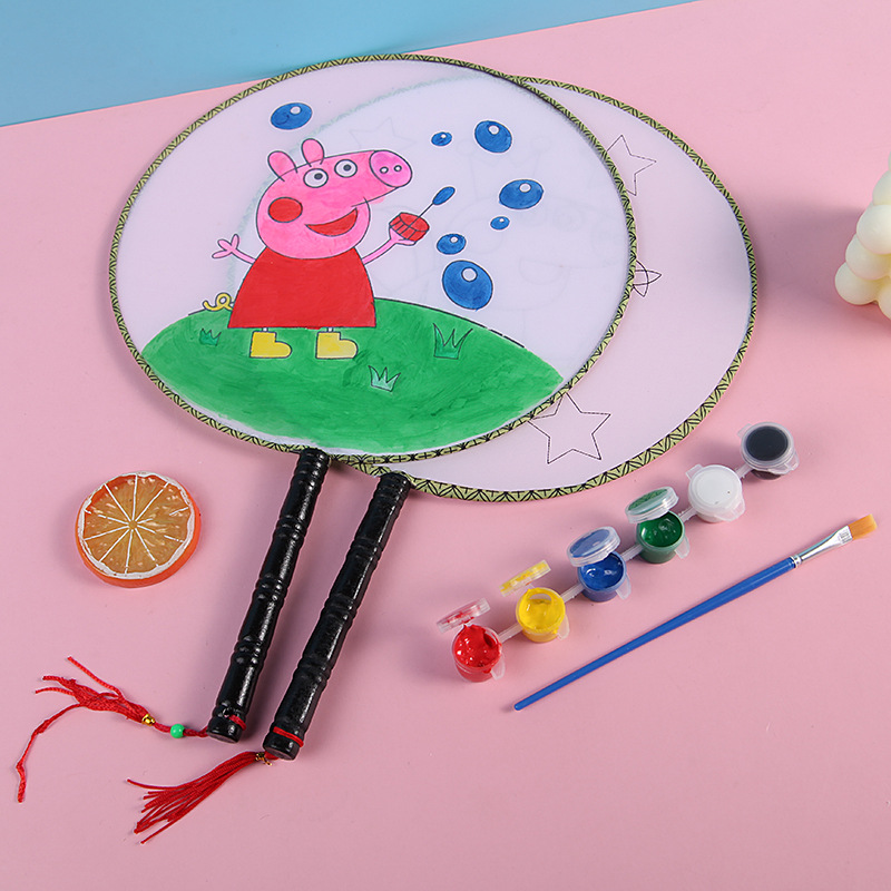儿童手工diy彩绘涂鸦扇空白宫扇团扇批发手绘扇子地摊玩具材料包