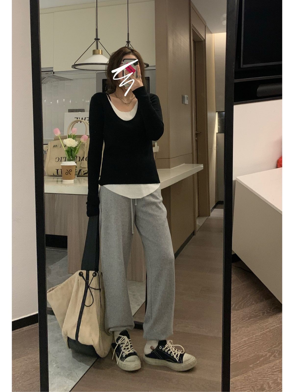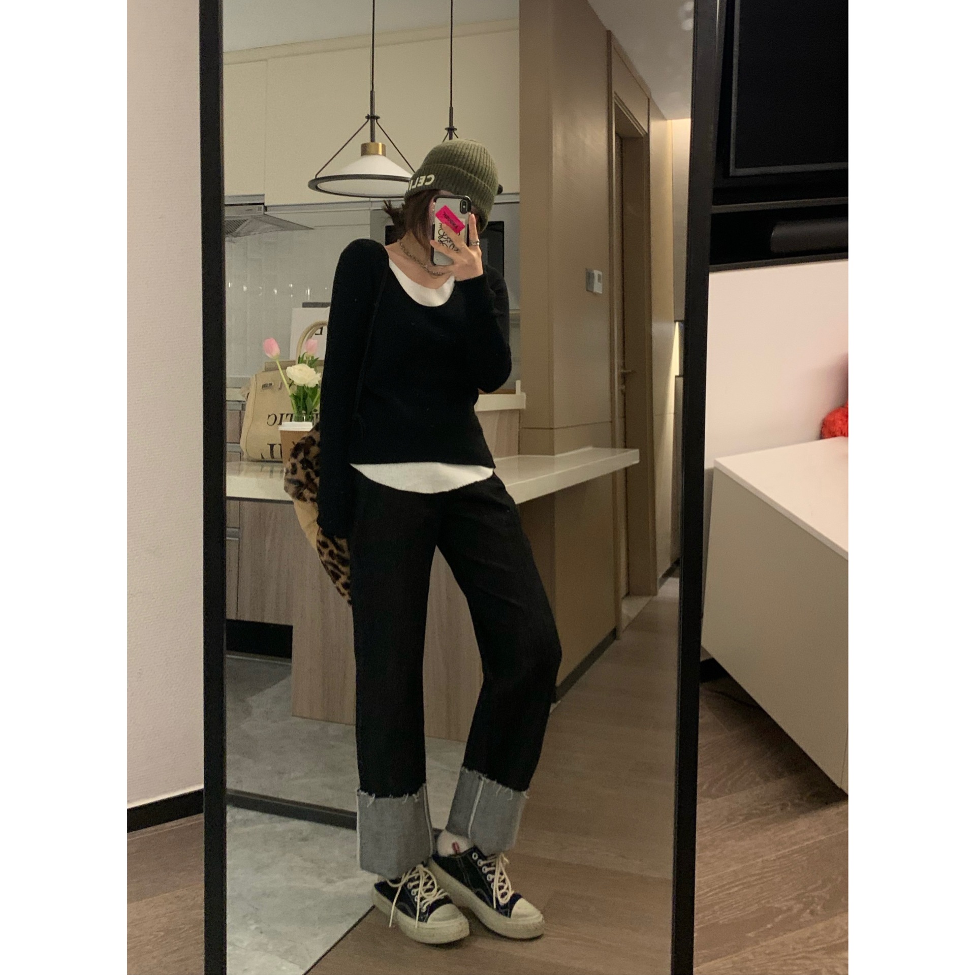 假两件针织衫女内搭春秋季新款韩版圆领长袖修身上衣洋气打底毛衣