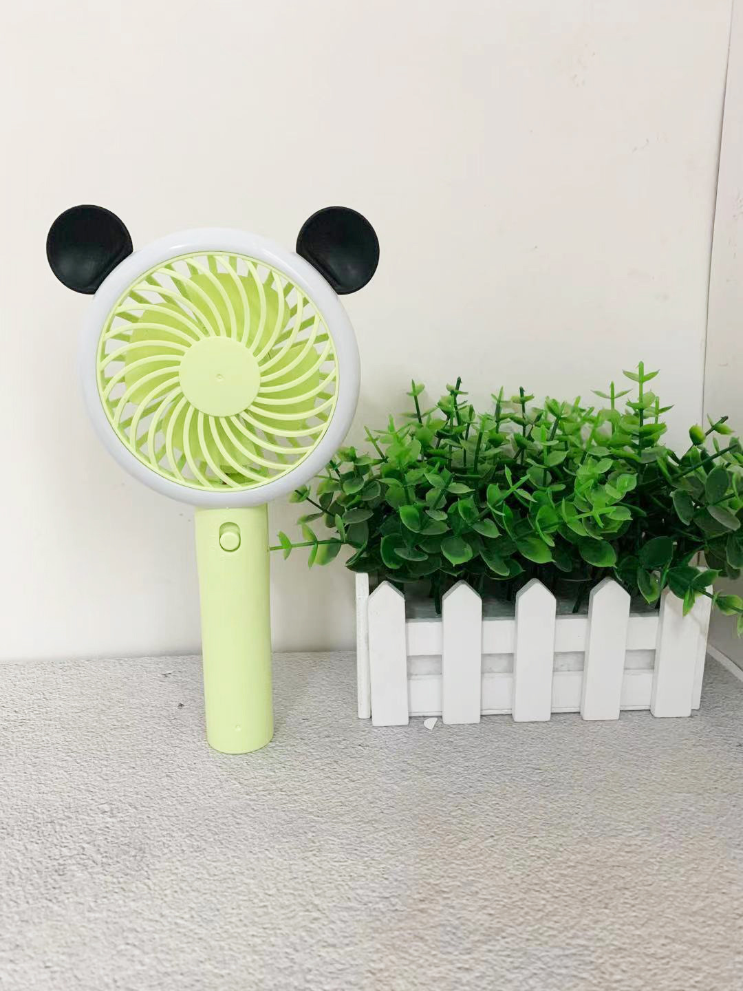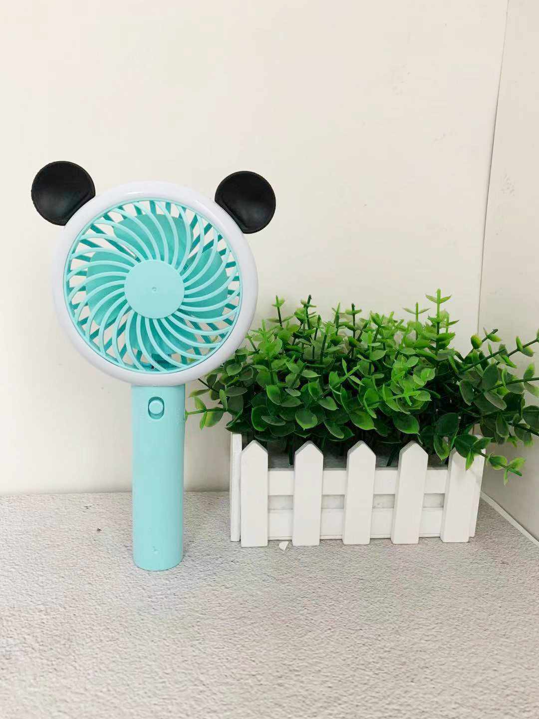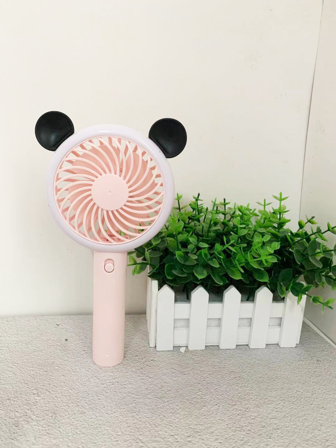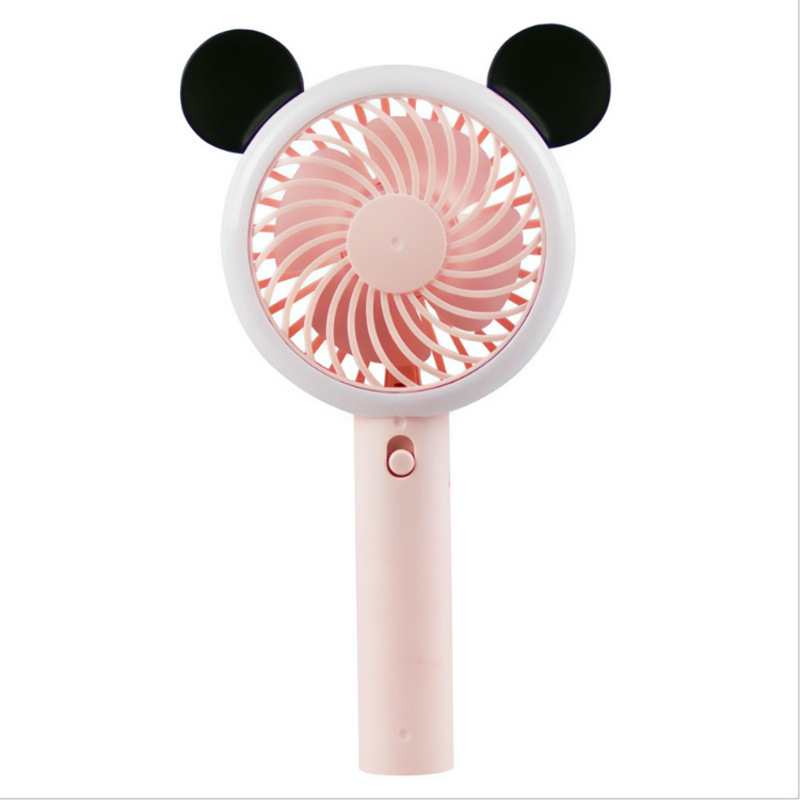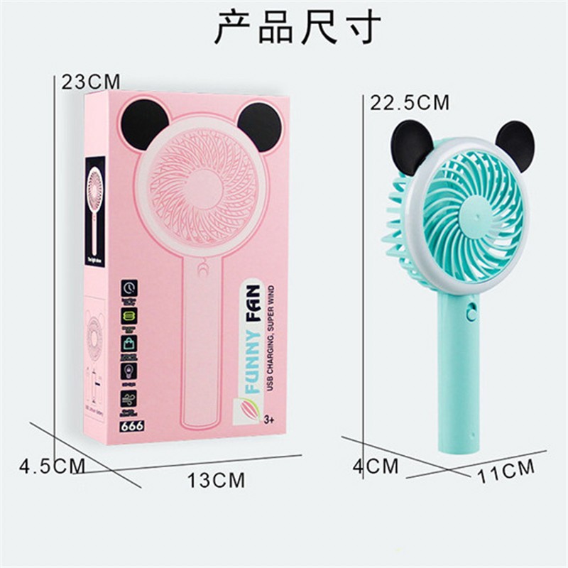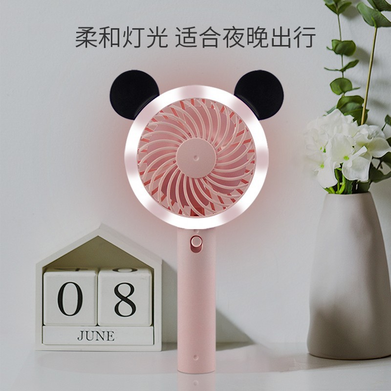 卡通熊耳米奇手持小风扇usb充电迷你户外便携式学生静音夜灯风扇
