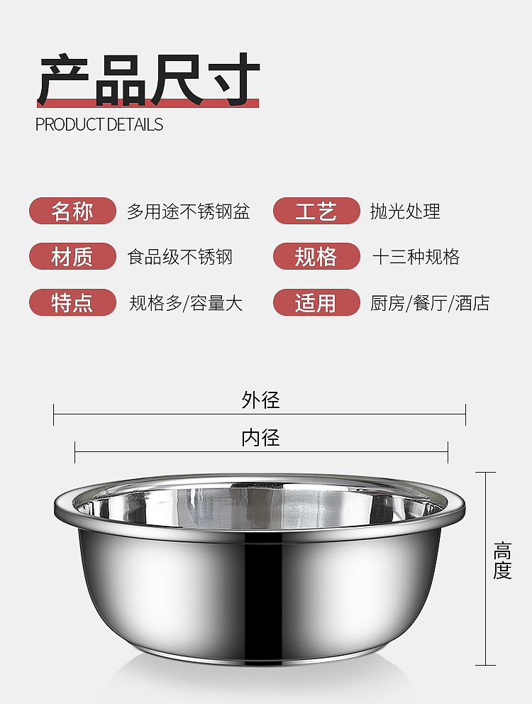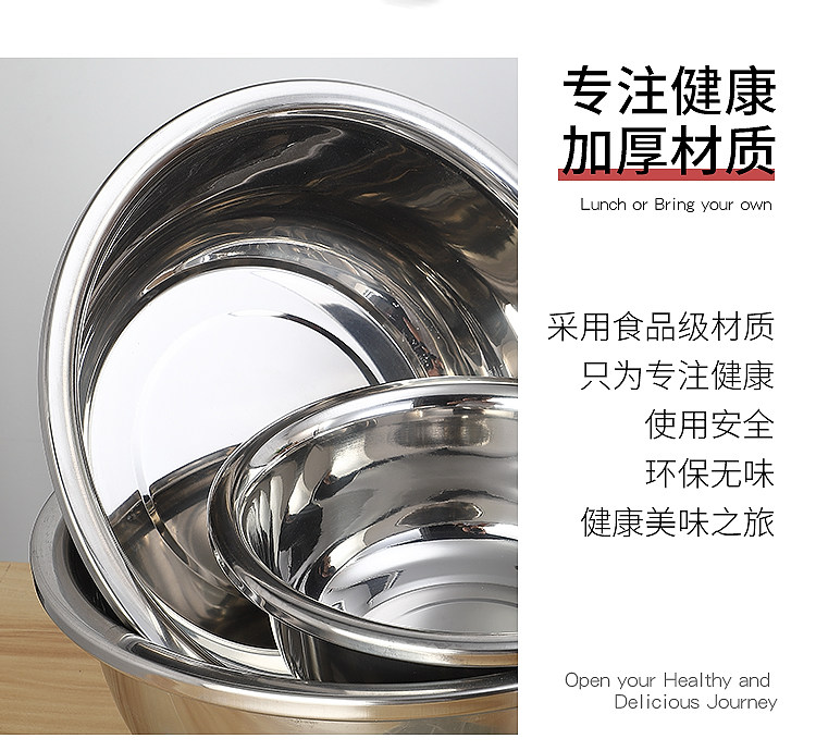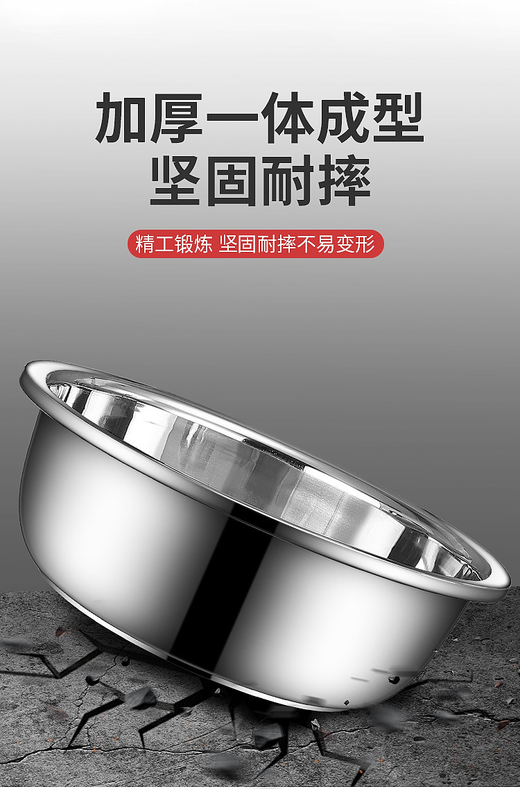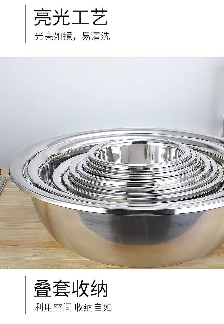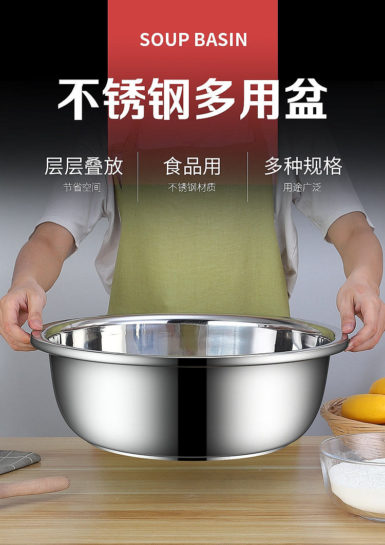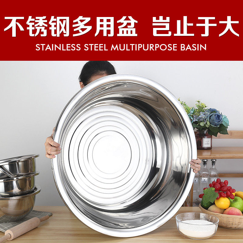 不锈钢盆304食品级家用特厚洗脸盆大圆盆洗衣盆厨房洗菜盆和面盆