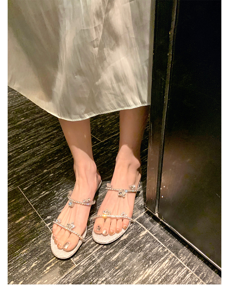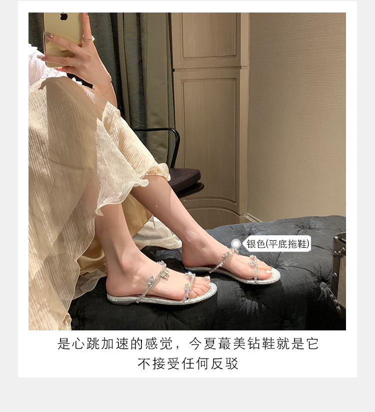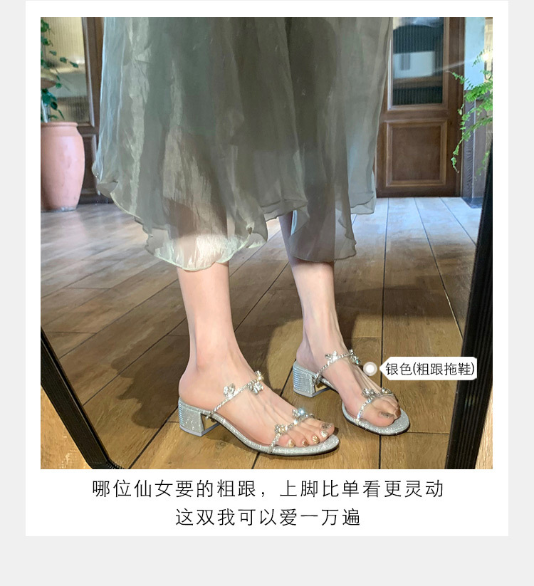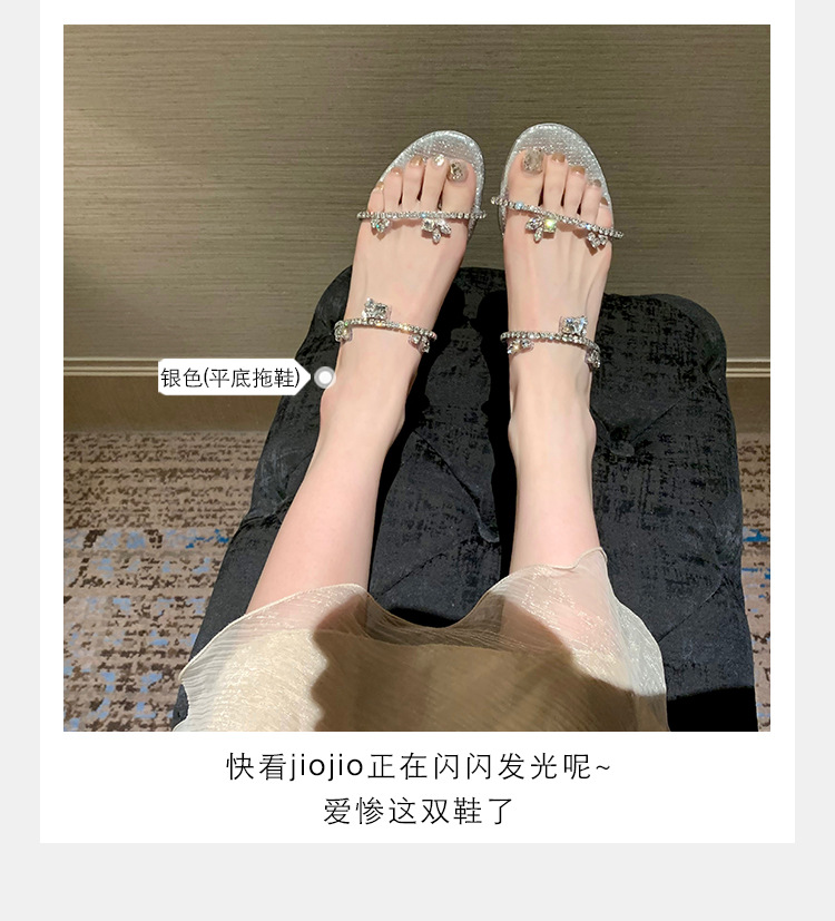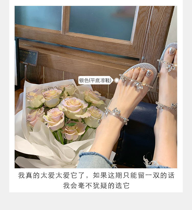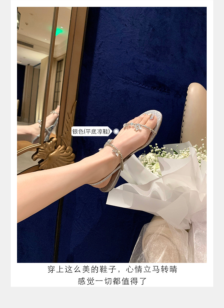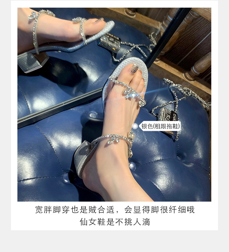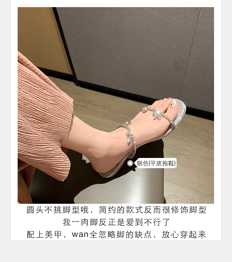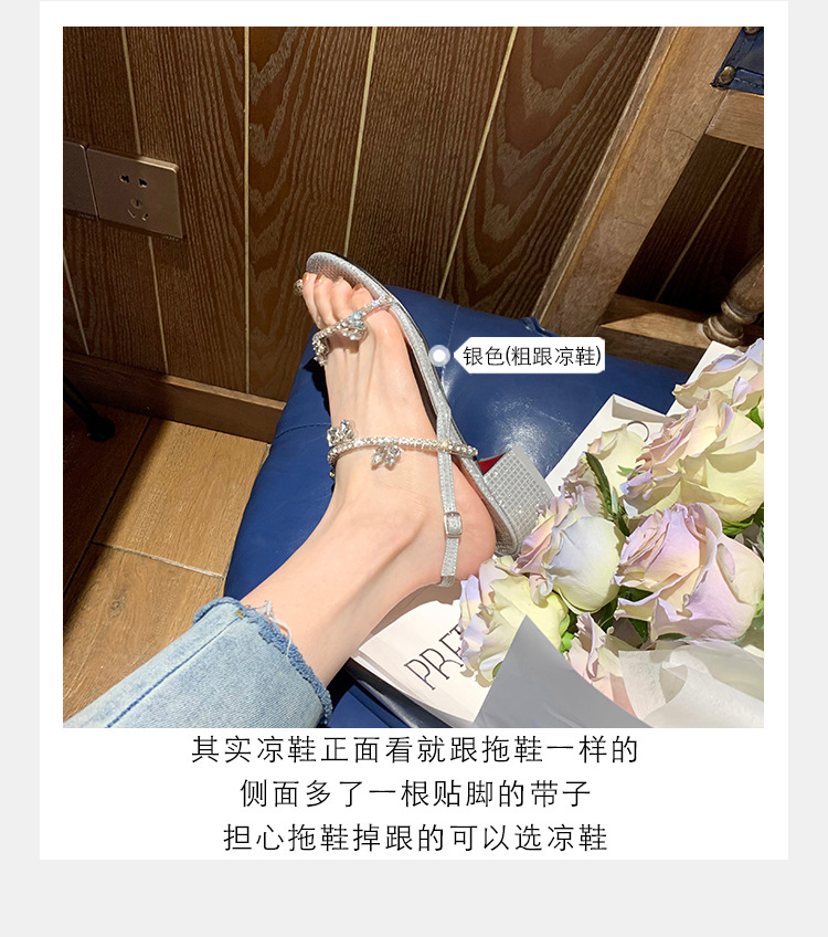 2023夏季新款时尚甜美风舒适平底粗跟葡萄妈外穿水钻百搭性感凉鞋