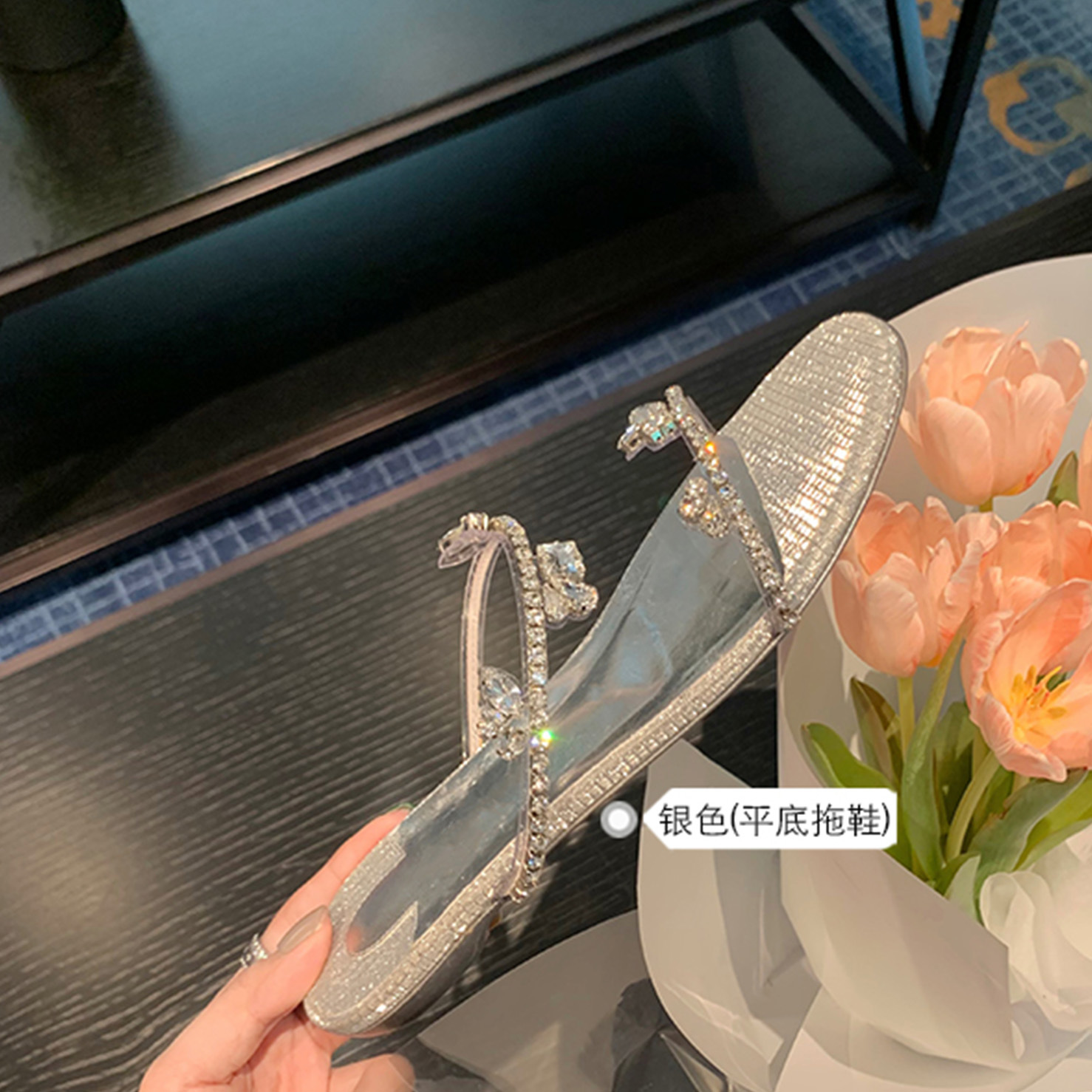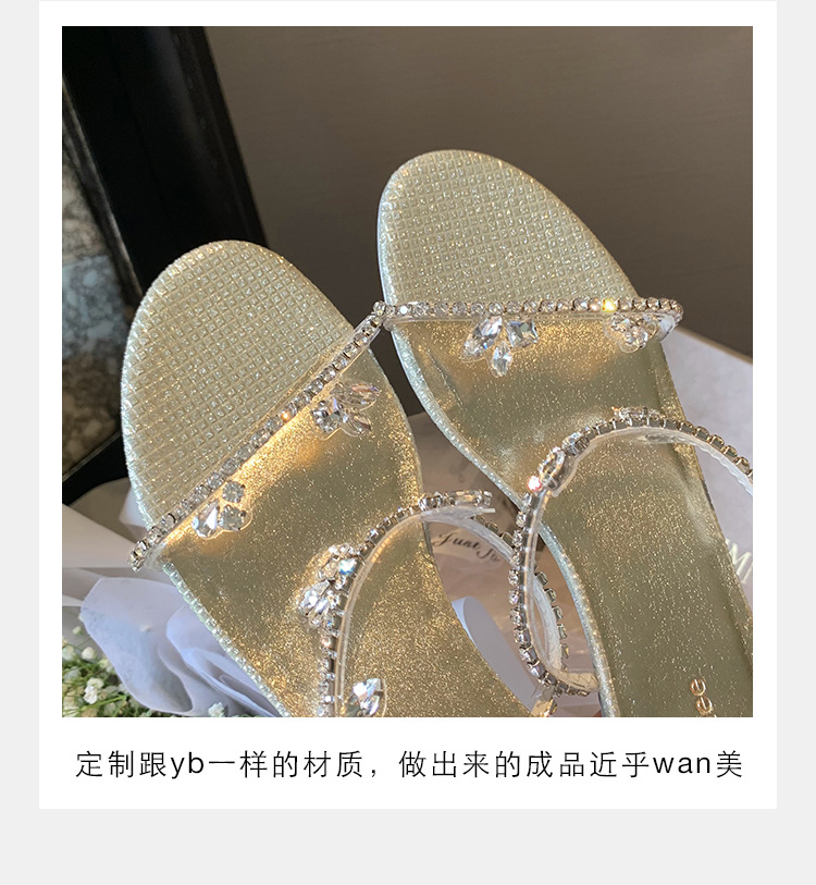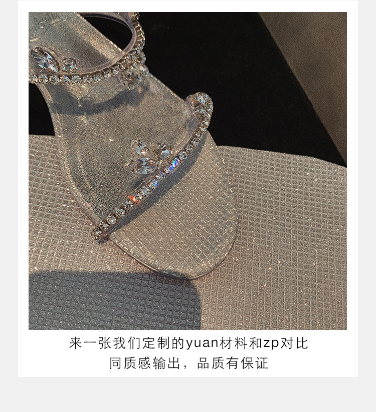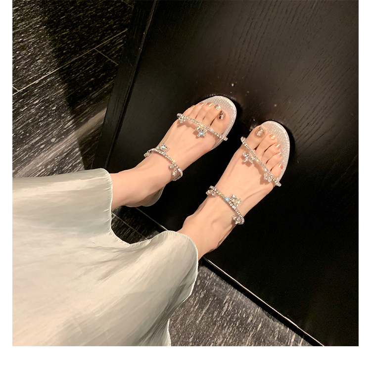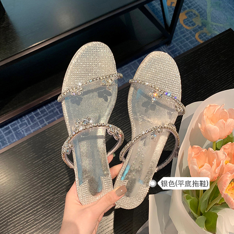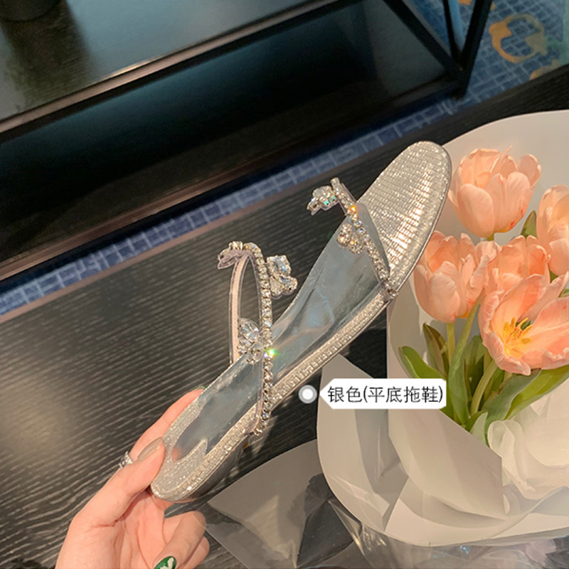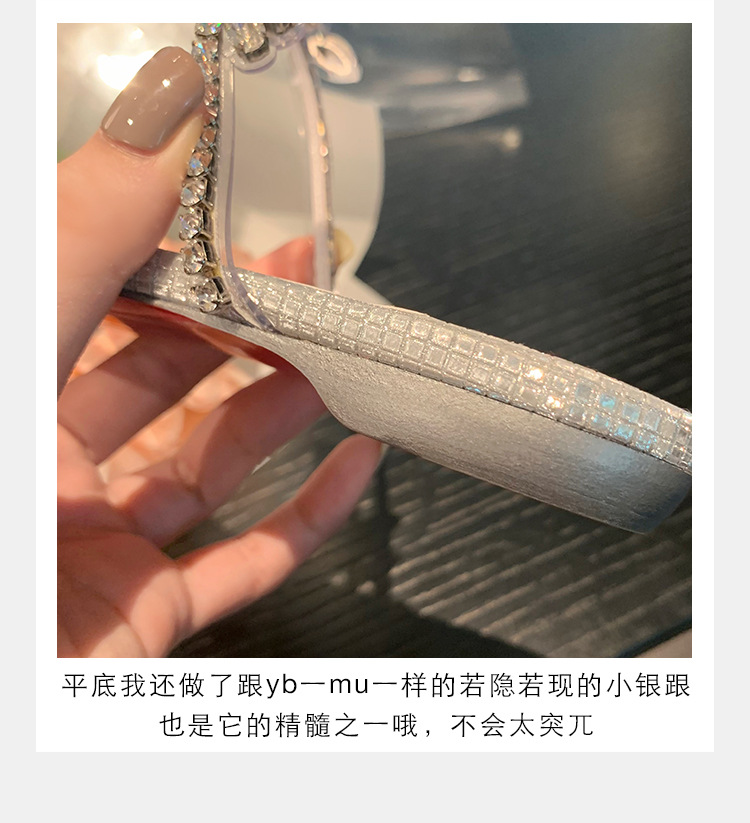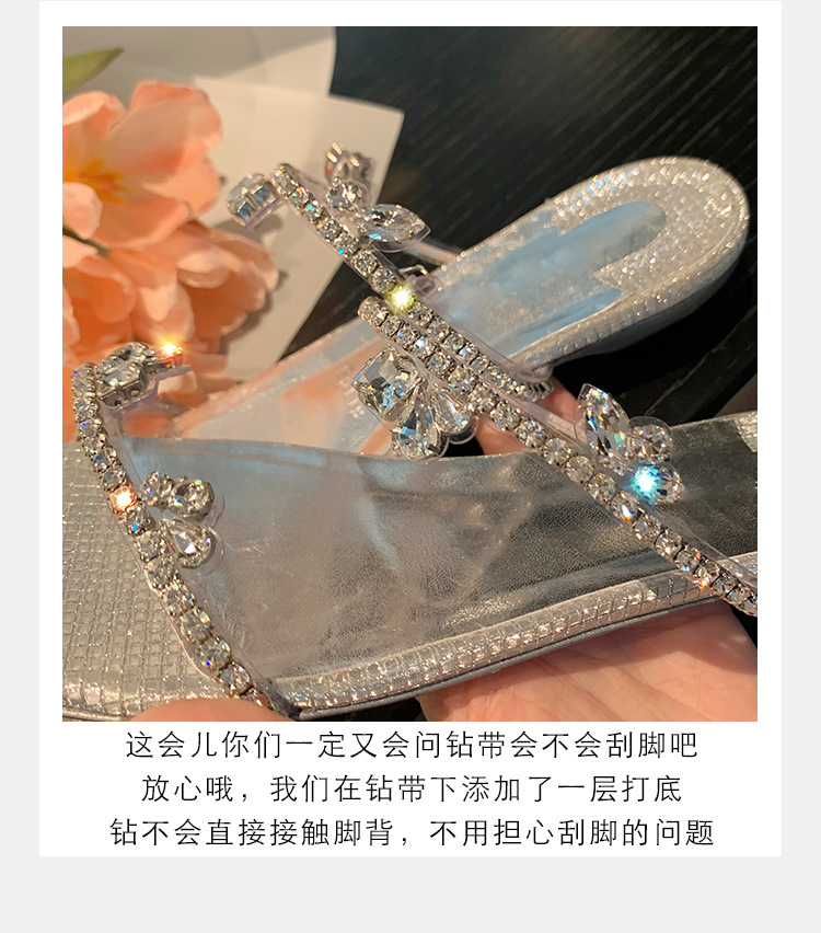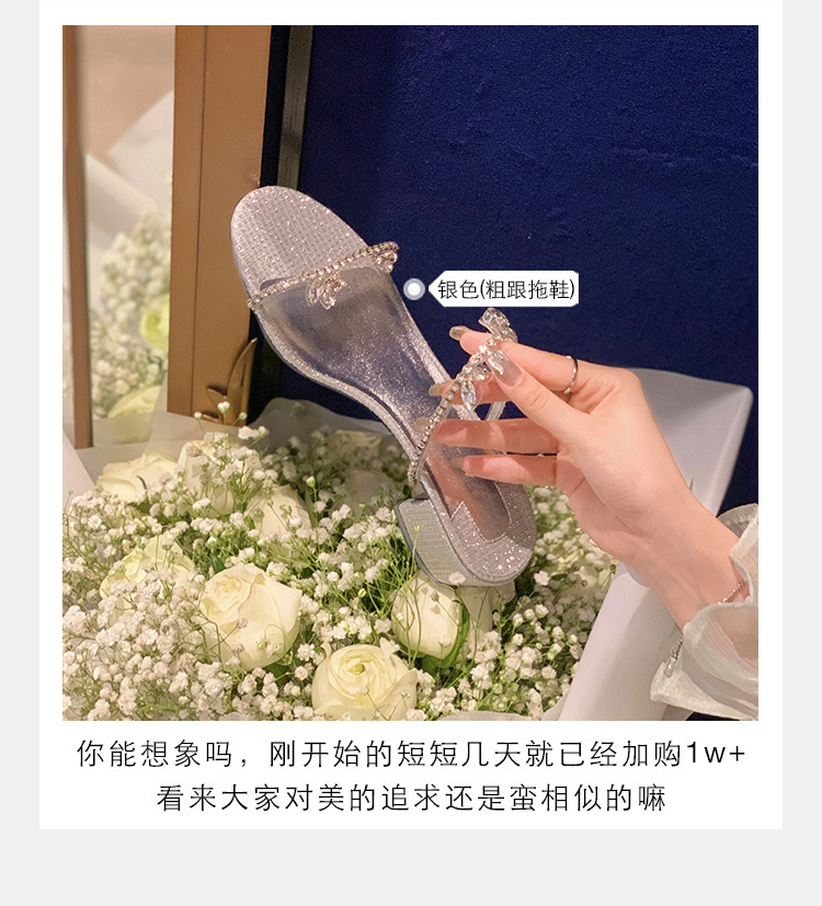 2023夏季新款时尚甜美风舒适平底粗跟葡萄妈外穿水钻百搭性感凉鞋