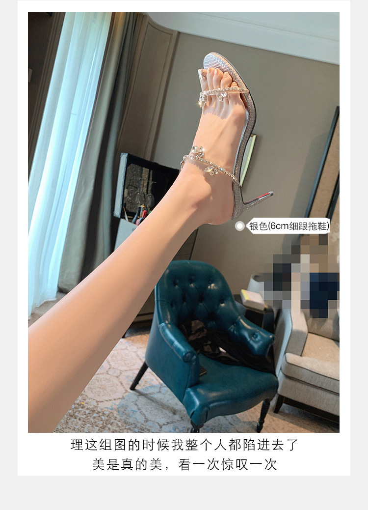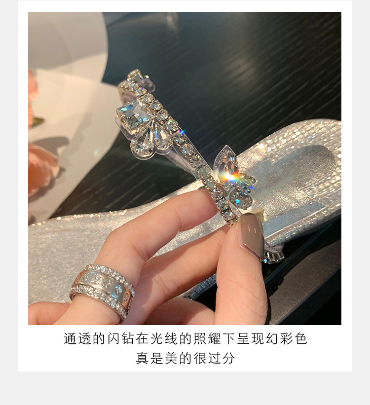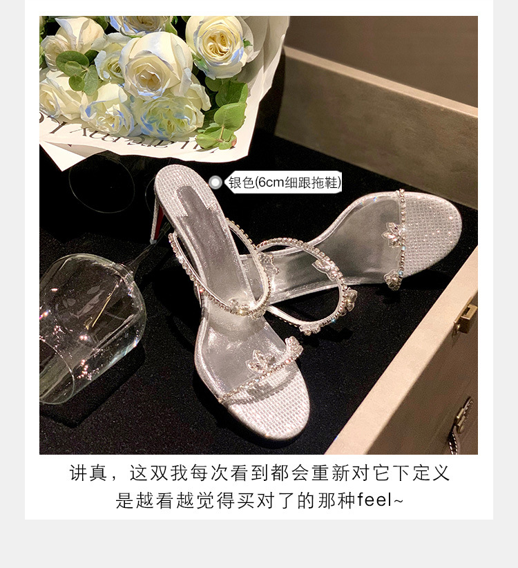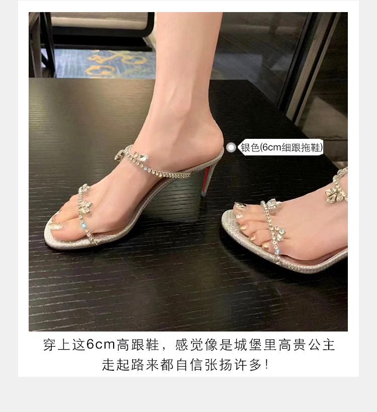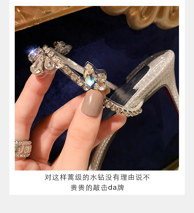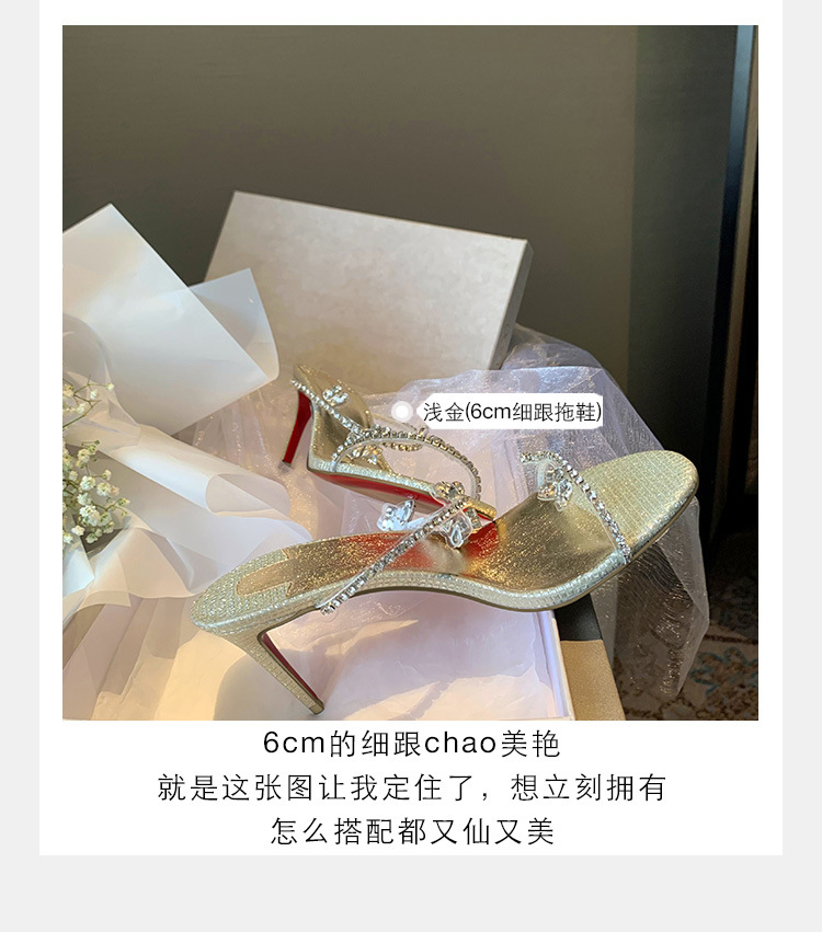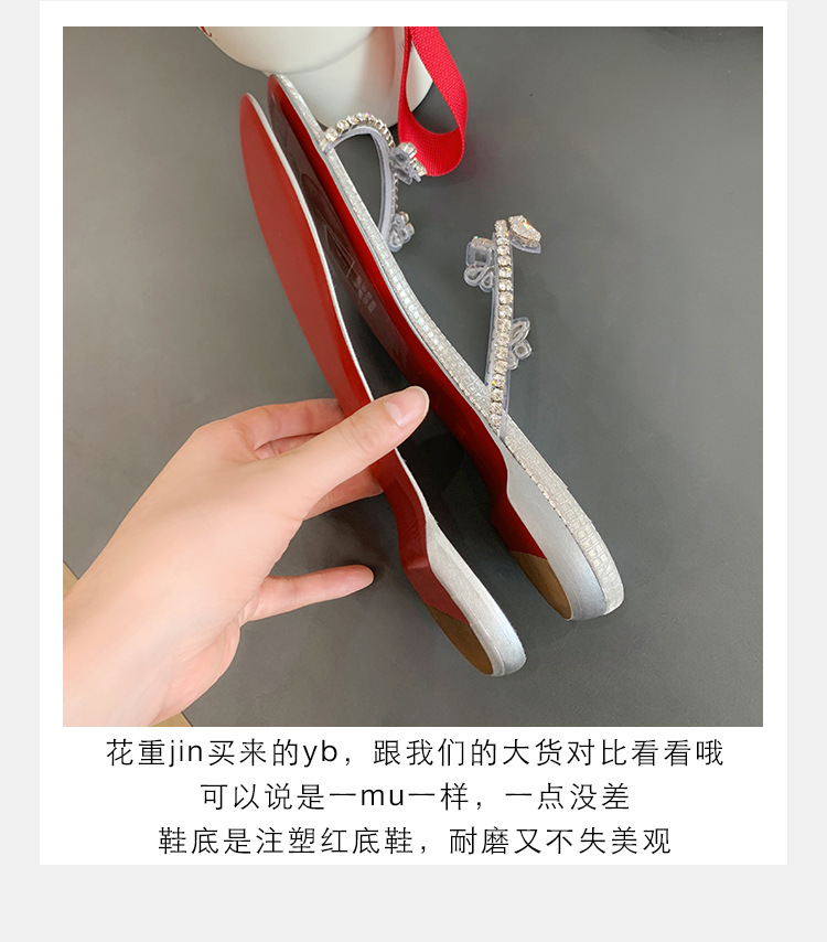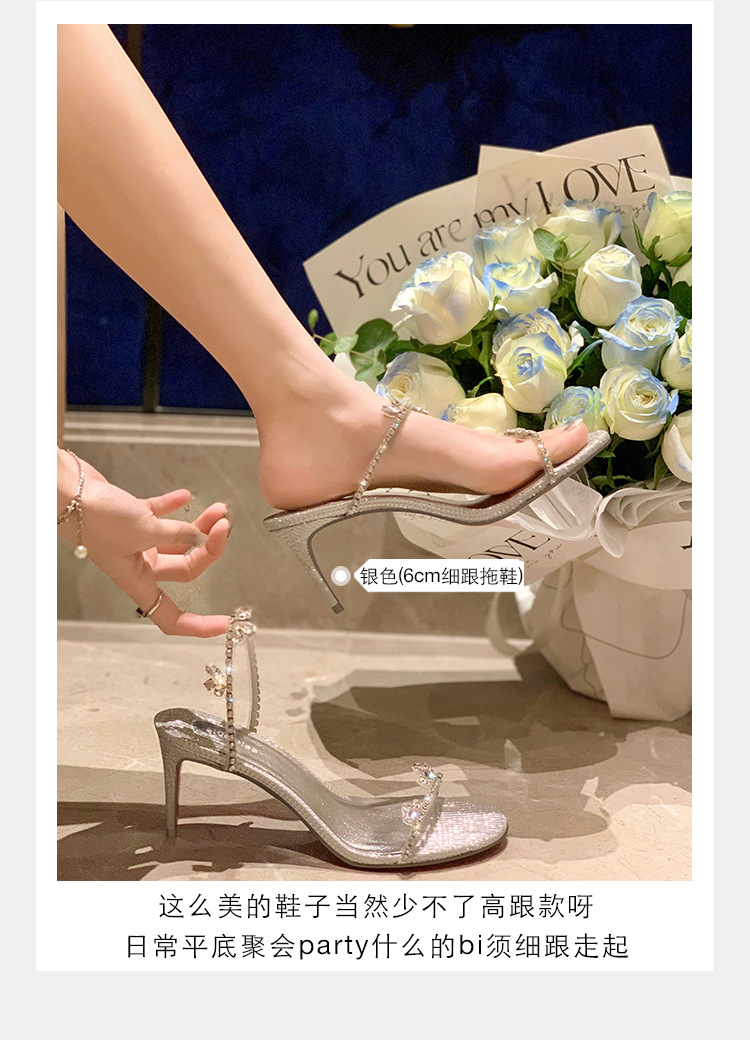 2023夏季新款时尚甜美风舒适平底粗跟葡萄妈外穿水钻百搭性感凉鞋