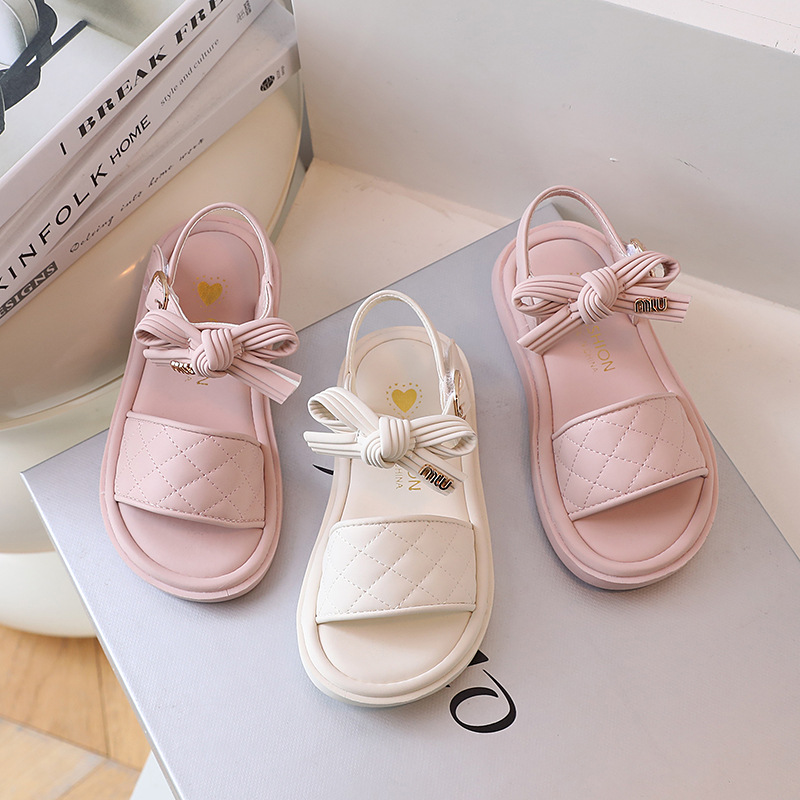 女童凉鞋2023年新款时尚夏季中童沙滩鞋韩版小女孩蝴蝶结公主鞋