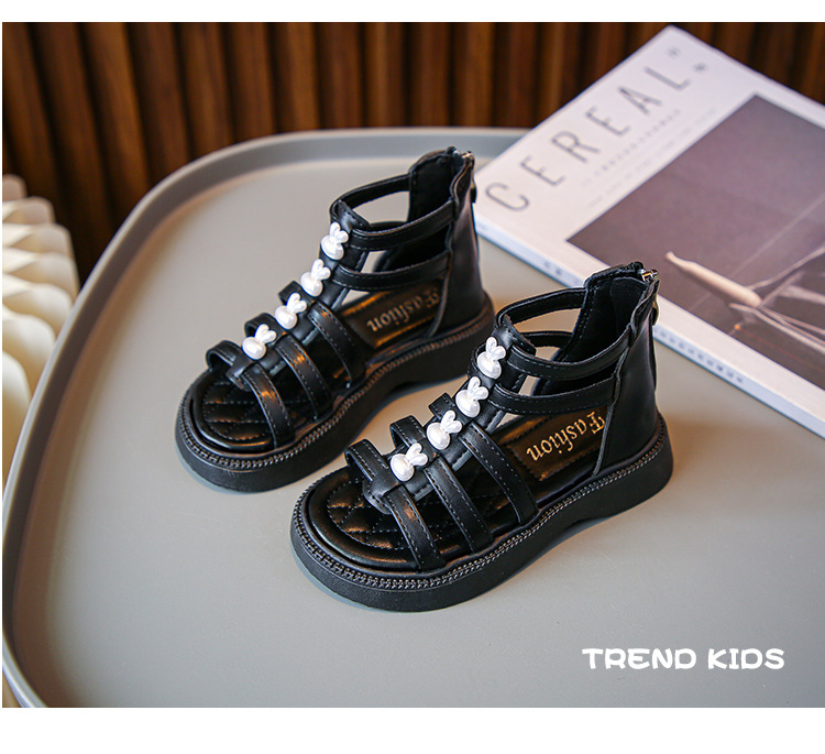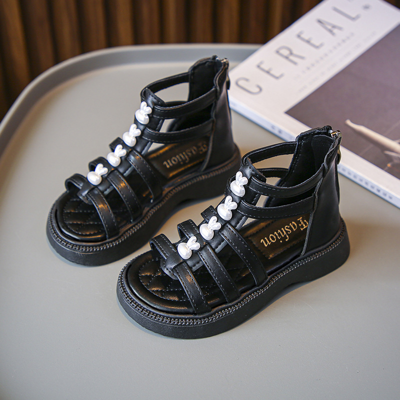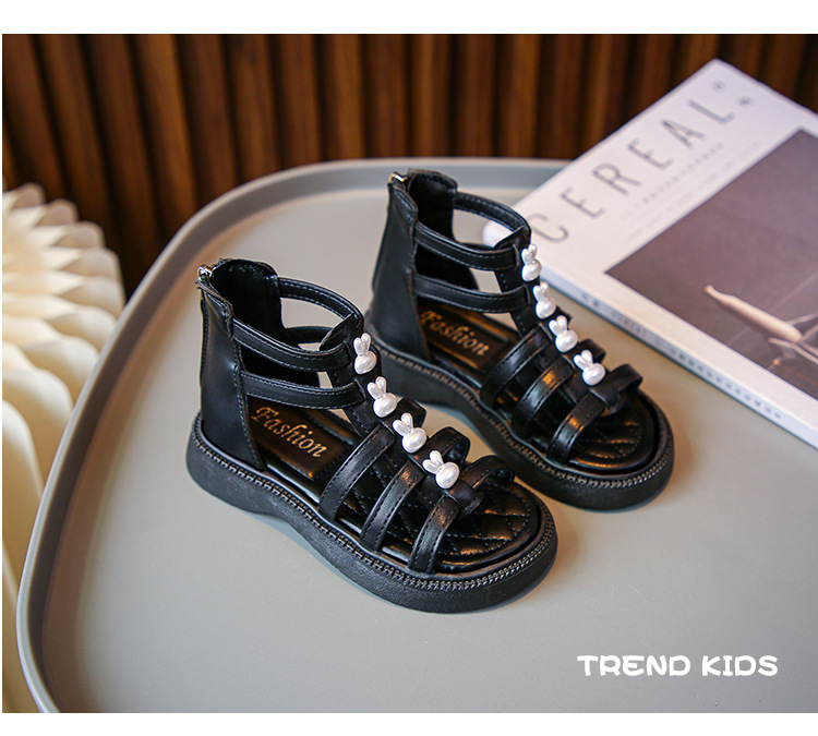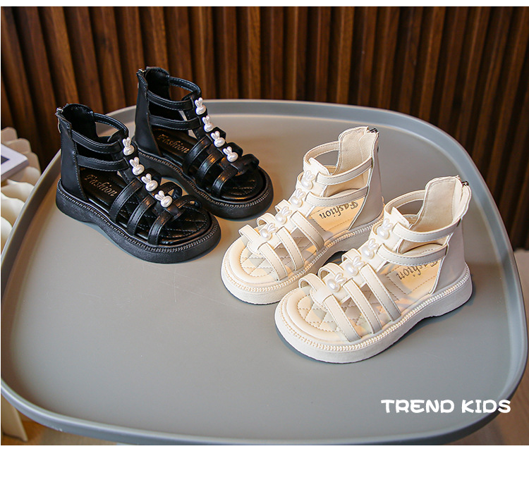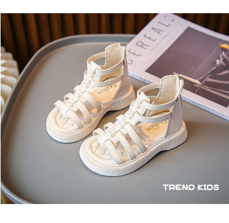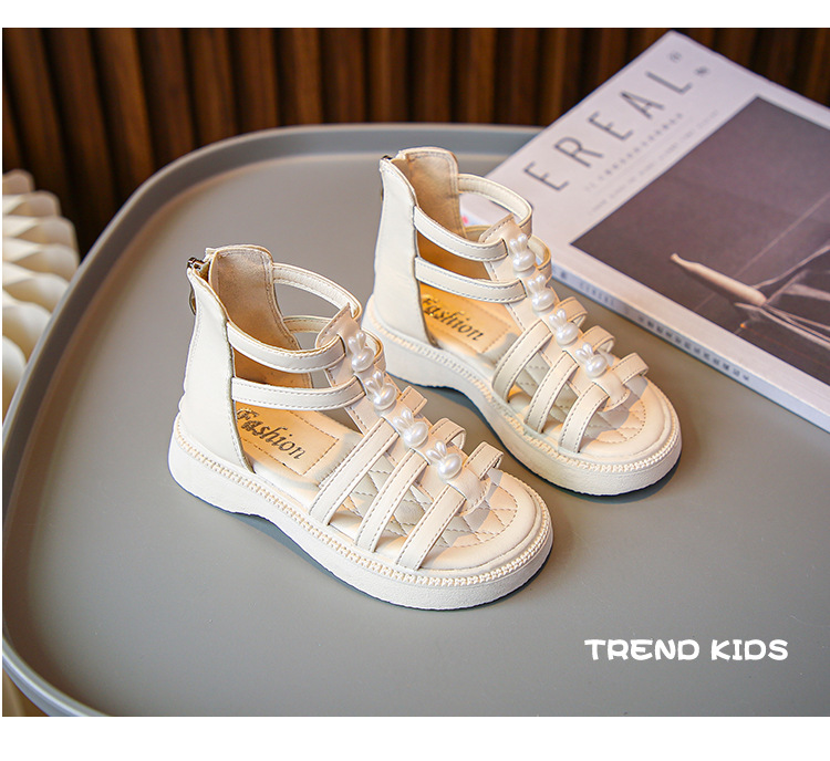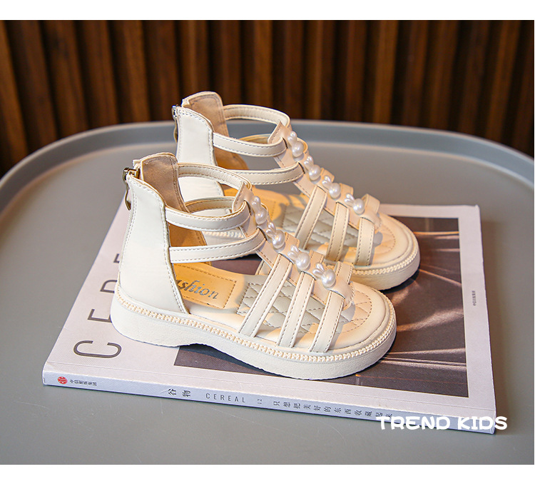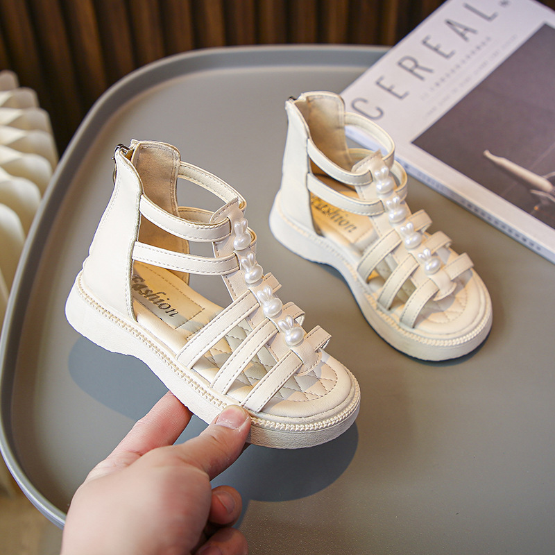 女童凉鞋夏款2023新款夏季中大童软底罗马凉鞋女孩洋气珍珠公主鞋