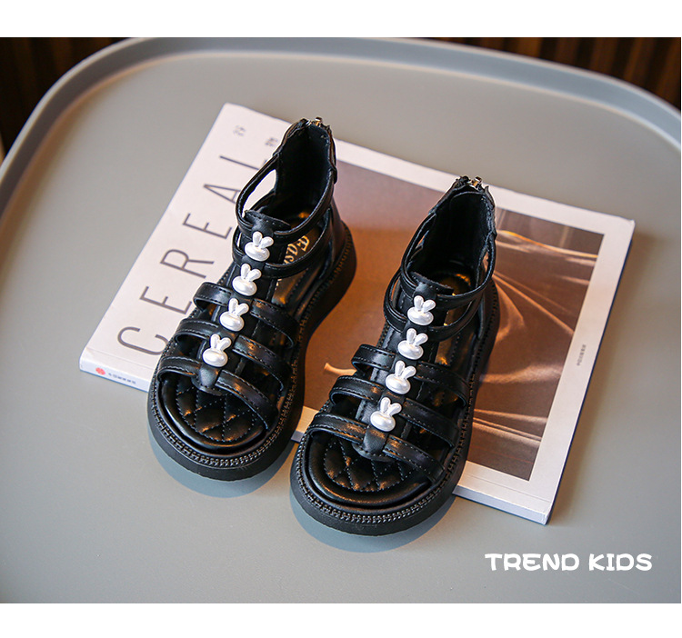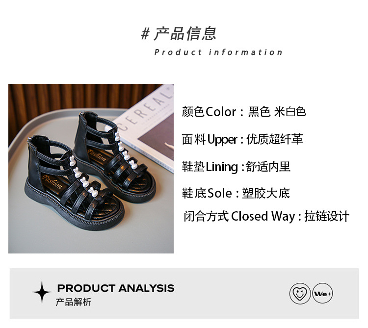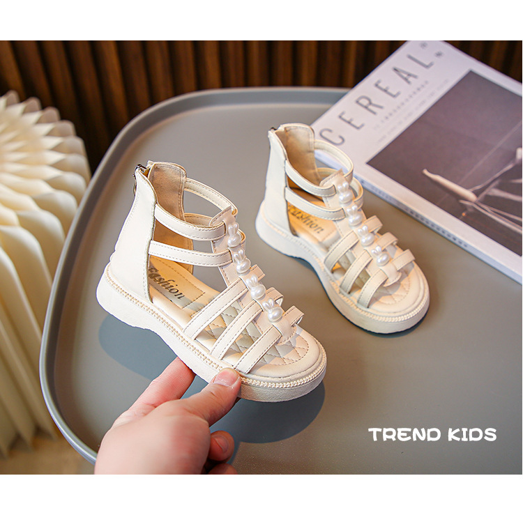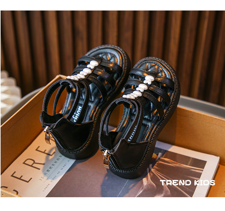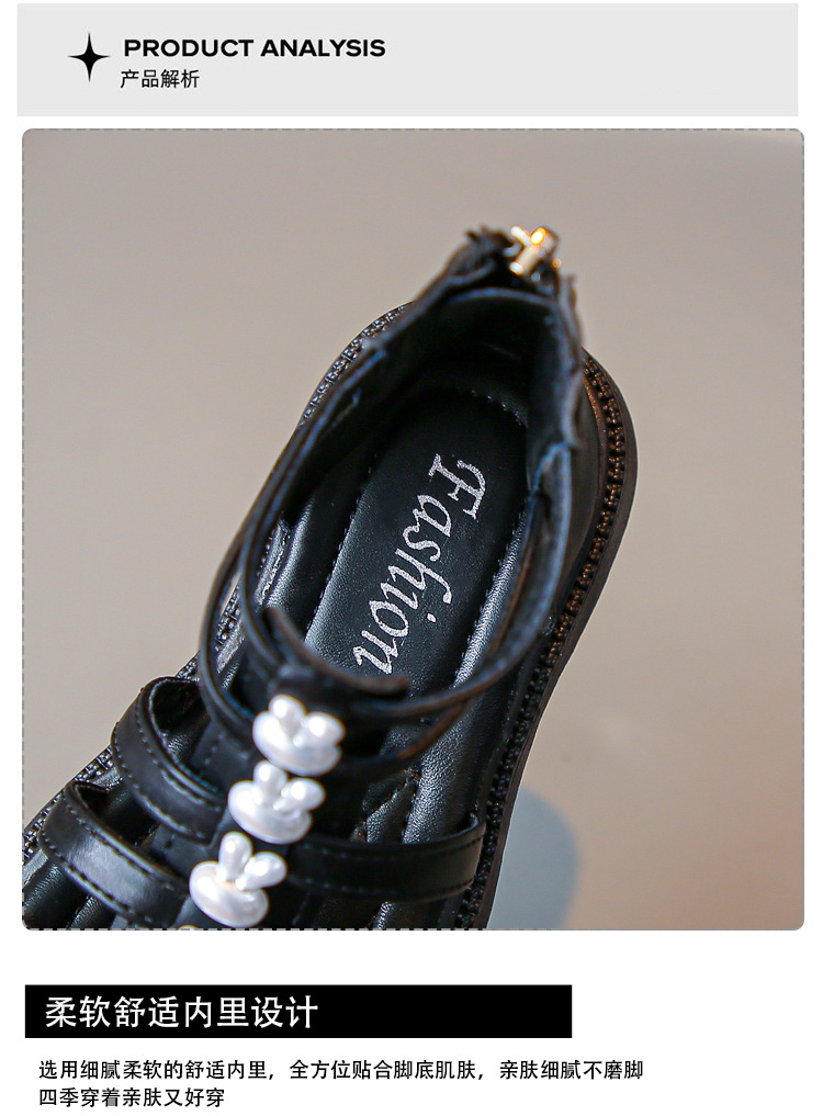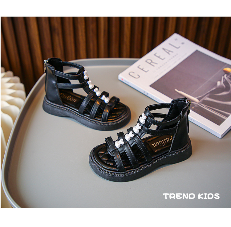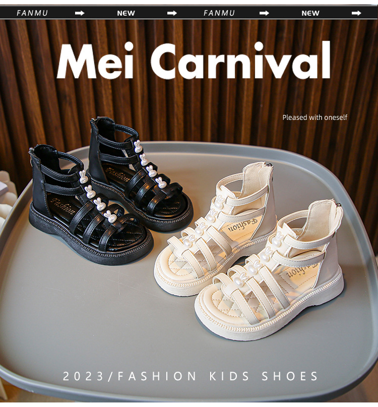 女童凉鞋夏款2023新款夏季中大童软底罗马凉鞋女孩洋气珍珠公主鞋
