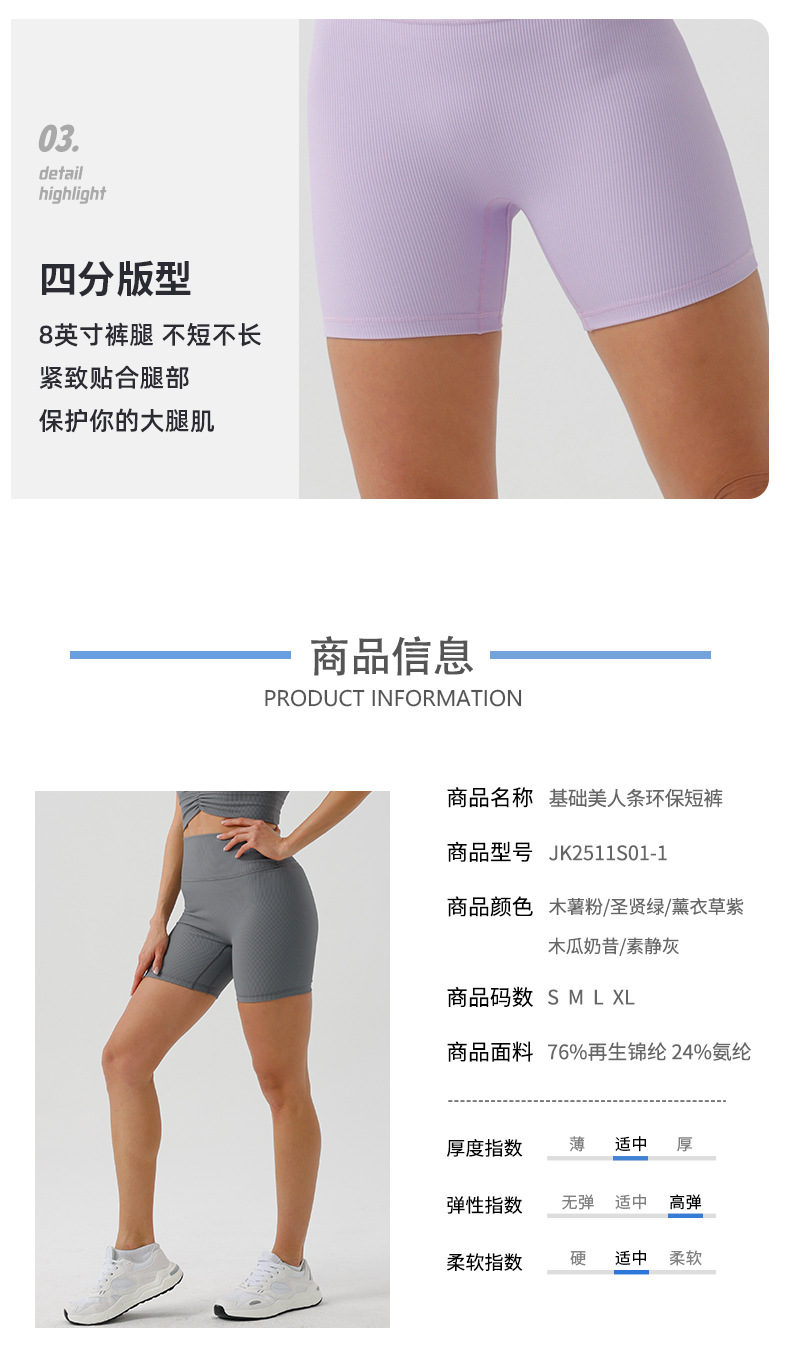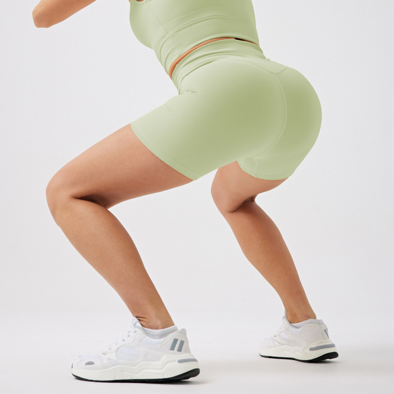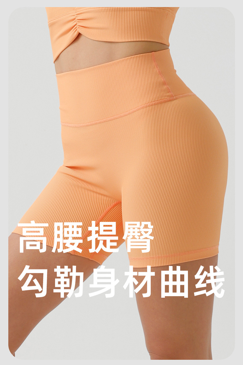 欧美环保美人条瑜伽短裤高腰提臀无缝健身短裤经典四分运动短裤女