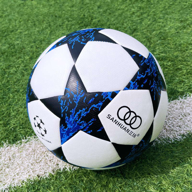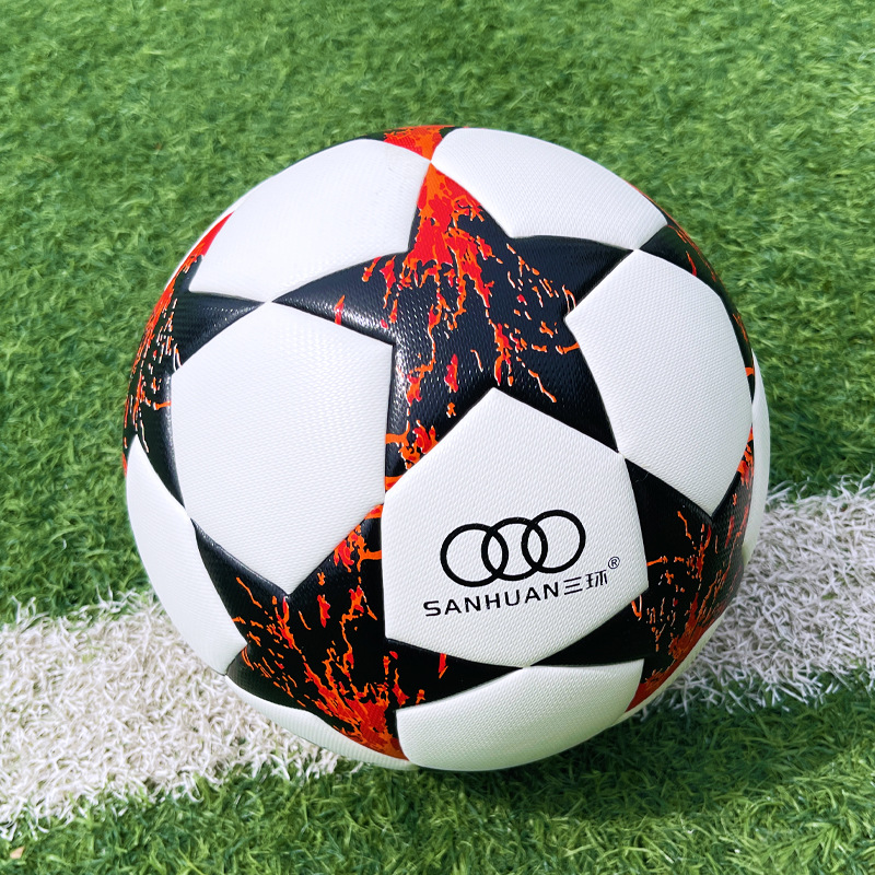 [足球定制]三环足球4号校园学生机缝5号PVC无缝贴皮PU足球批发