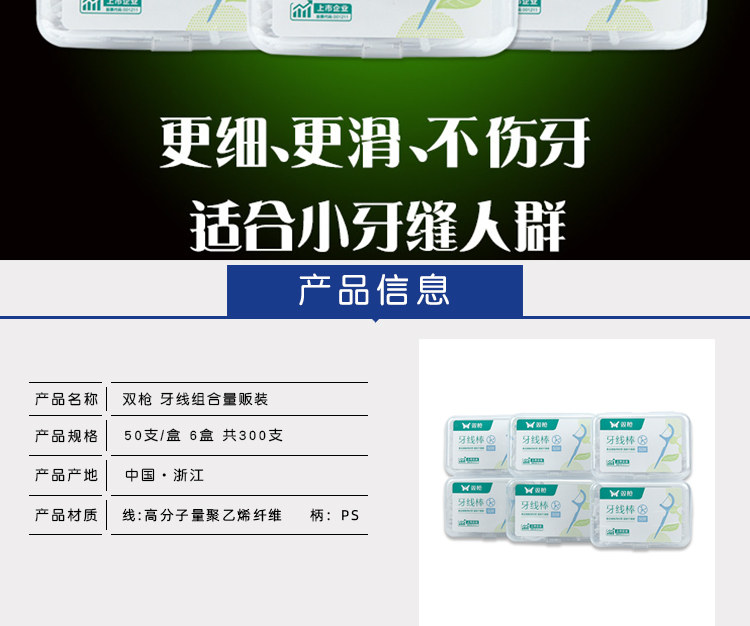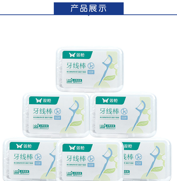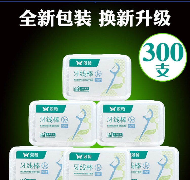 双枪牙线家庭装牙线棒剔牙线细扁线安全牙签超细滑护理牙线6盒装