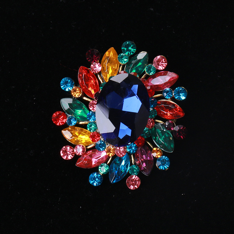 欧美个性创意时尚复古绚丽七彩小水晶玻璃胸针大衣服装配饰胸花