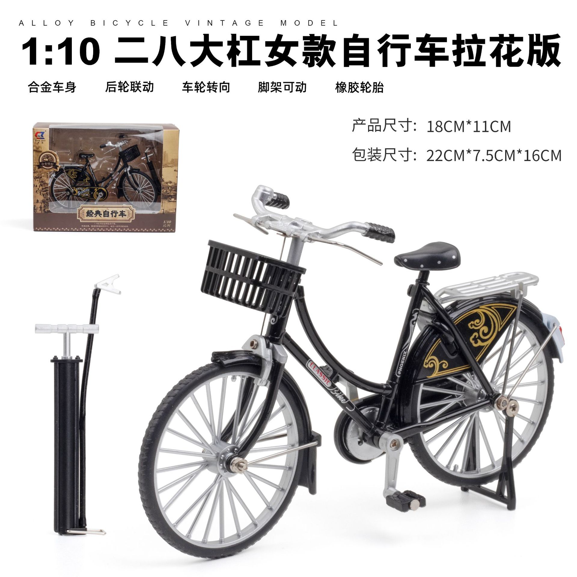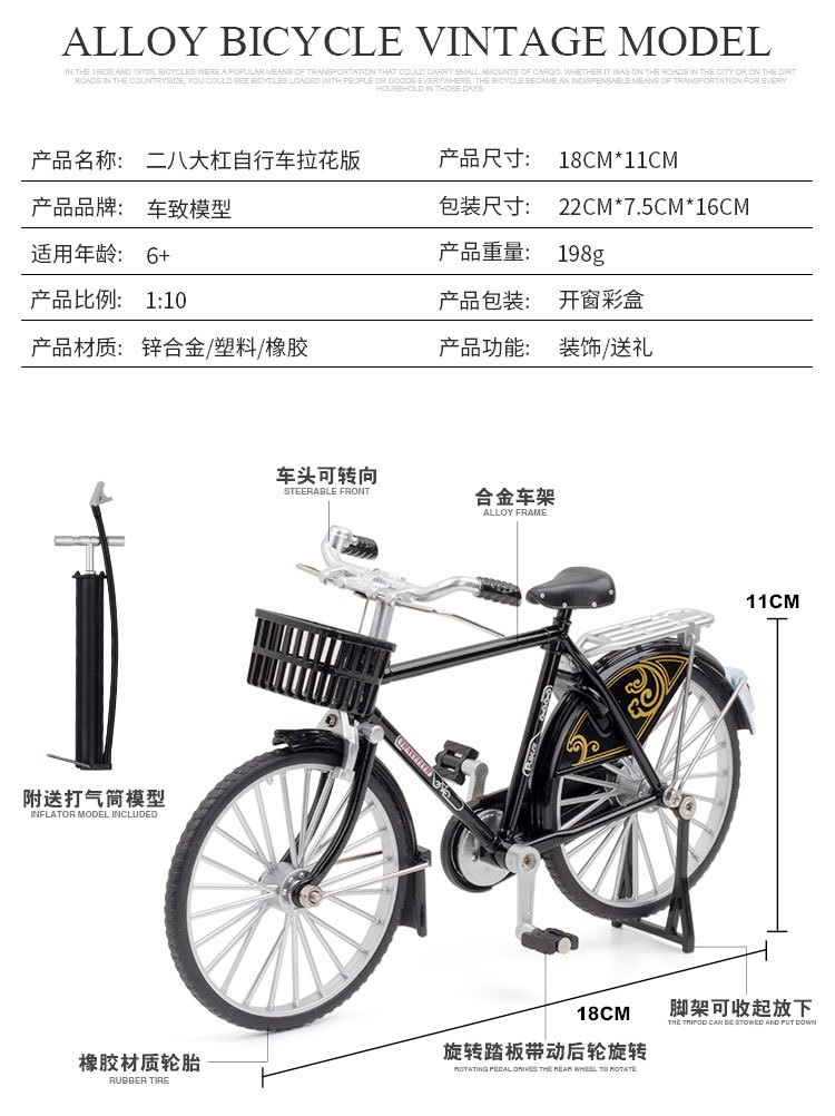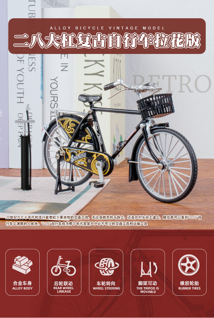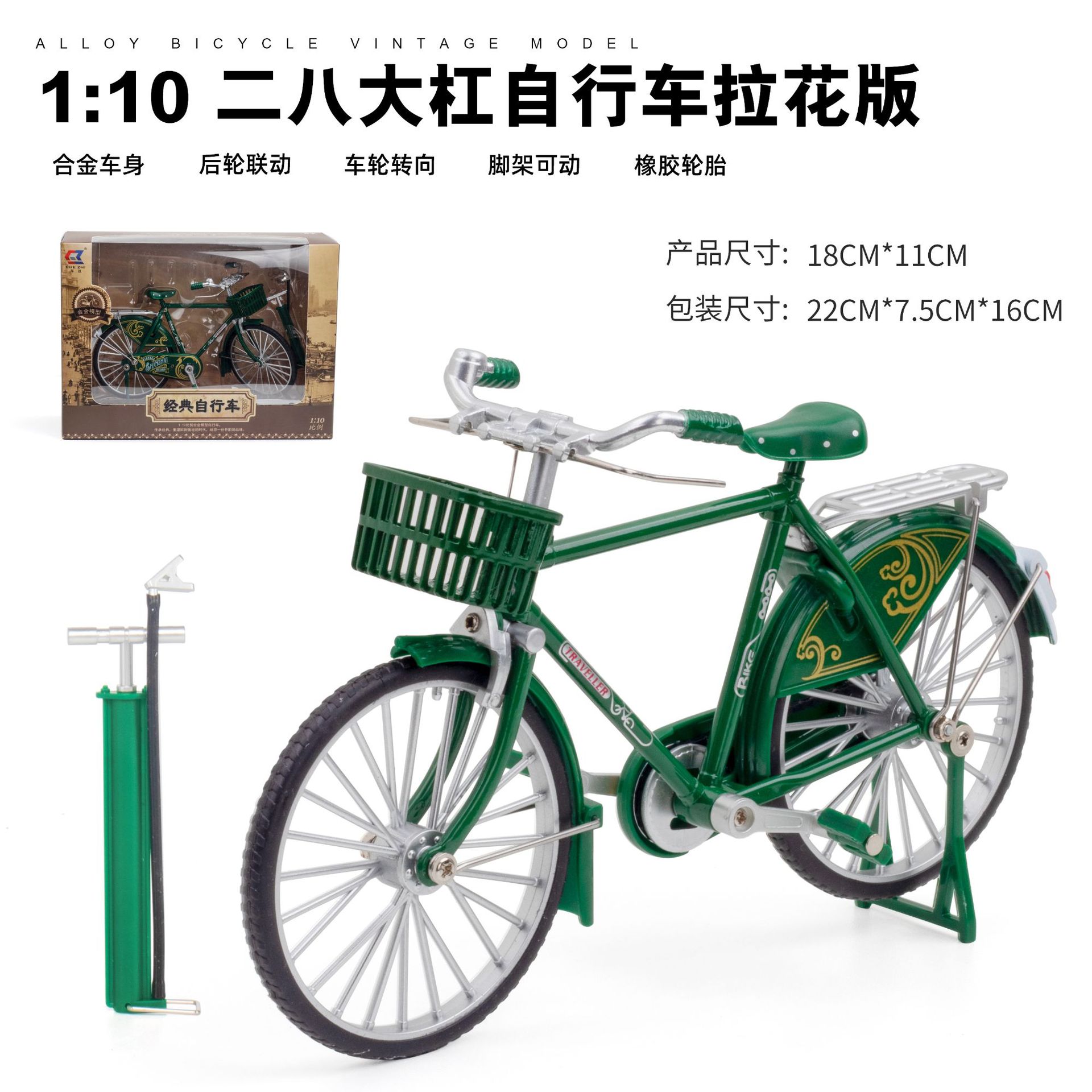 1:10二八大杠模型复古拉花合金自行车模型玩具摆件收藏礼物