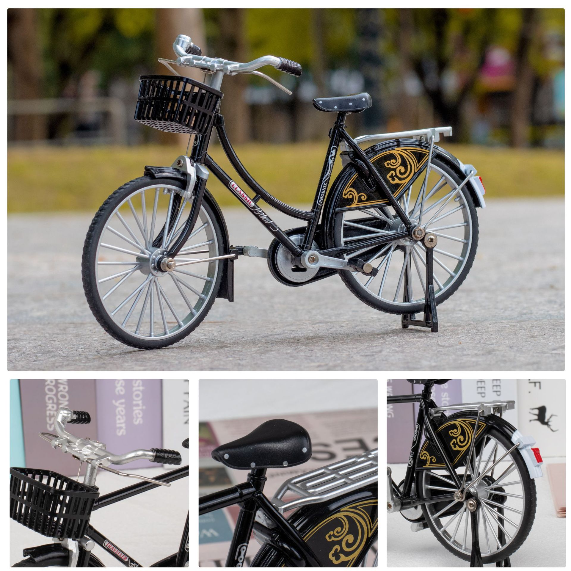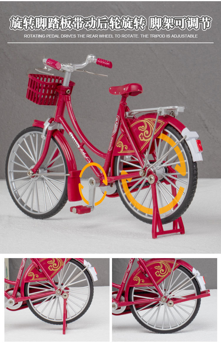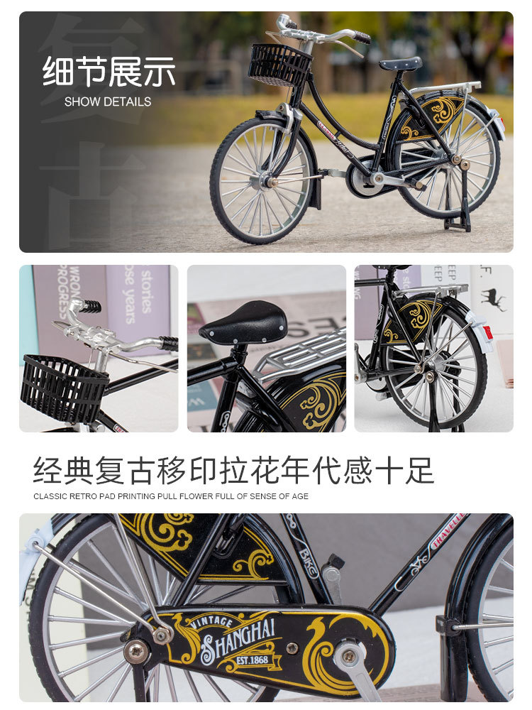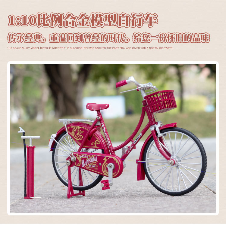 1:10二八大杠模型复古拉花合金自行车模型玩具摆件收藏礼物