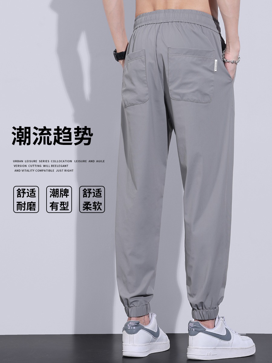 tiktok夏季新款休闲裤男士现货批发薄款冰丝束脚宽松舒适运动裤
