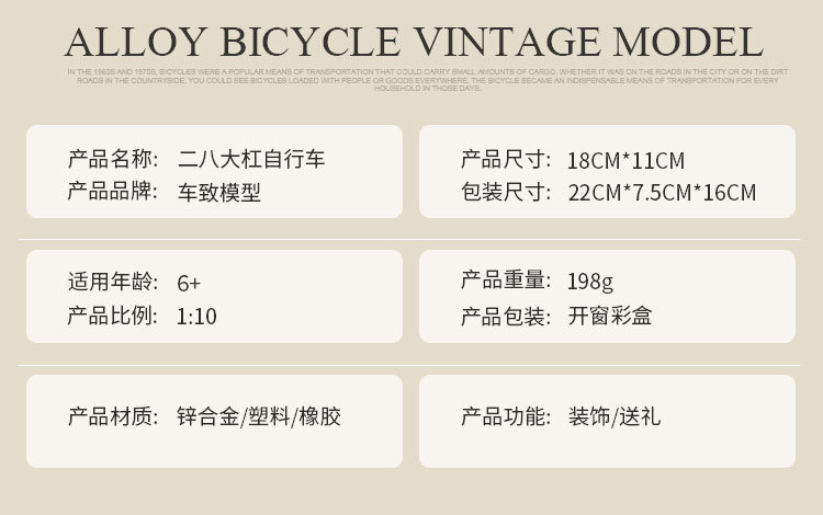 三八大杠自行车模型儿童玩具微缩怀旧单车8070后杠自行车模型