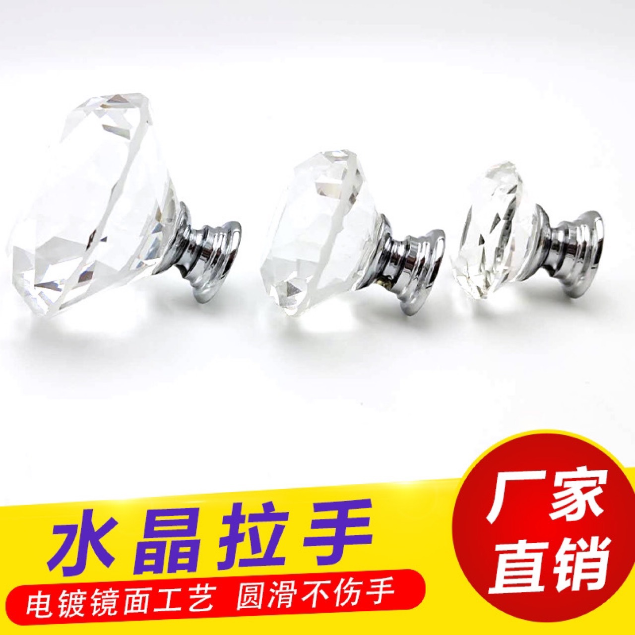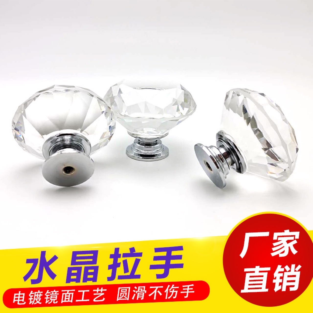 水晶钻石拉手欧式衣柜橱柜门把手鞋柜酒柜子抽屉圆形单孔