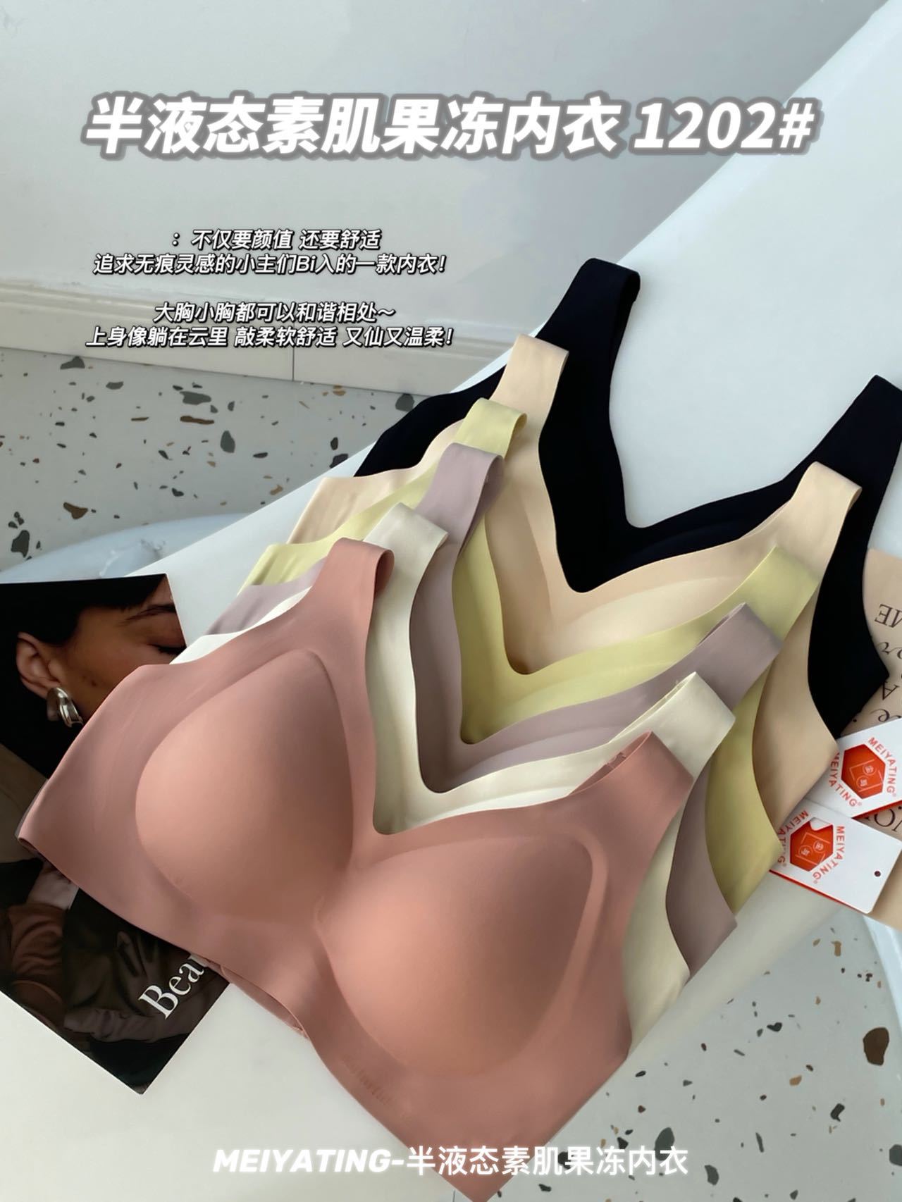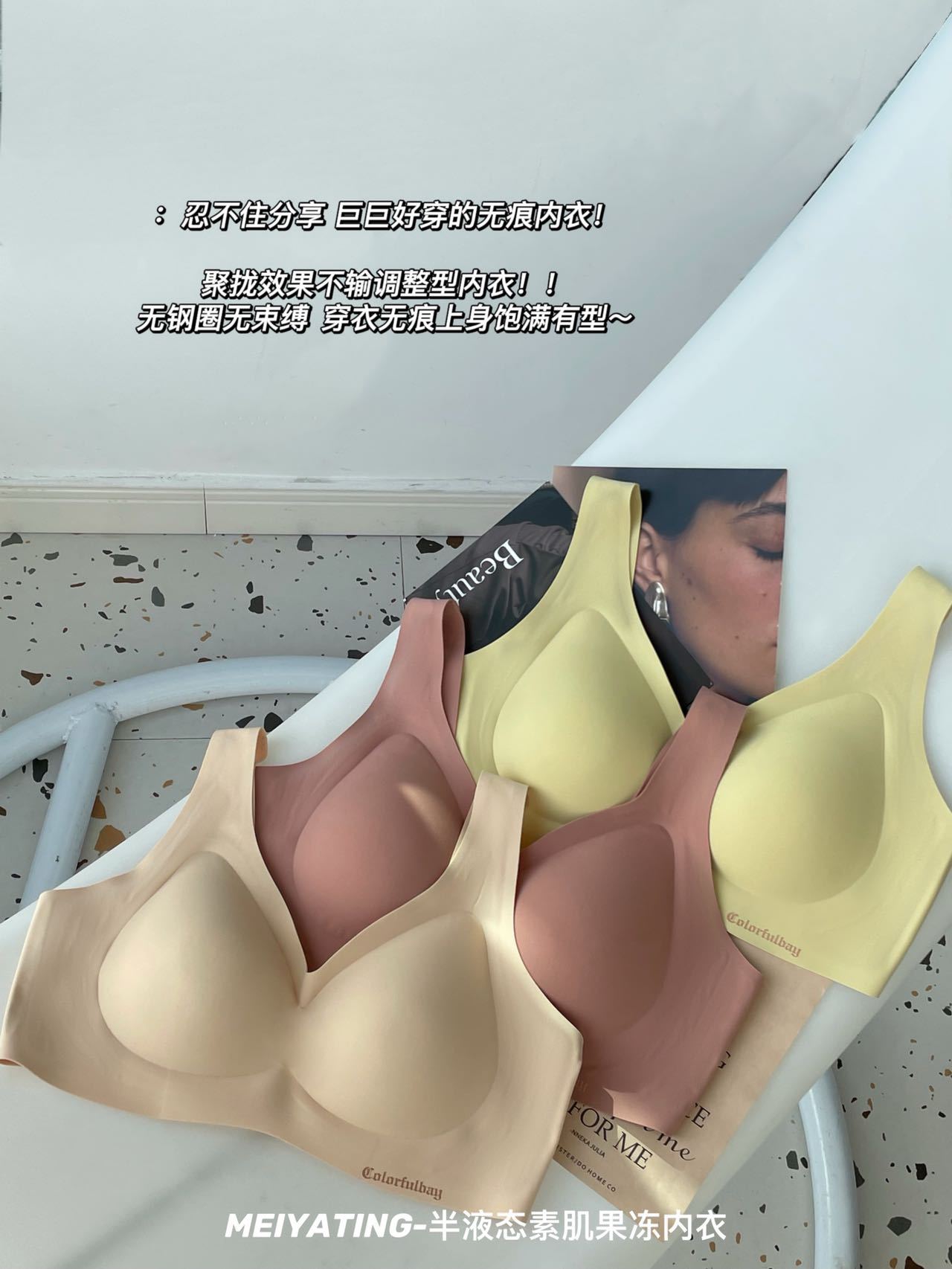 半液态素肌果冻裸感乳胶内衣女无痕无钢圈无感聚拢提拉软支撑文胸