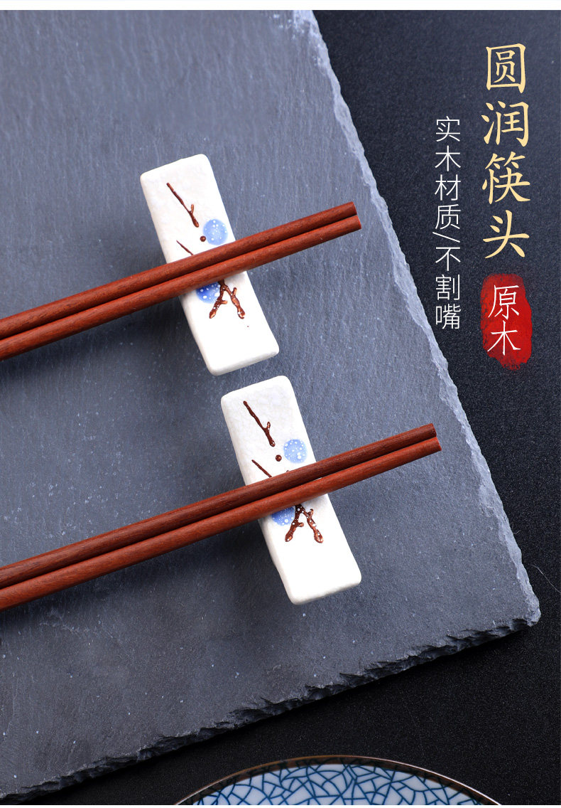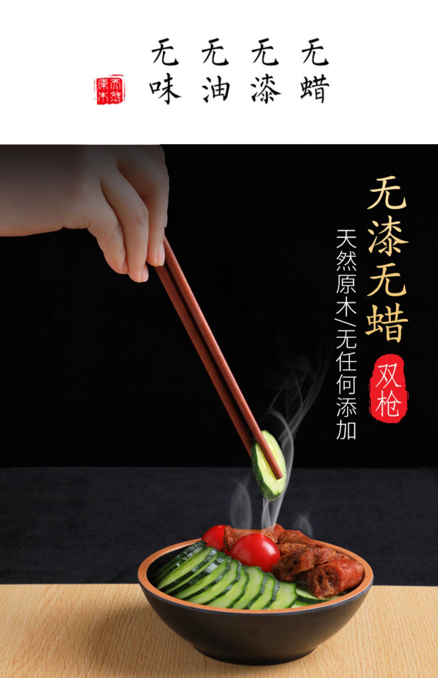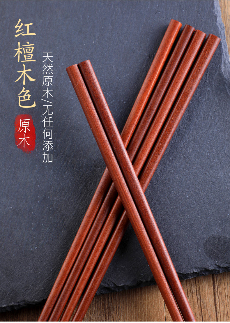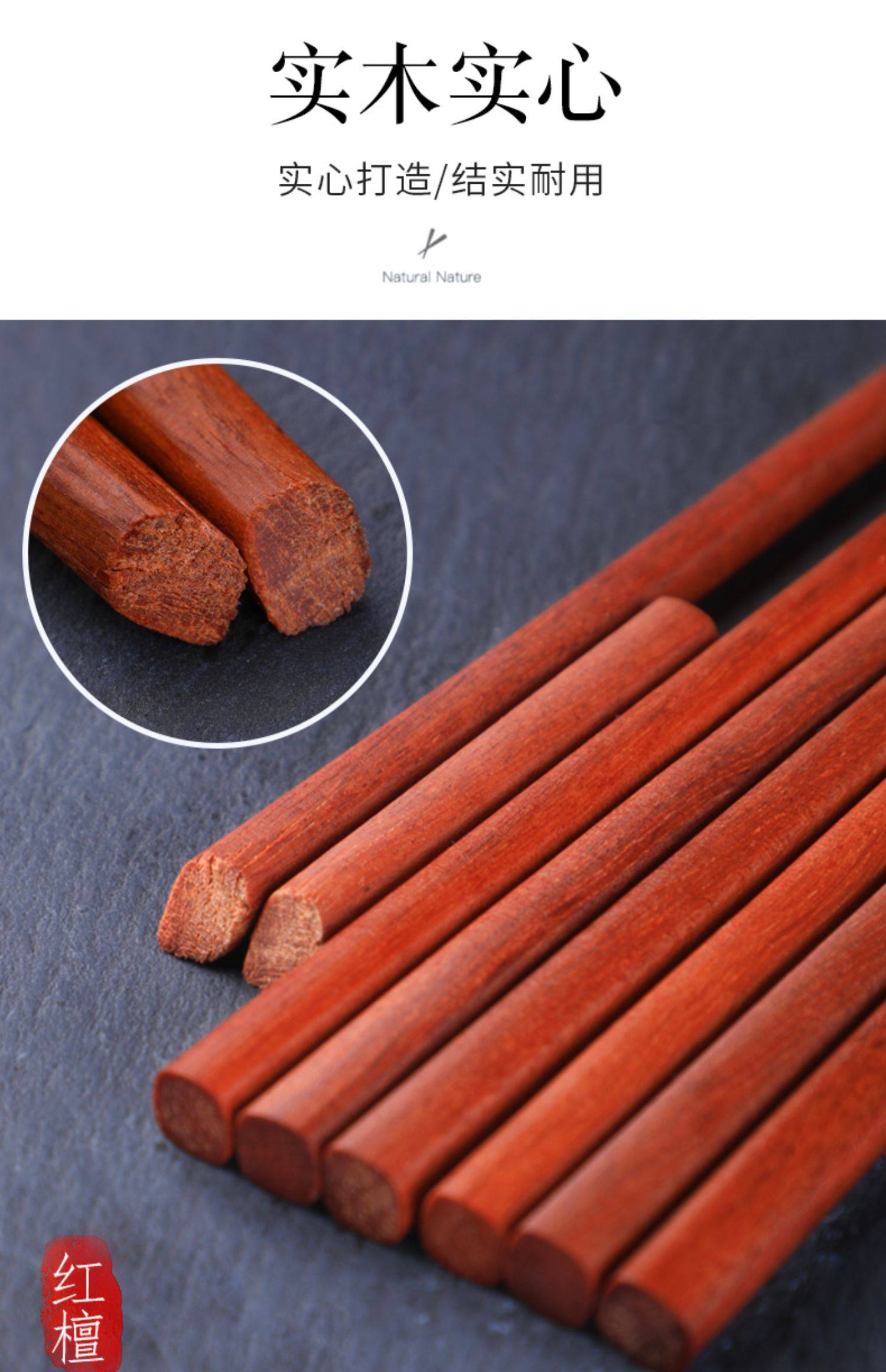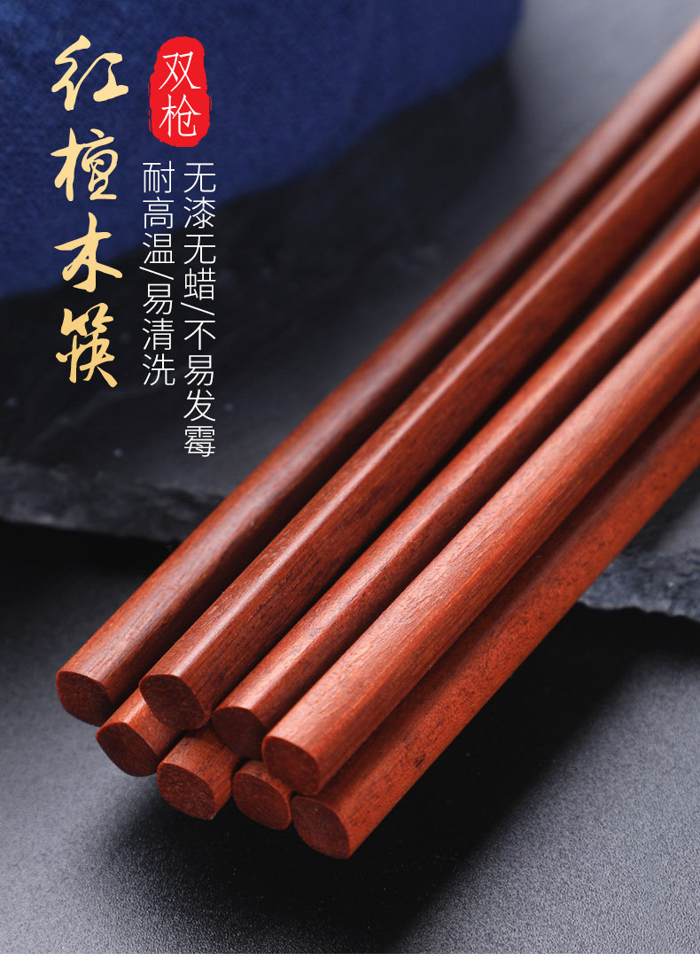 双枪红檀木筷子家用实木防滑耐高温家庭餐具无漆无蜡原木筷