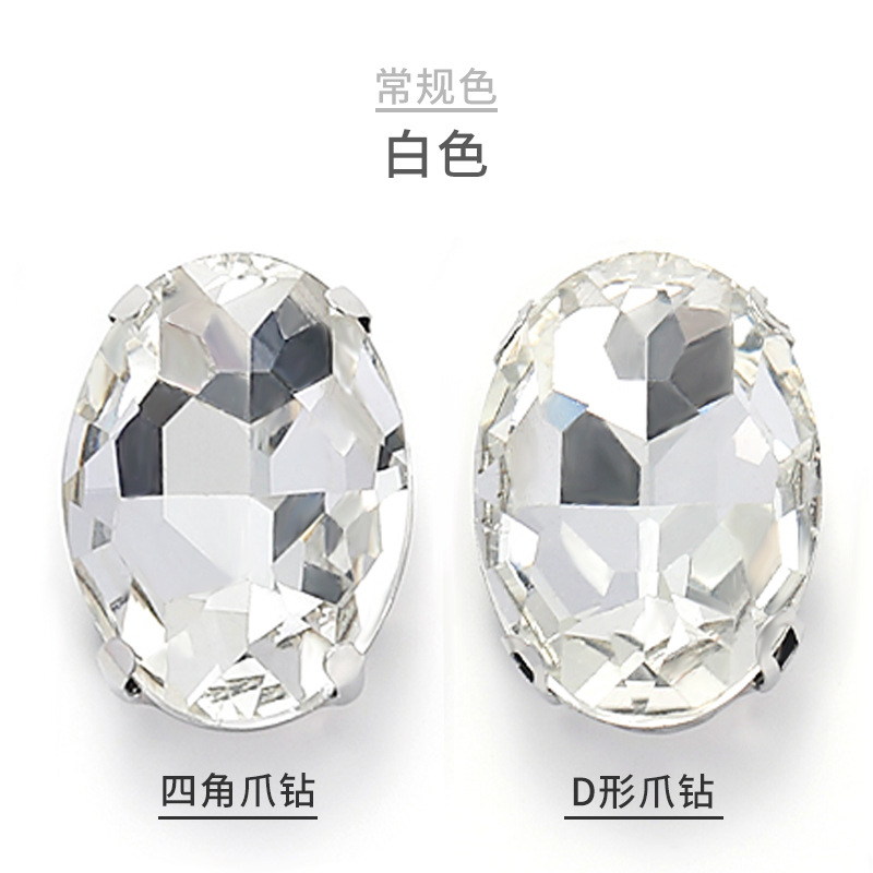 手缝椭圆玻璃爪钻 白K 手缝钻蛋形 DIY婚纱礼服水钻鞋饰配件