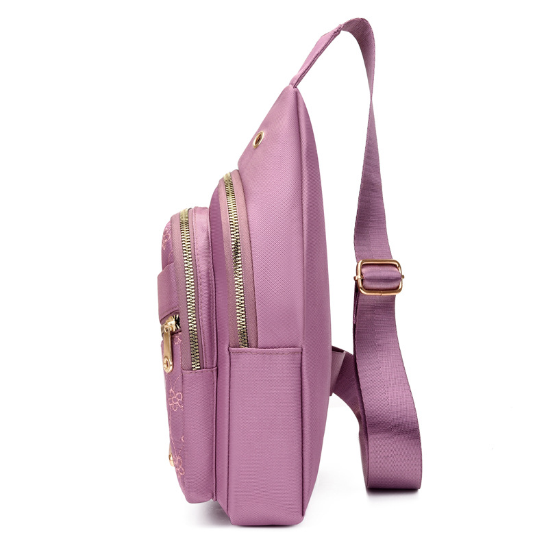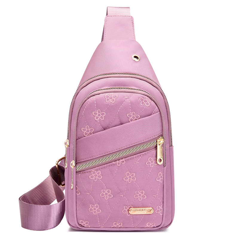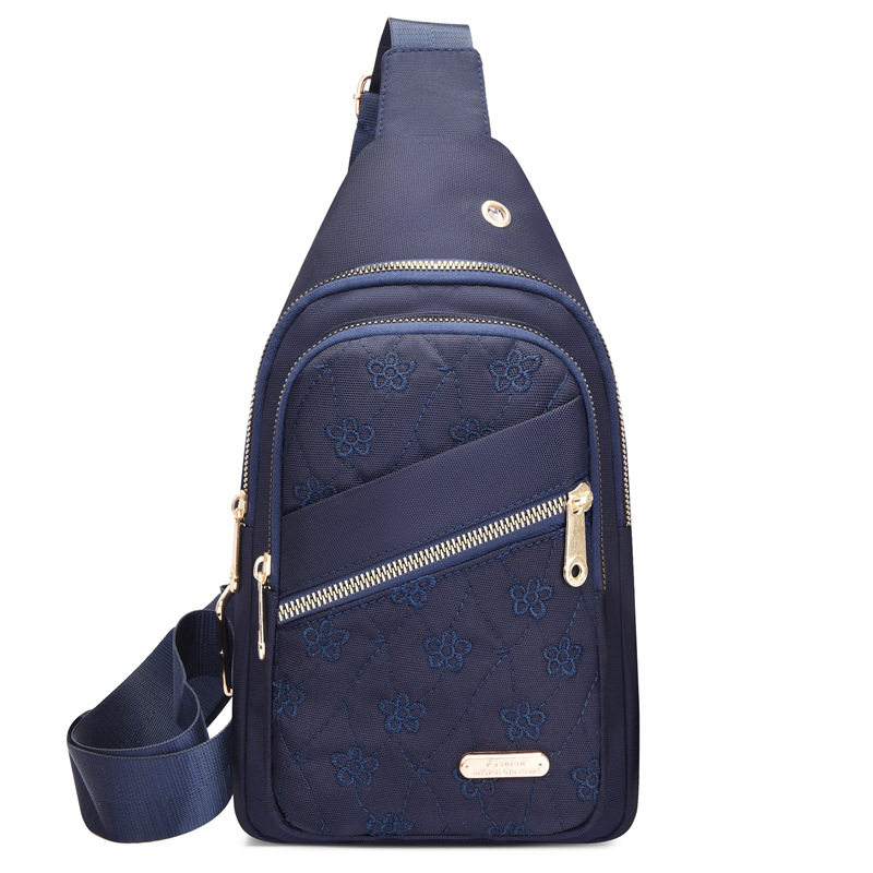 新款女式刺绣尼龙斜挎包时尚百搭绣线格胸包简约日常户外旅行女包
