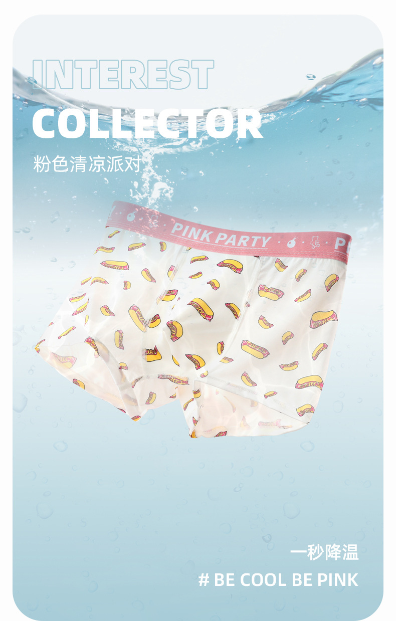 男士内裤冰丝粉色超薄透气平角夏季可爱猛男个性青年四角批发