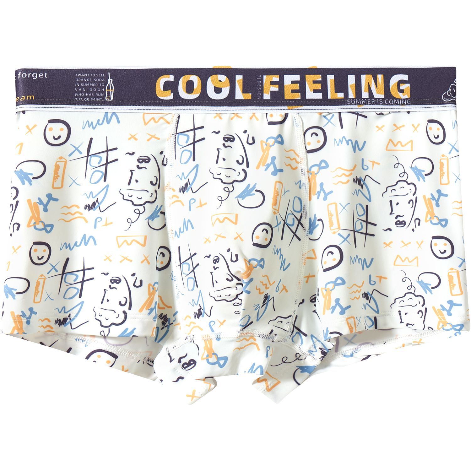 潮流印花冰丝男士内裤批发四角裤头创意青少年透气网孔平角裤