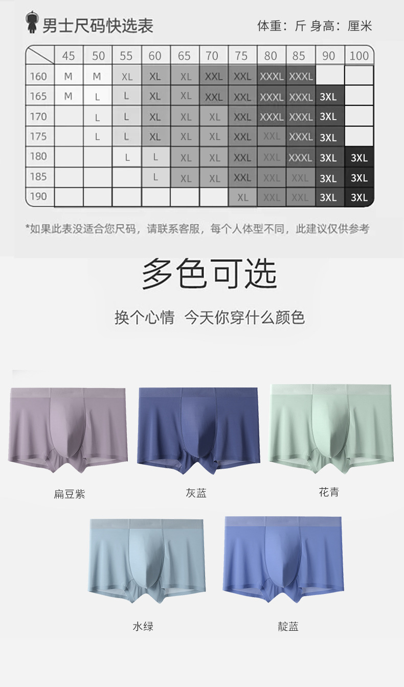 夏季冰丝男士内裤薄款速干纯色透气清凉无感无痕男生四角裤基础款